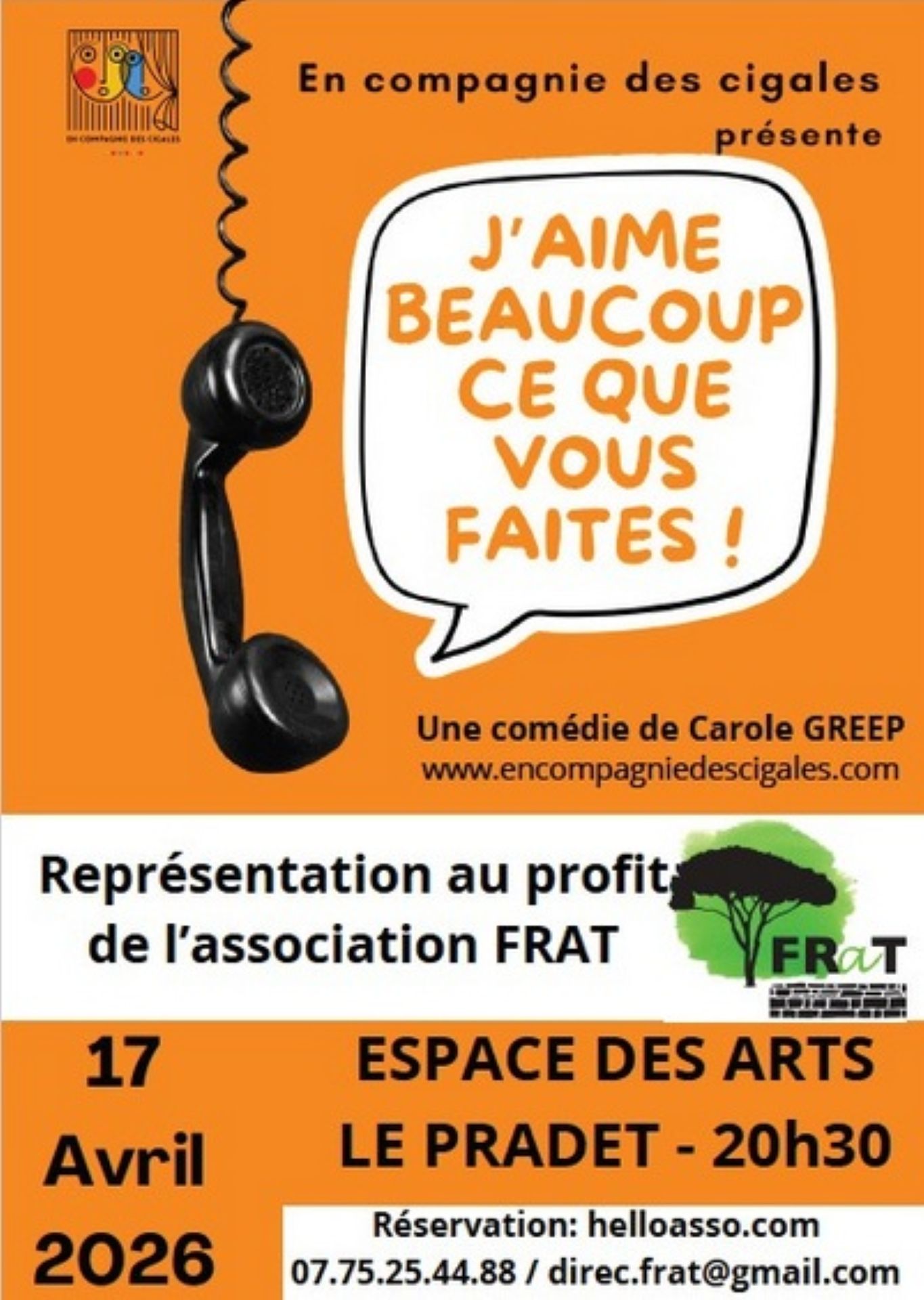 "J’aime beaucoup ce que vous faites", de Carole Greep, jouée par la Compagnie des Cigales au profit de l'association FRAT. Avec Claudine Cartier, Valérie Lussiez, Didier Parienti, Jean-François Sautereau Mise en scène : Olivier Viné