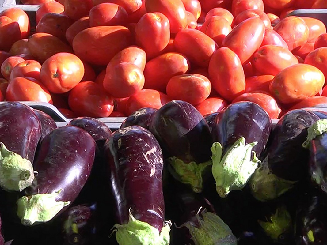 Gemüseanbaubetrieb, Verkauf von Obst und Gemüse auf dem Landgut.