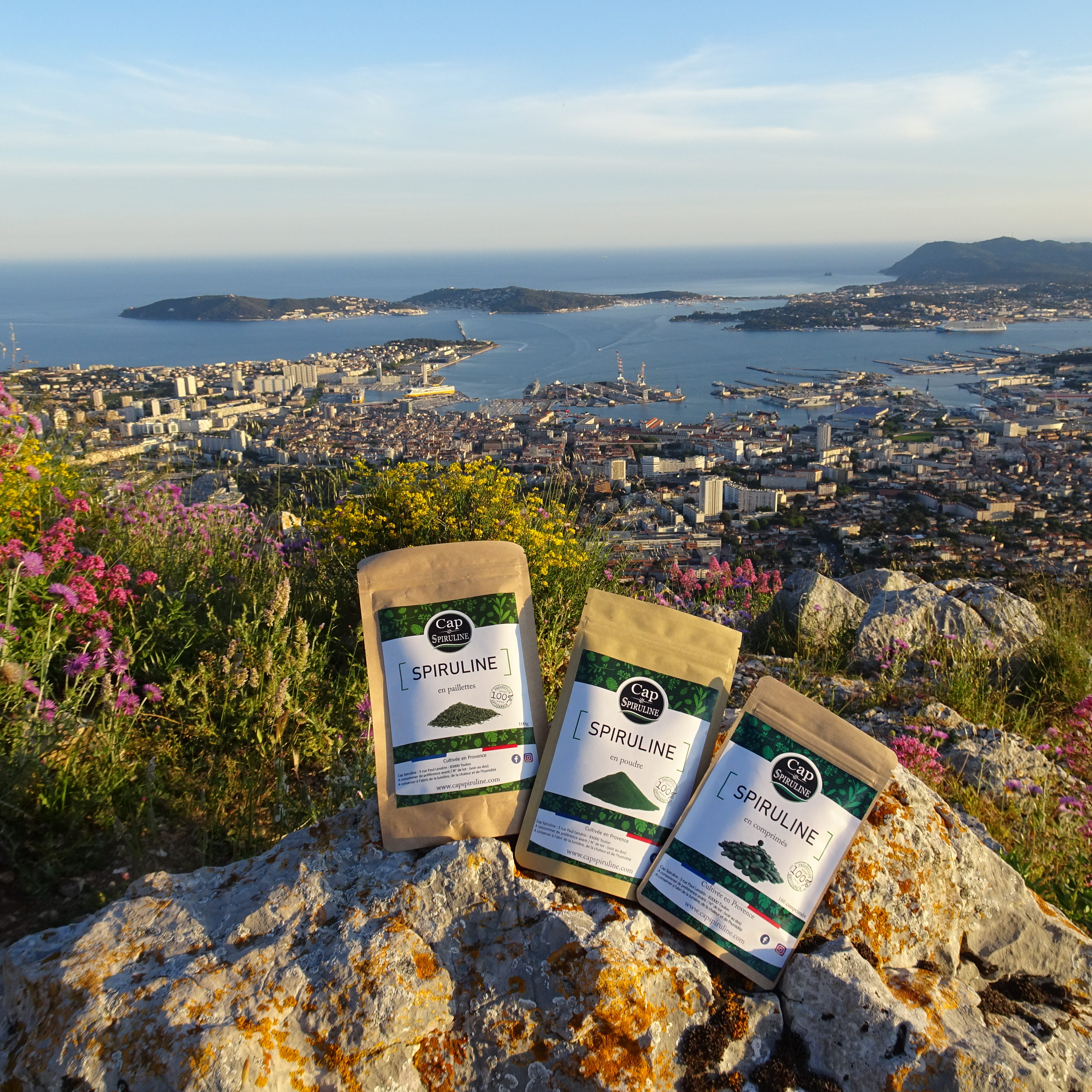 Cap Spiruline bietet seine handwerklich hergestellte Spirulina in Form von Flocken, Pulver oder Tabletten zum Preis von 16 € für eine 1-Monats-Kur an. Andere Formate sind online erhältlich.