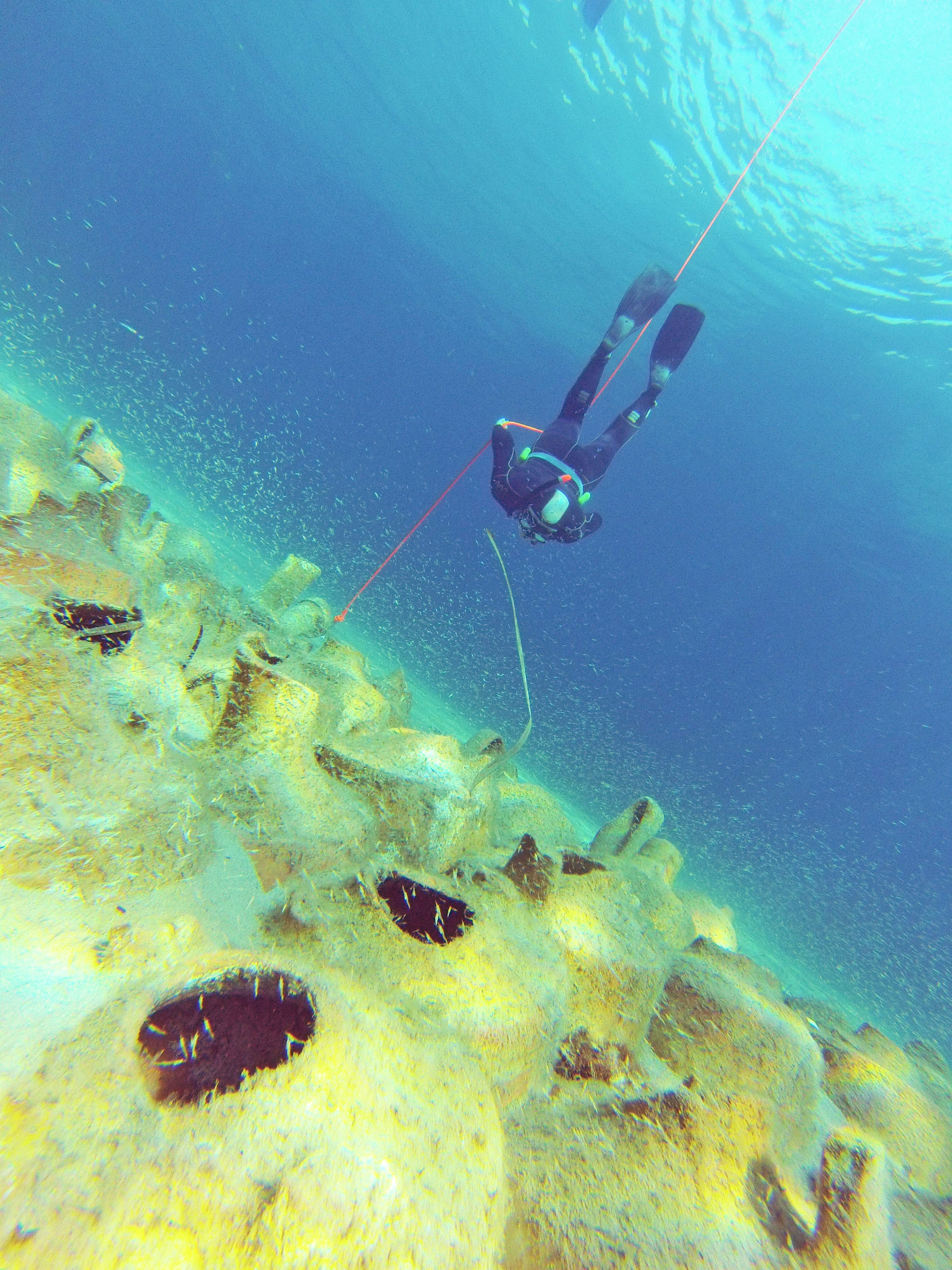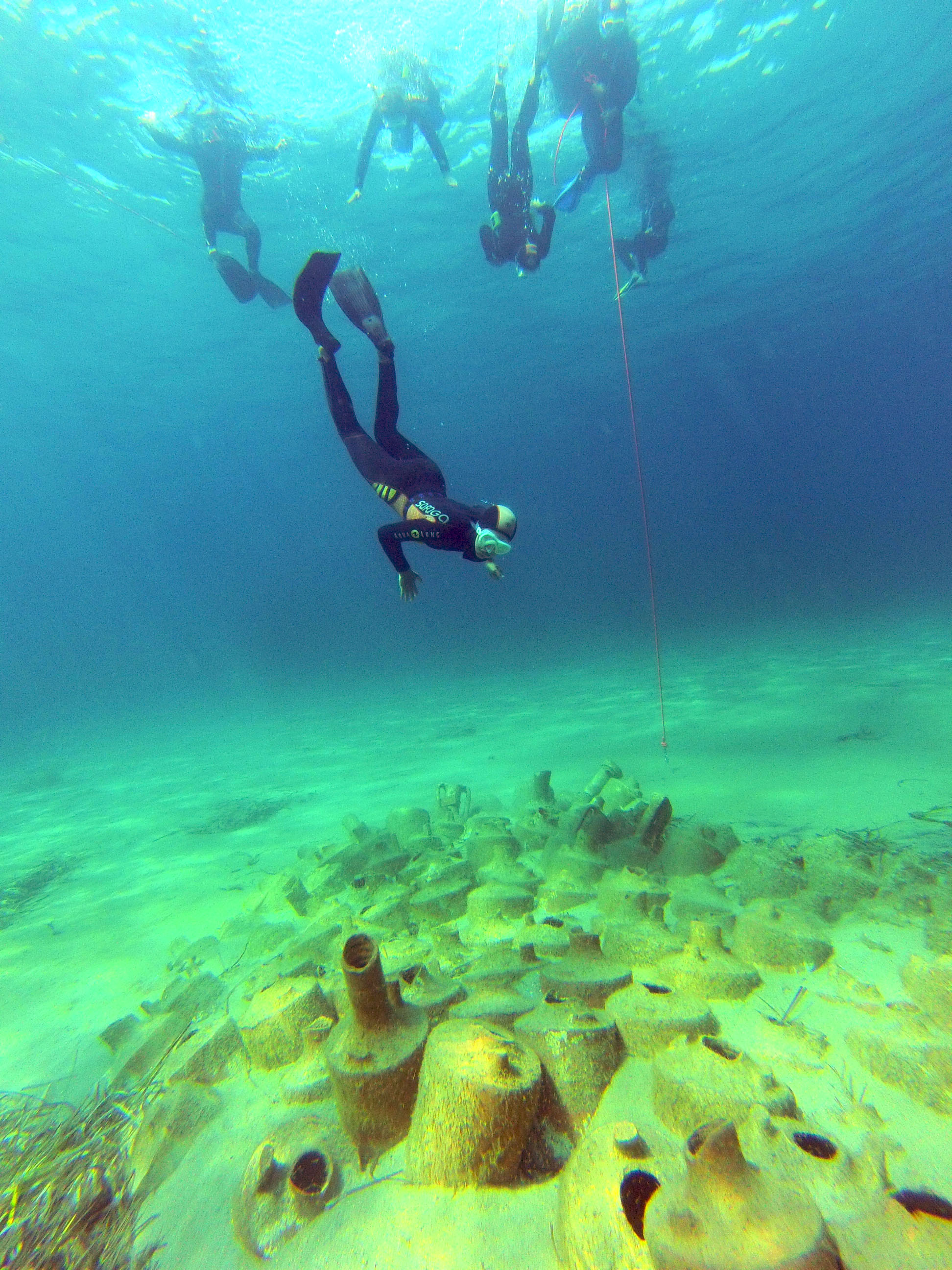 Auf dem archäologischen Unterwasserpfad von Le Bouvet können Sie sich wie ein Archäologe fühlen, wenn er einen vergrabenen Schatz entdeckt.