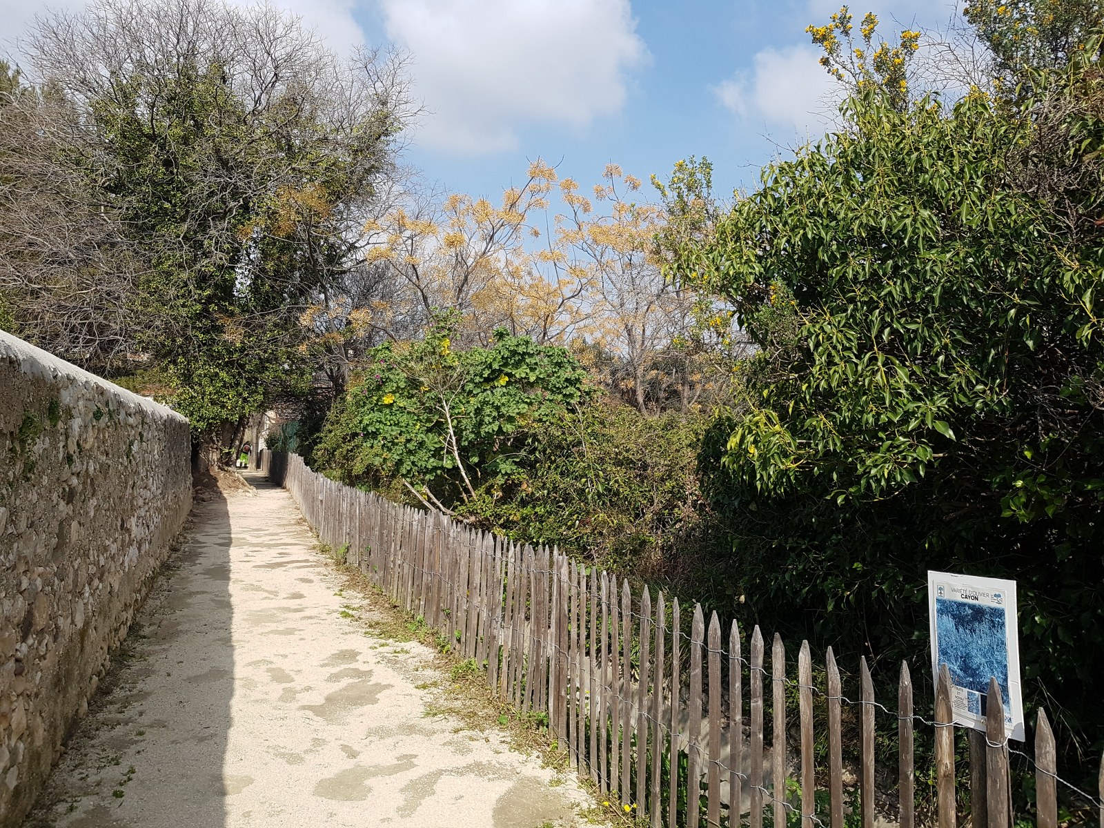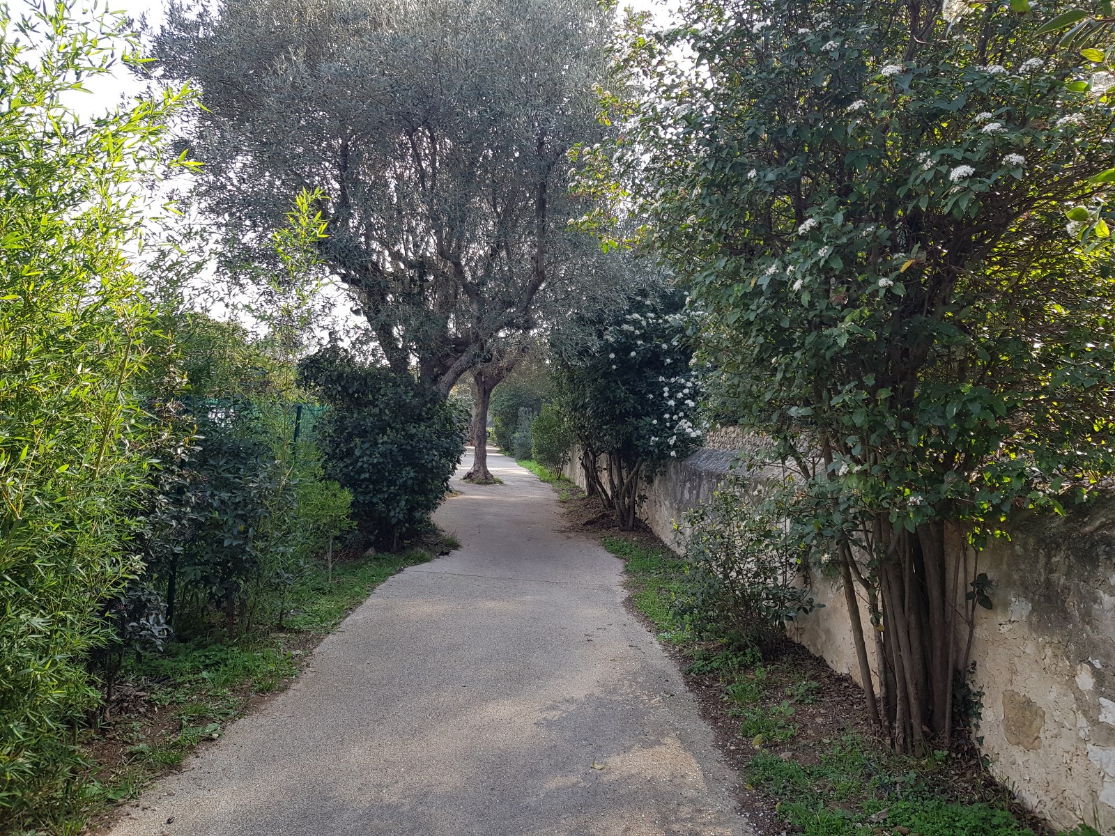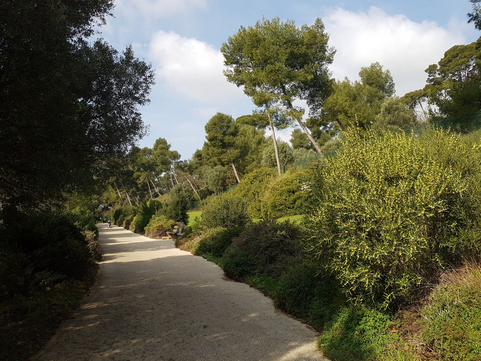 1. Start: Öffentlicher Park La Castellane. Ein grüner Pfad ermöglicht einen Spaziergang durch den Park, der mit dem neuen Durchgang verbindet.