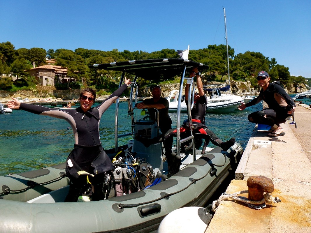 Maximal 10 Personen auf dem Boot und Öffnungszeiten, die es Ihnen ermöglichen, als Erste an den Tauchplätzen zu sein und diese somit ganz für sich allein zu haben. Blubbern Sie mit uns im Port du Niel.