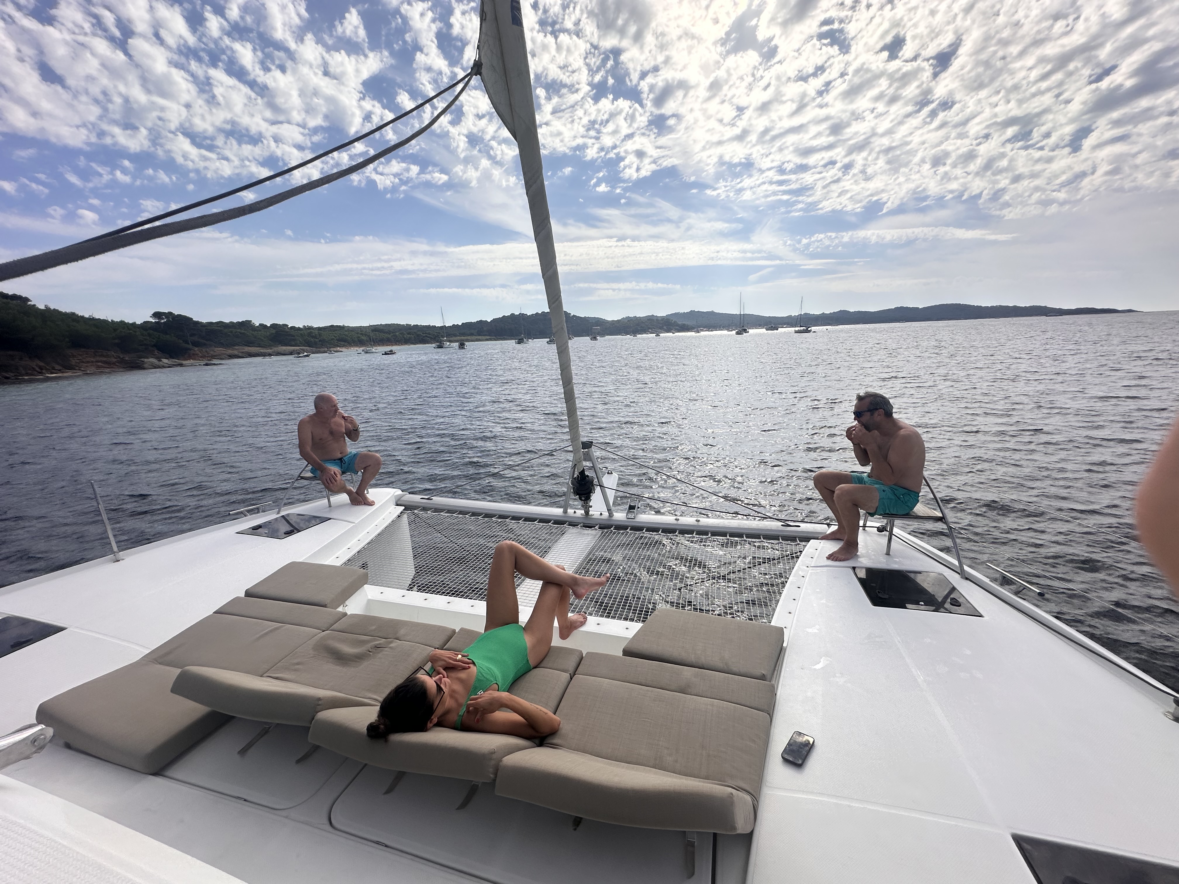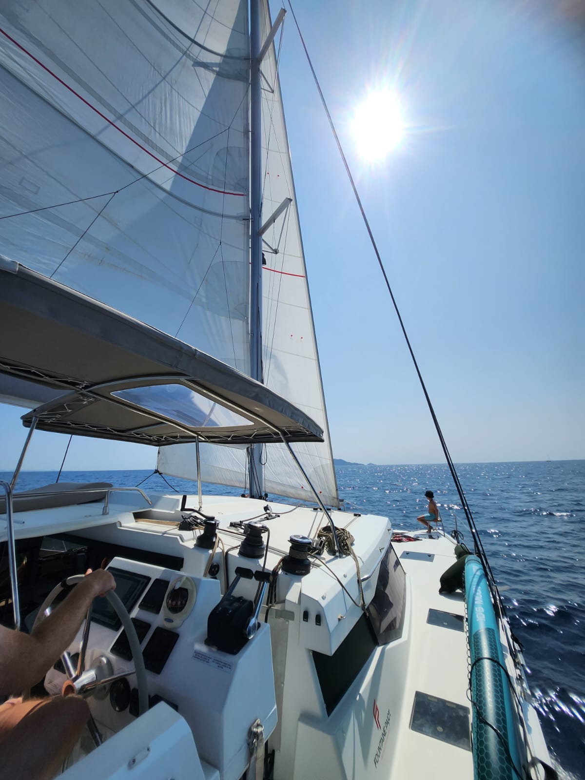 Vermietung eines 13m-Katamarans und eines 16m-Segelboots für Tagesausflüge oder mehrtägige Reisen.