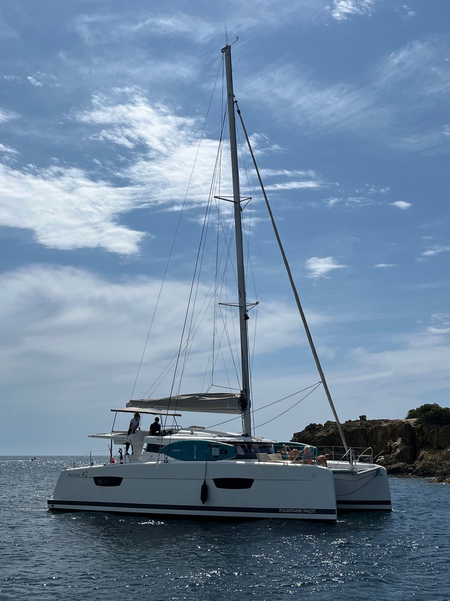 Mieten Sie einen Tag oder mehrere Tage lang einen Katamaran Foutaine-Pajot Astrea 42 (13m) oder ein Segelboot Hanse 540 (16m).