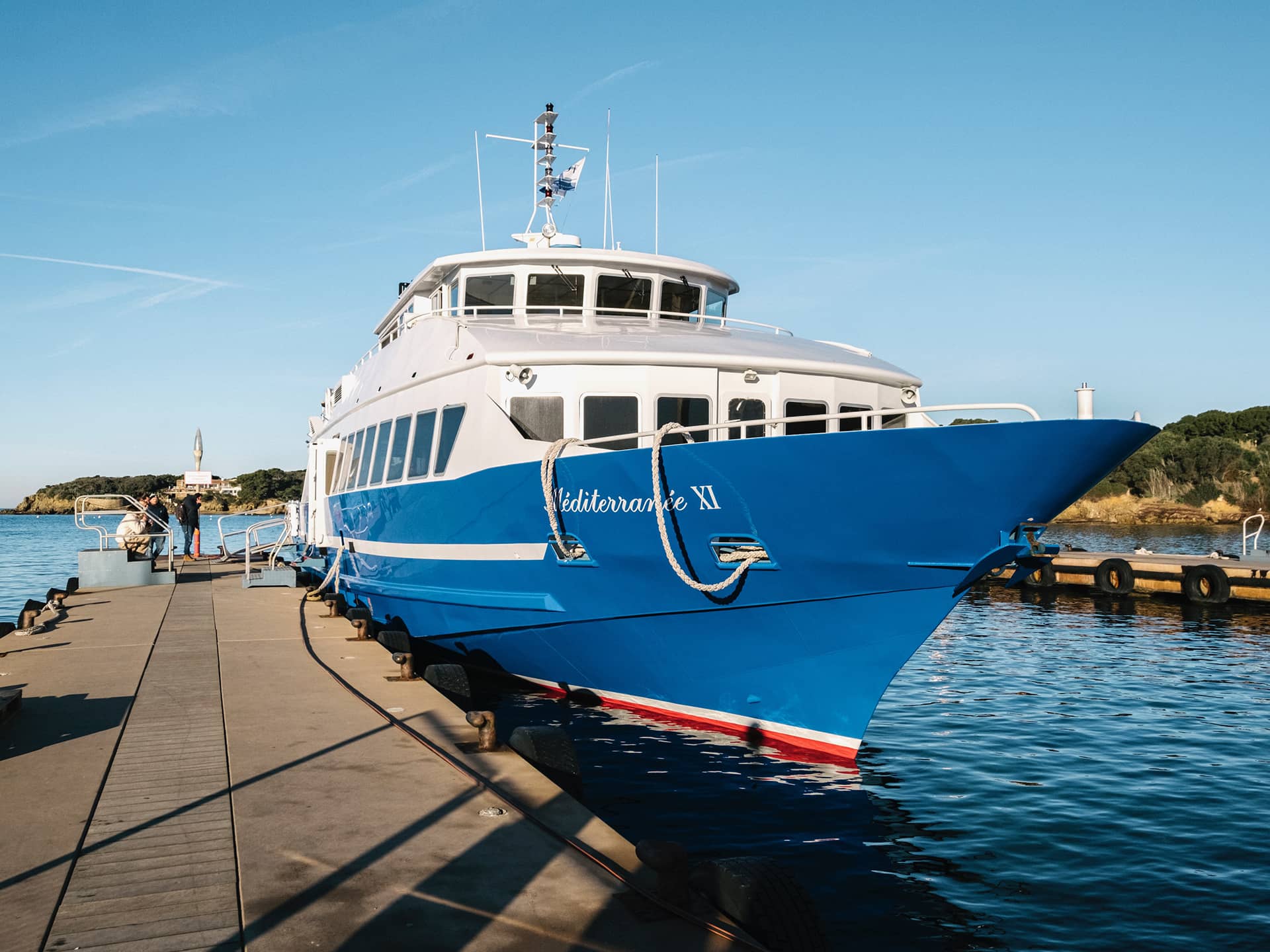 Pendelboote zu den Inseln von Hyères. Anlegestelle für Porquerolles von der Tour Fondue. Anlegestelle für Port-Cros und Le Levant ab dem Hafen von Hyères.