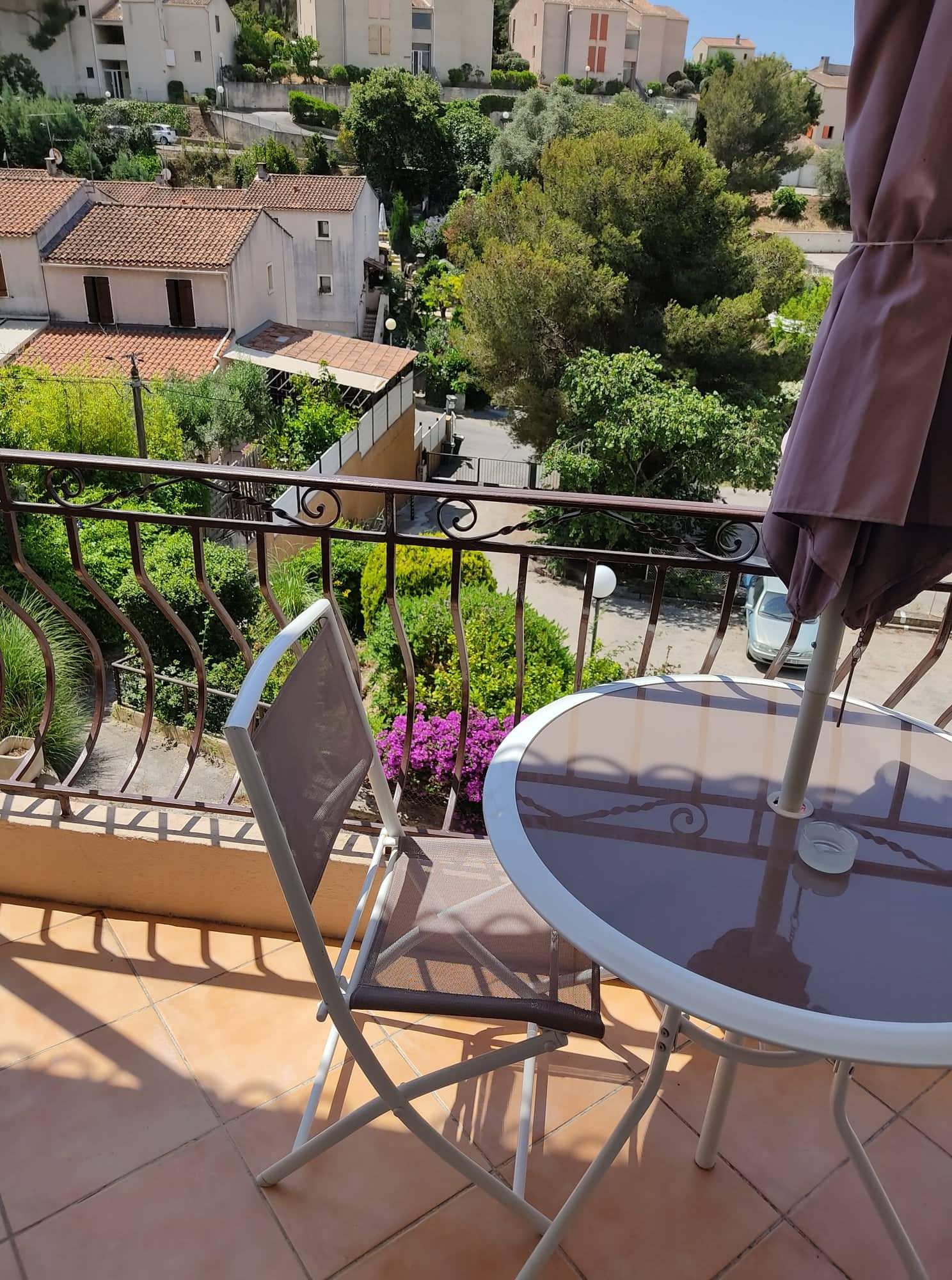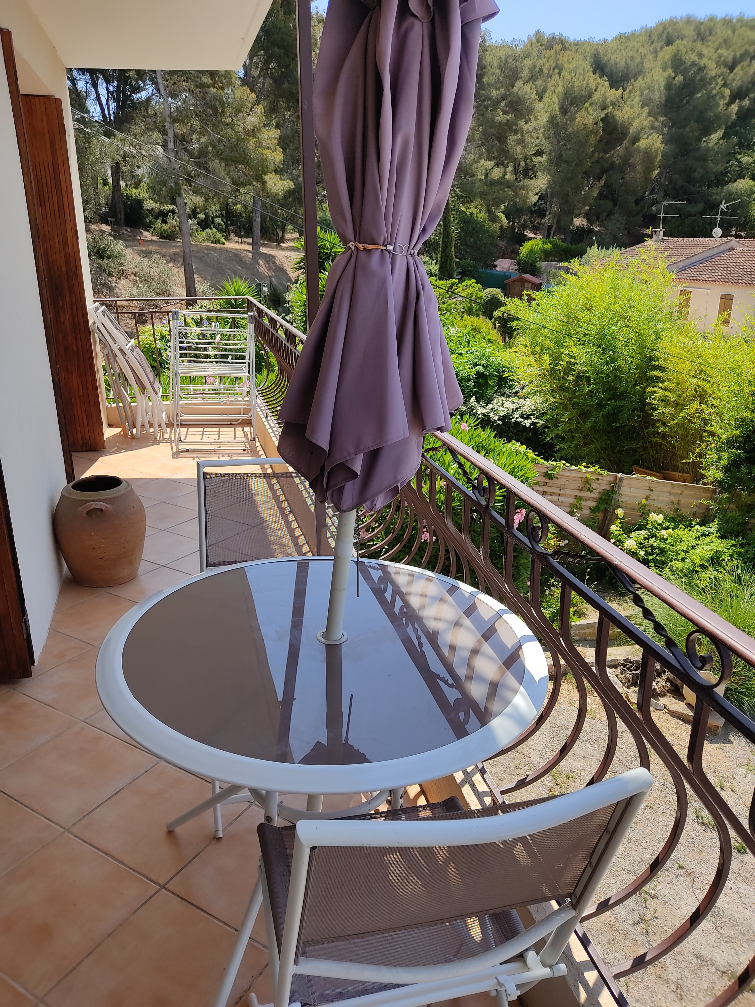 - Vom Balkon aus bietet sich ein atemberaubender Blick auf den Wald und die Festung von Six-Fours. Er ist geräumig und so eingerichtet, dass die Reisenden dort essen können.