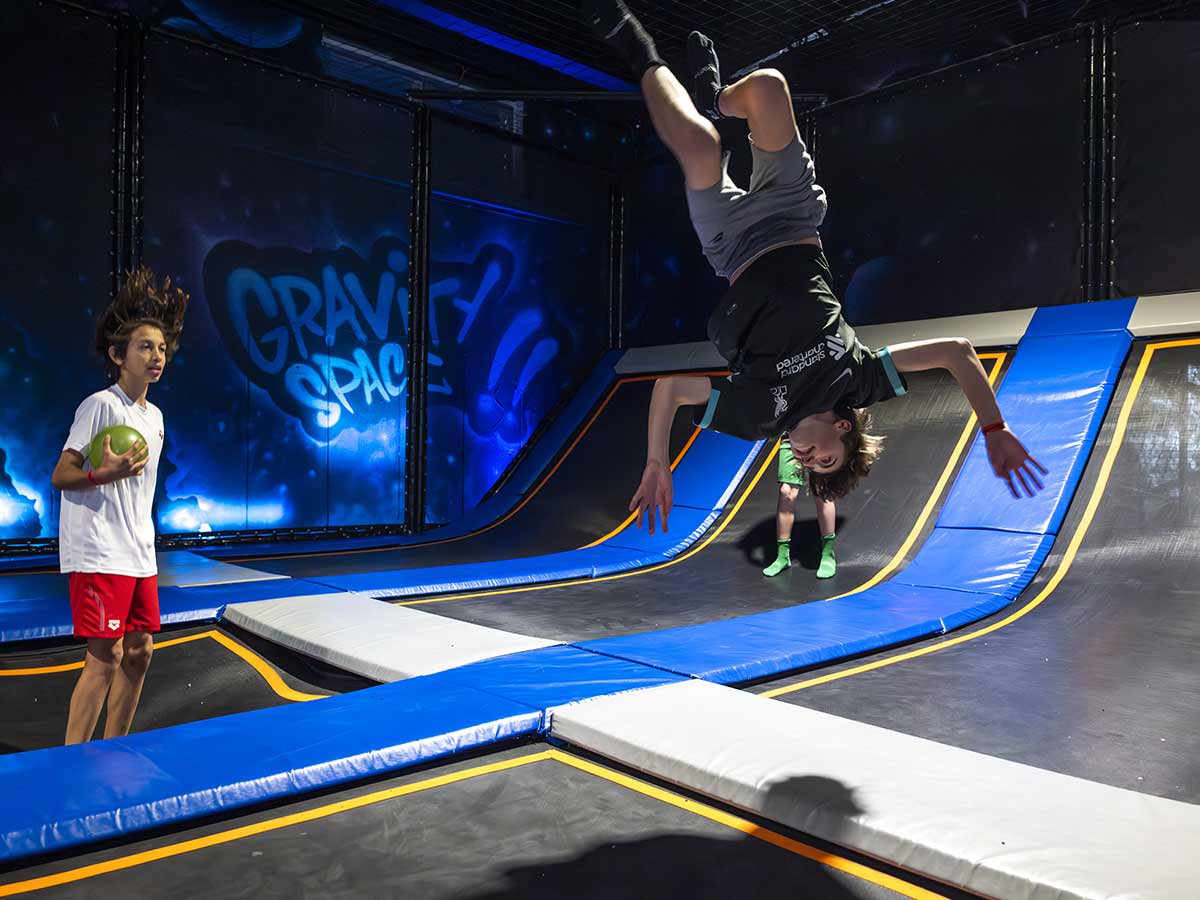 In einem Indoor-Bereich von 500 bis 1000 m² können Sie in unseren fünf Aktivitätsbereichen herumspringen: Schaumstoff, Basketball, Ninja Warrior Parcours und vieles mehr.