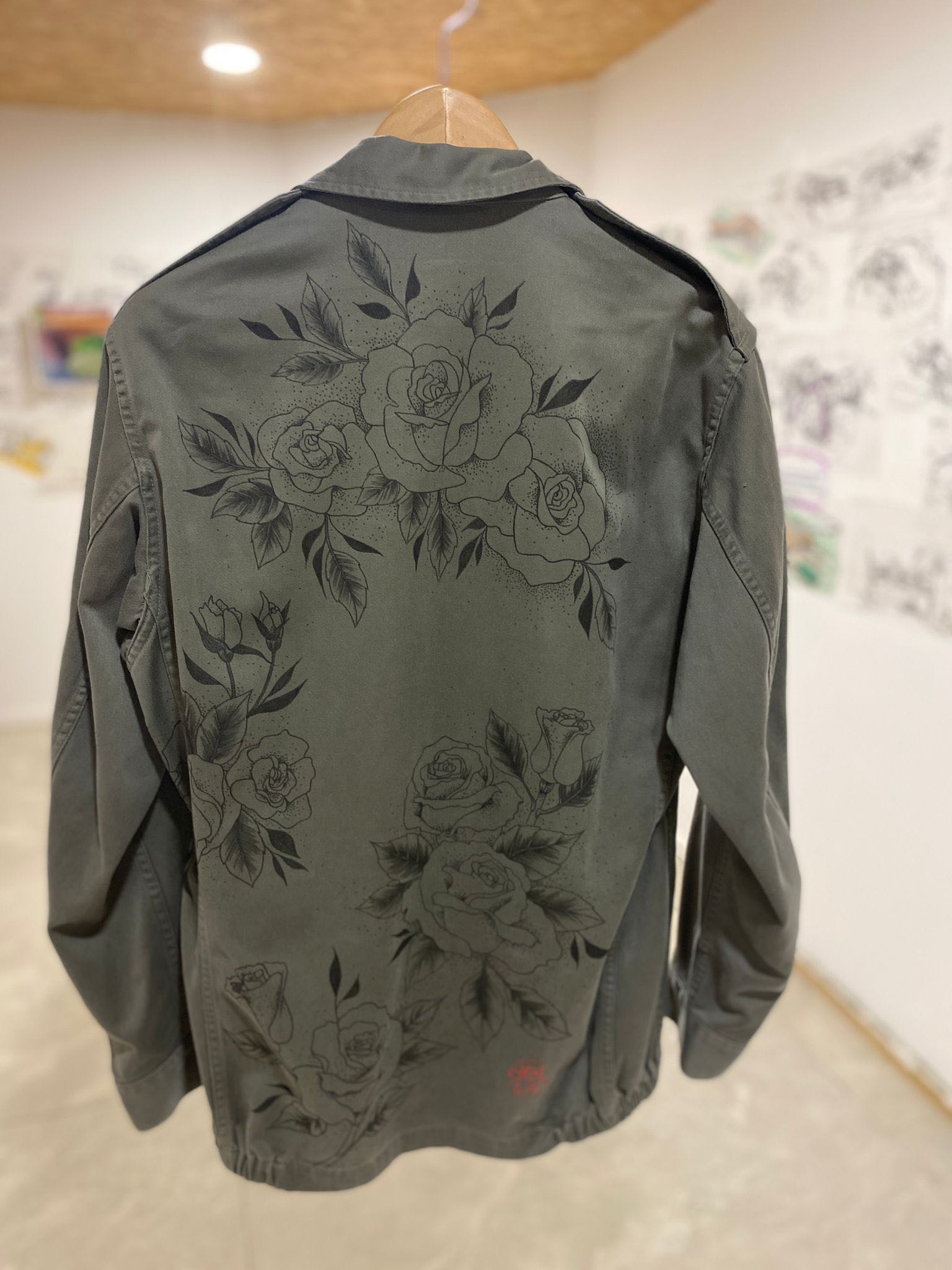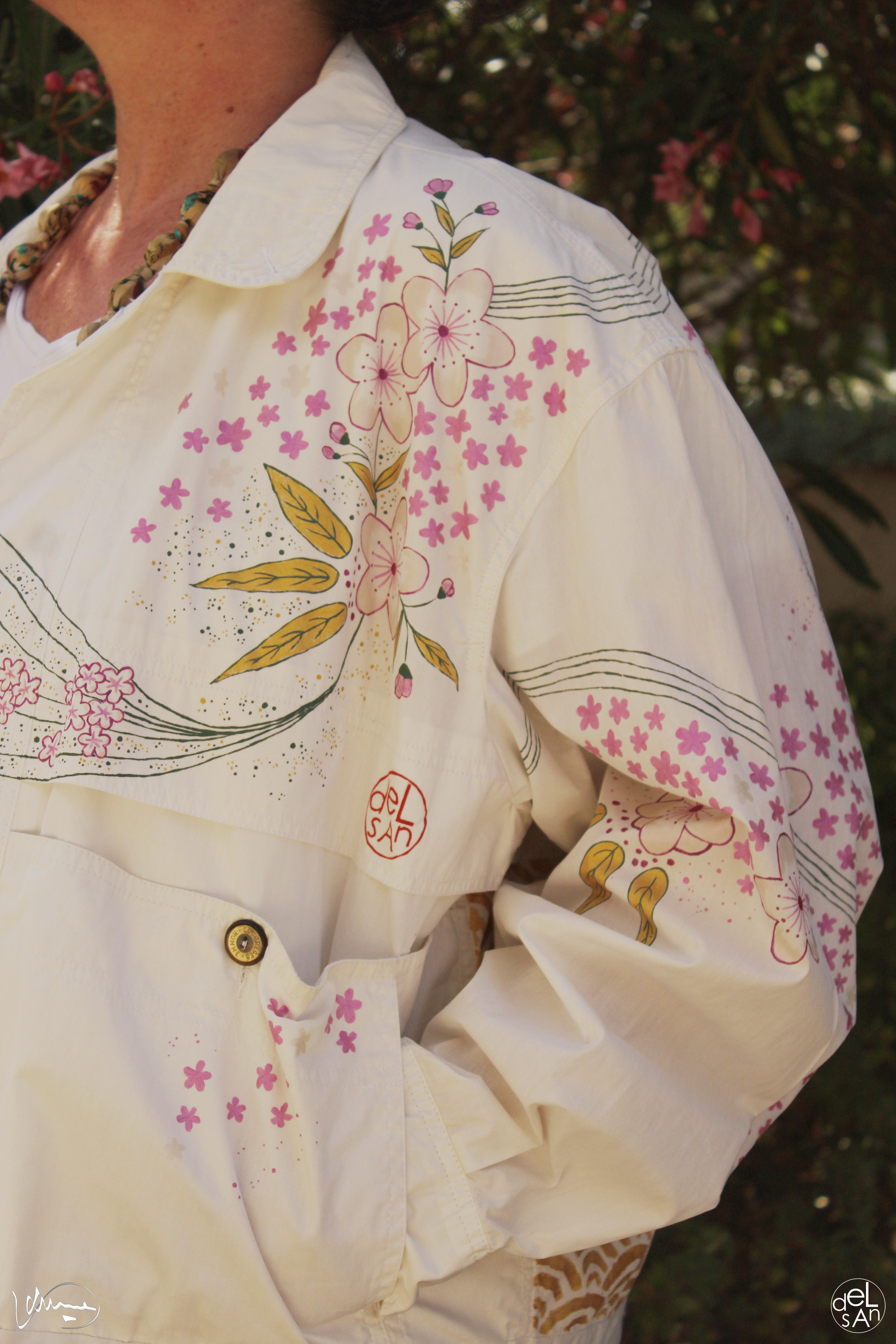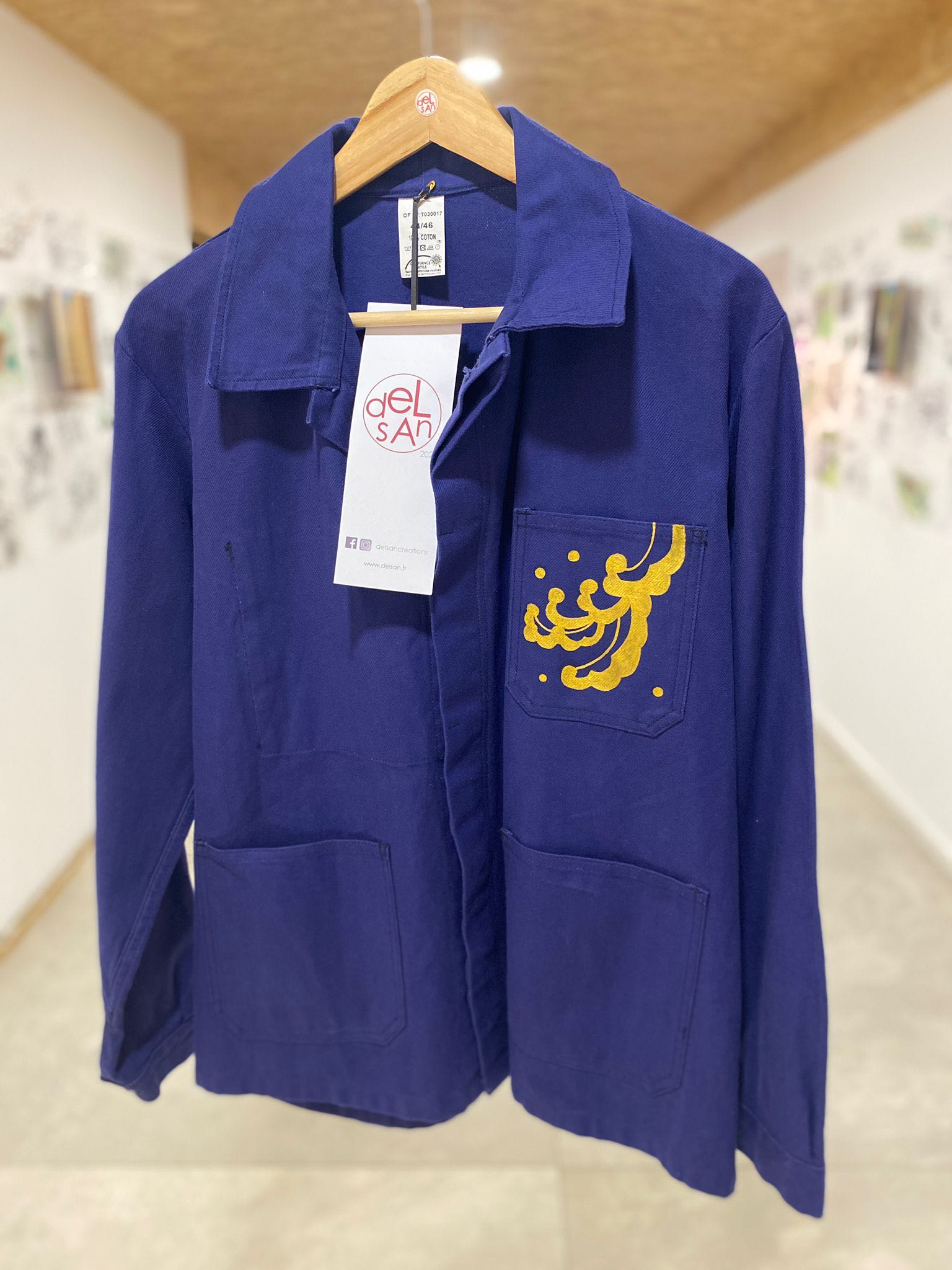 Since 2019, and especially since my move to the Var in 2021, I've been developing custom creations of second-hand clothing. This approach makes the most of already existing items: upcycling, or overcycling. I create patterns and designs entirely by hand, using Pébéo's Sétacolor textile paint. I also offer made-to-measure creations, to order, to transform a garment and personalize it.