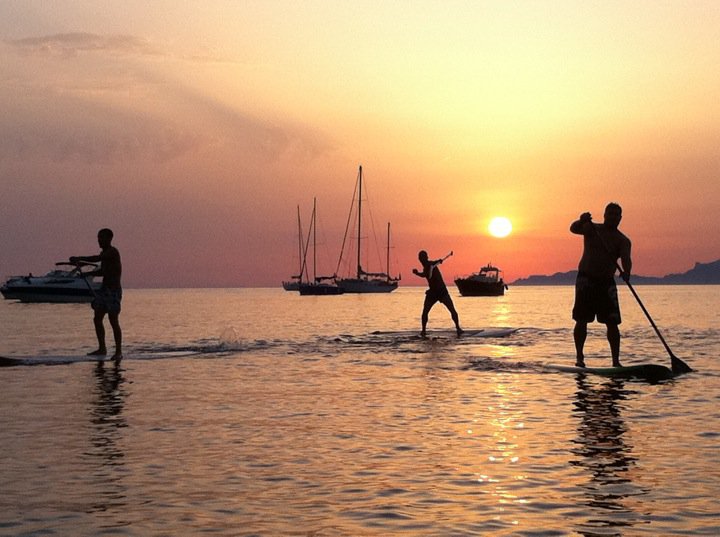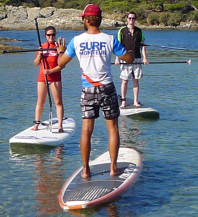 The departure in SUP is in a zone without boat in full safety in front of the island of Embiez. Surfing lessons on a spot adapted according to the weather.