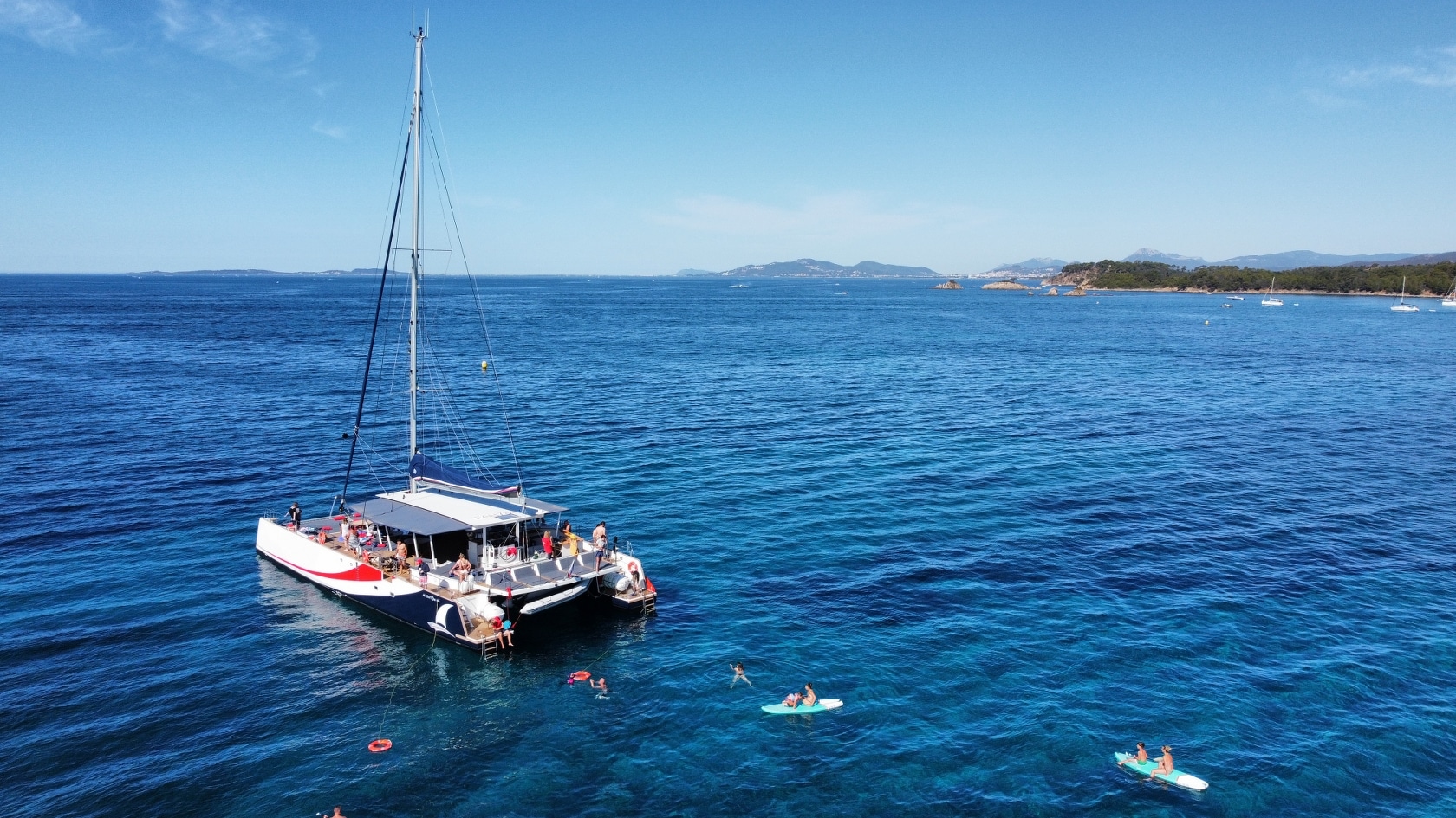 An unforgettable sea outing aboard a maxi-catamaran. Set off for a day or evening of sailing to some of the most beautiful spots on the Mediterranean: the Giens peninsula, Fort de Brégançon and Porquerolles (depending on departure port, wind and weather conditions).
