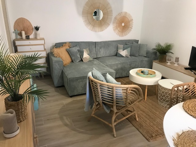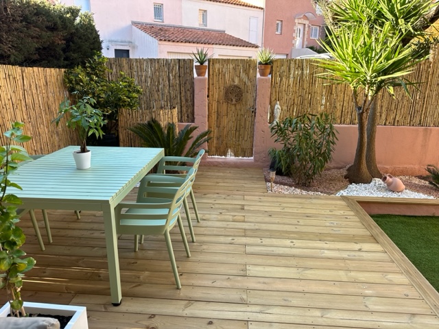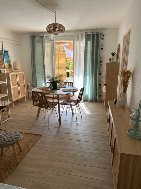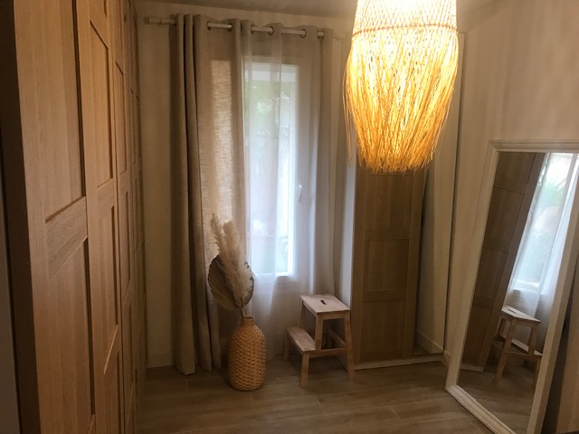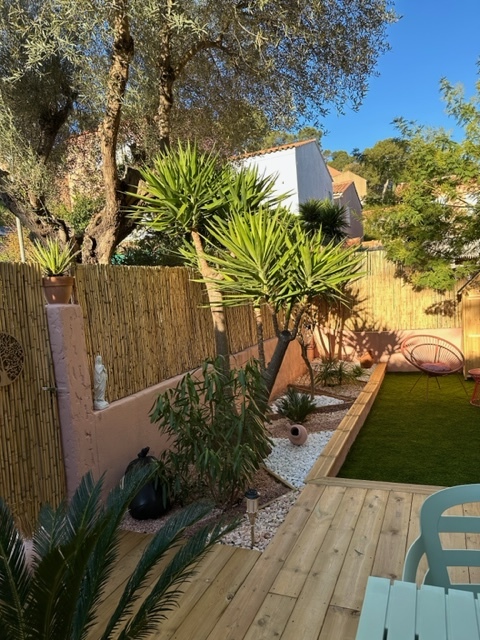 Flat "Mimosa" T2 of 48 m2 on garden level with an outdoor space of 50m2 planted with trees. Completely refurbished and fully equipped. Located 5 minutes by car from the first beaches of l'Almanarre, and 5 minutes' walk from the train station.