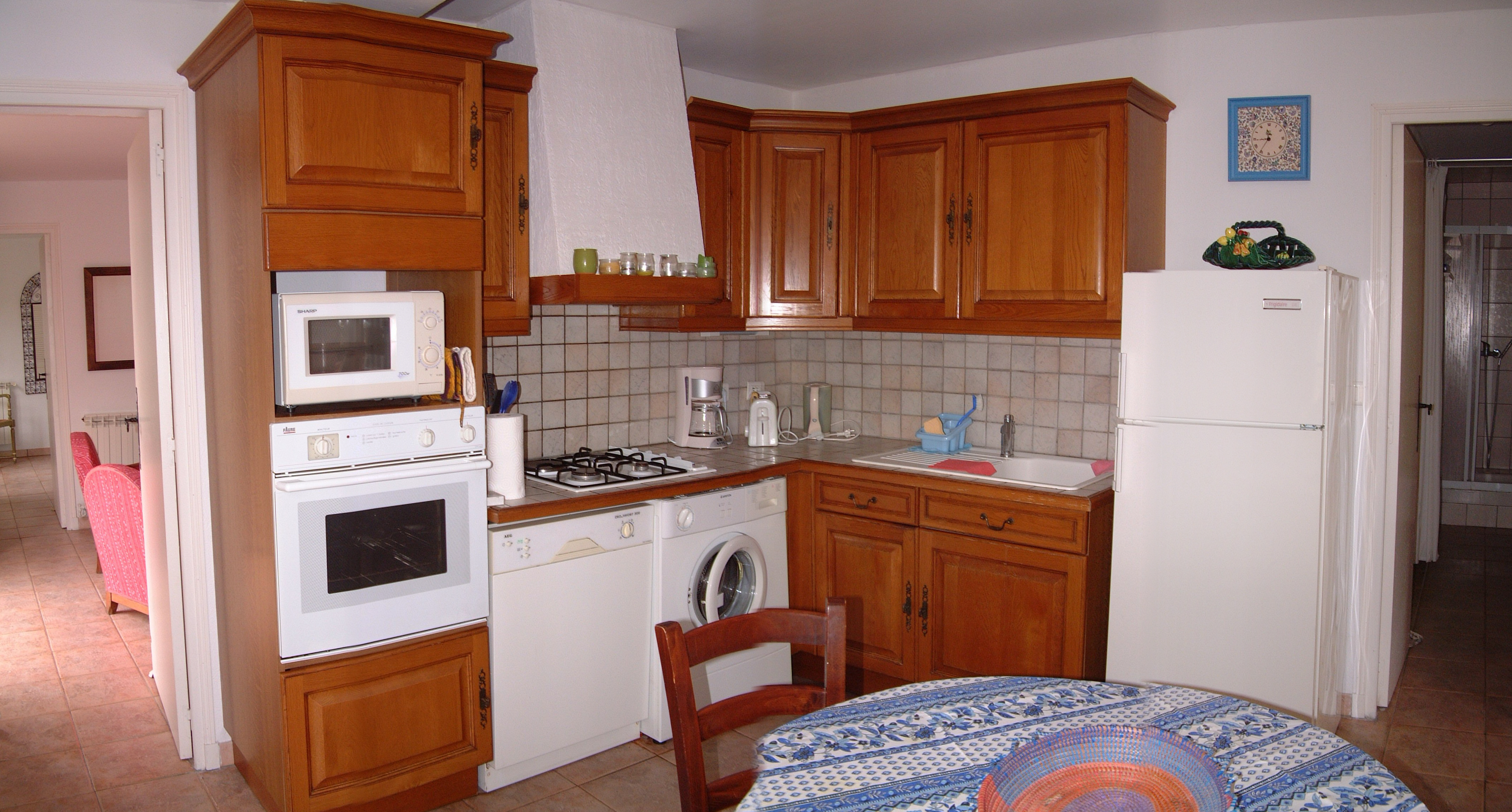 Garden level: equipped kitchen, living room with relaxation area, one bedroom with a double bed (140cm), separate toilet closed in the bathroom (Italian shower). Oil-fired central heating. No overflow of capacity (max. 2 people).