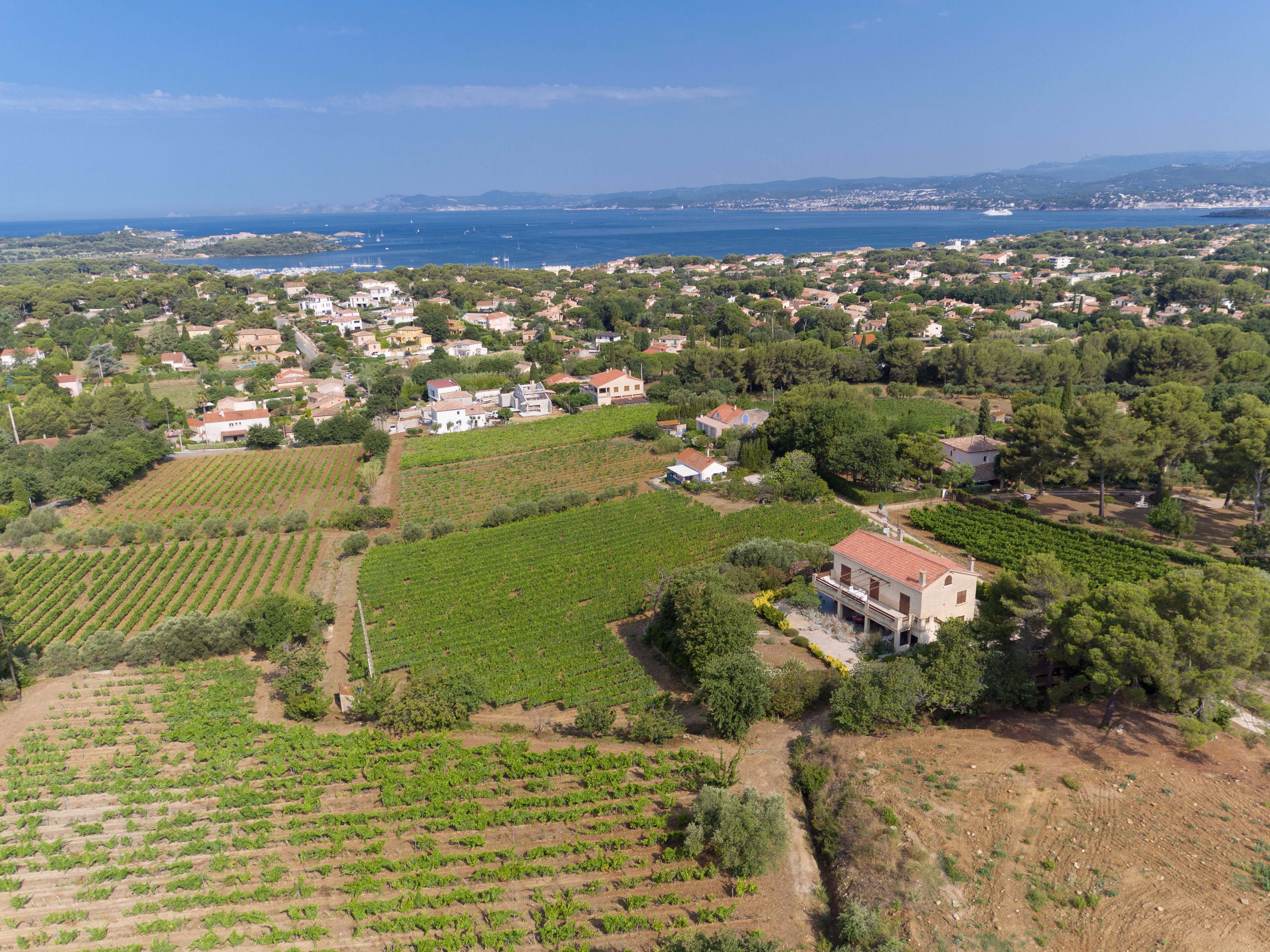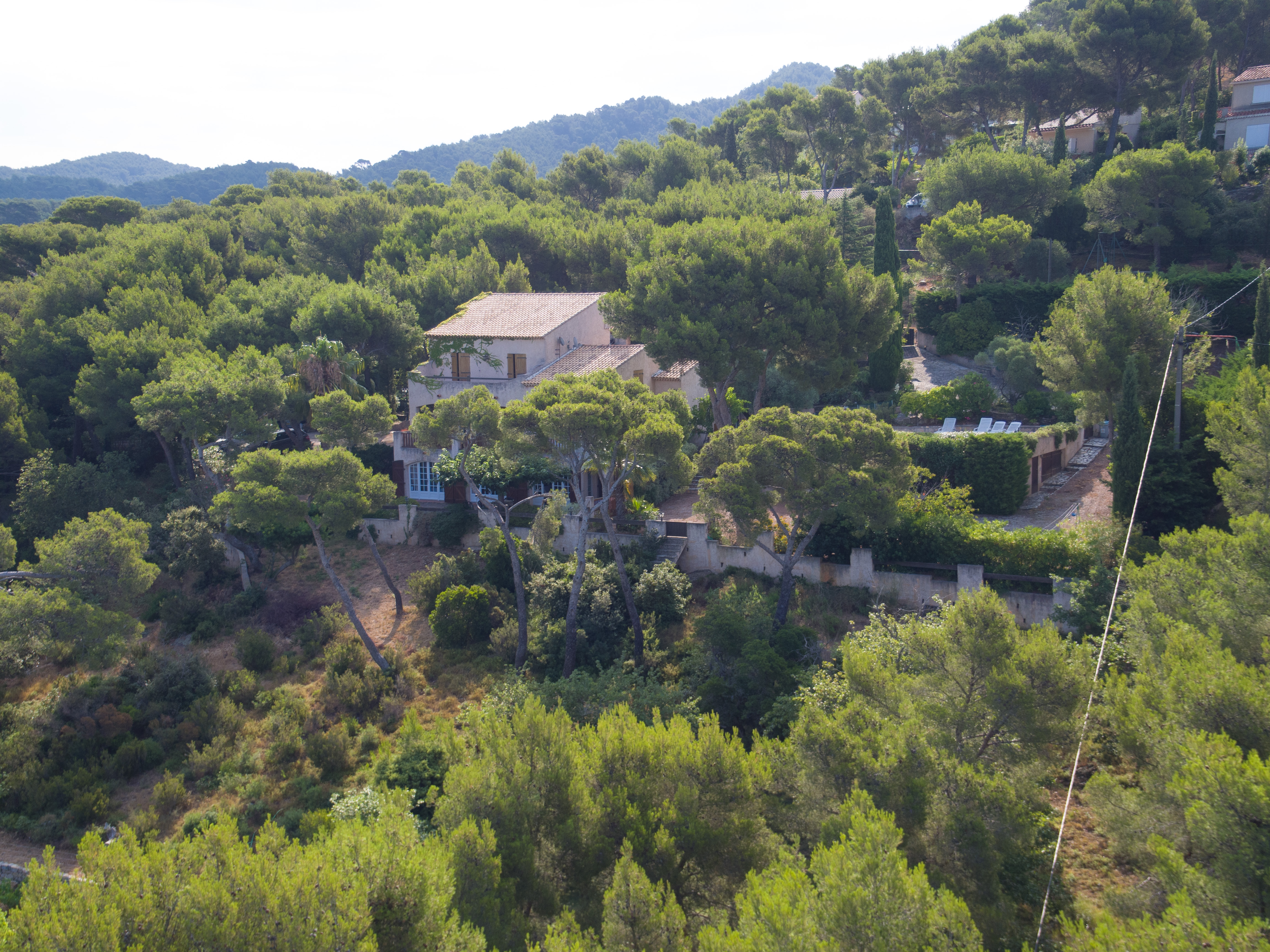 Independent part of the owners' house, on the ground floor, renovated in 2018, in the middle of a 2 ha forest and close to the wine estate, with a panoramic sea view (Calanques de Cassis, îles des Embiez, Baies de Bandol et Sanary), very quiet, private parking, 90 m² paved and tree-lined terrace, garden furniture. Wifi access.