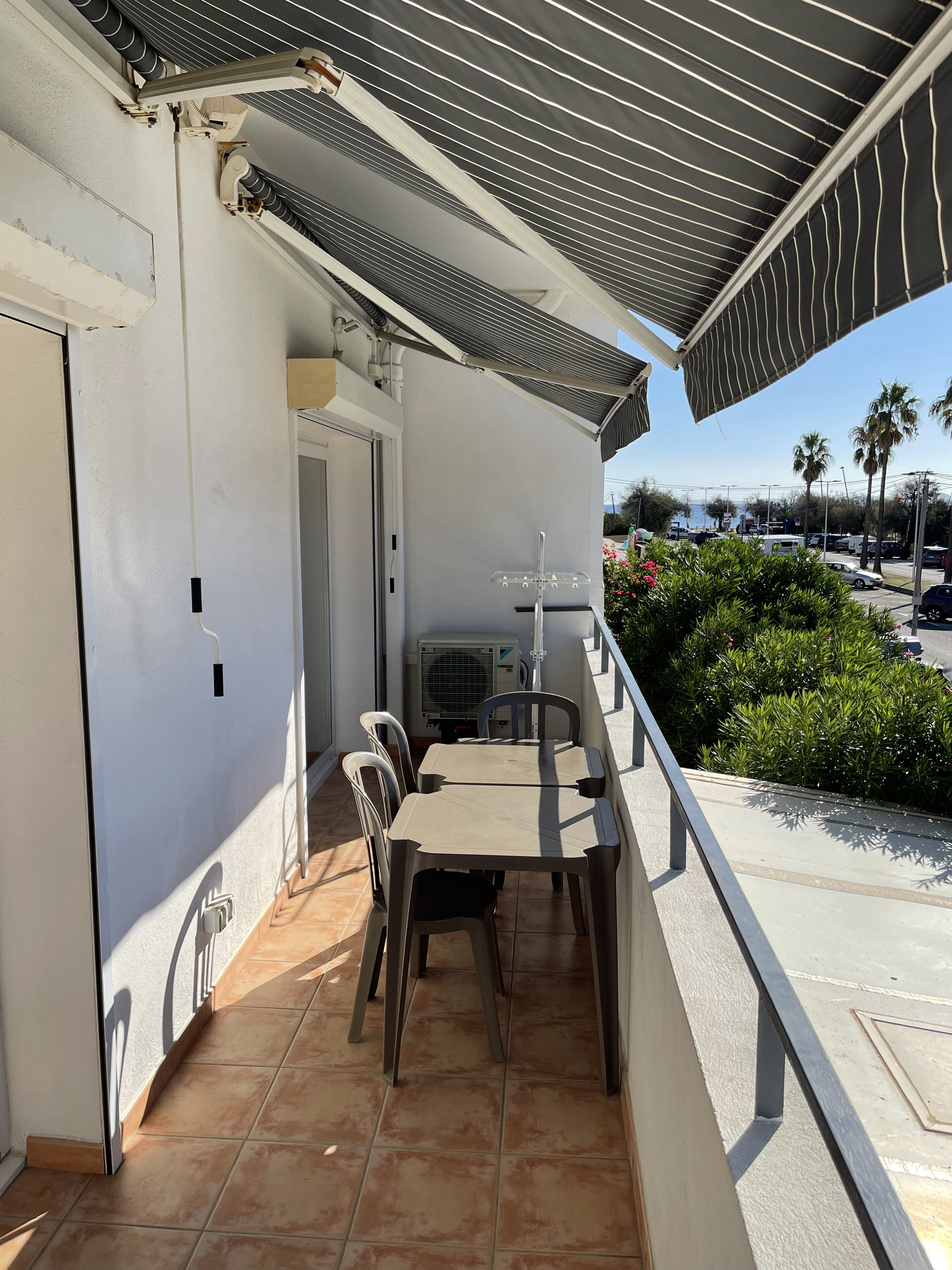 South-facing, sea view, beach 100 m away.