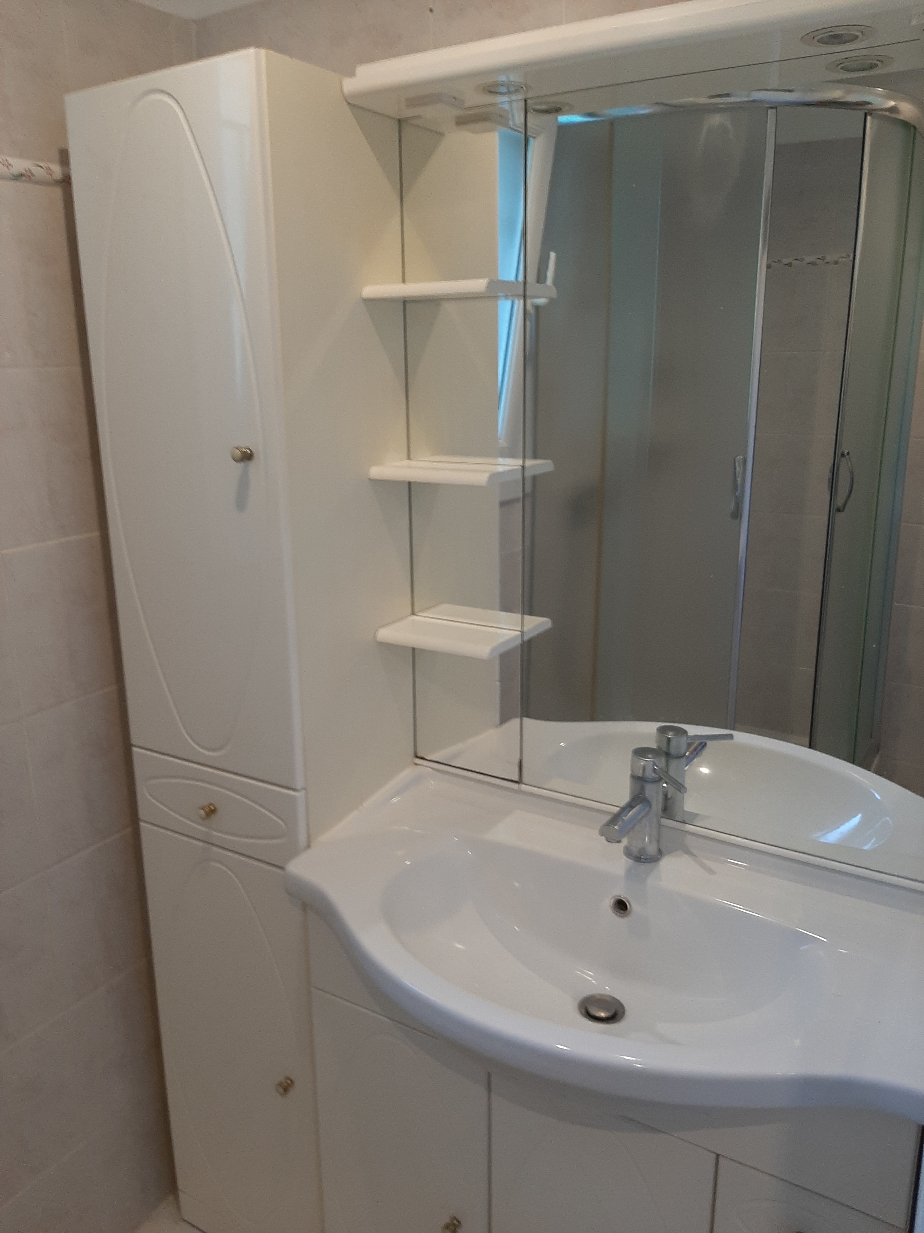Apartment comprising entrance hall, living room, fully equipped open-plan kitchen. Full set of crockery and cutlery for 4 people, espresso maker, toaster, kettle. Fridge-freezer, dishwasher, washing machine, conventional oven, microwave, induction hob, table and chairs, TV, chest of drawers. Chest of drawers, pull-out bed, air-conditioning, balcony. Bathroom with shower cubicle, washbasin, storage space, towel dryer, hairdryer, floor mat. Separate toilet, hygiene products.