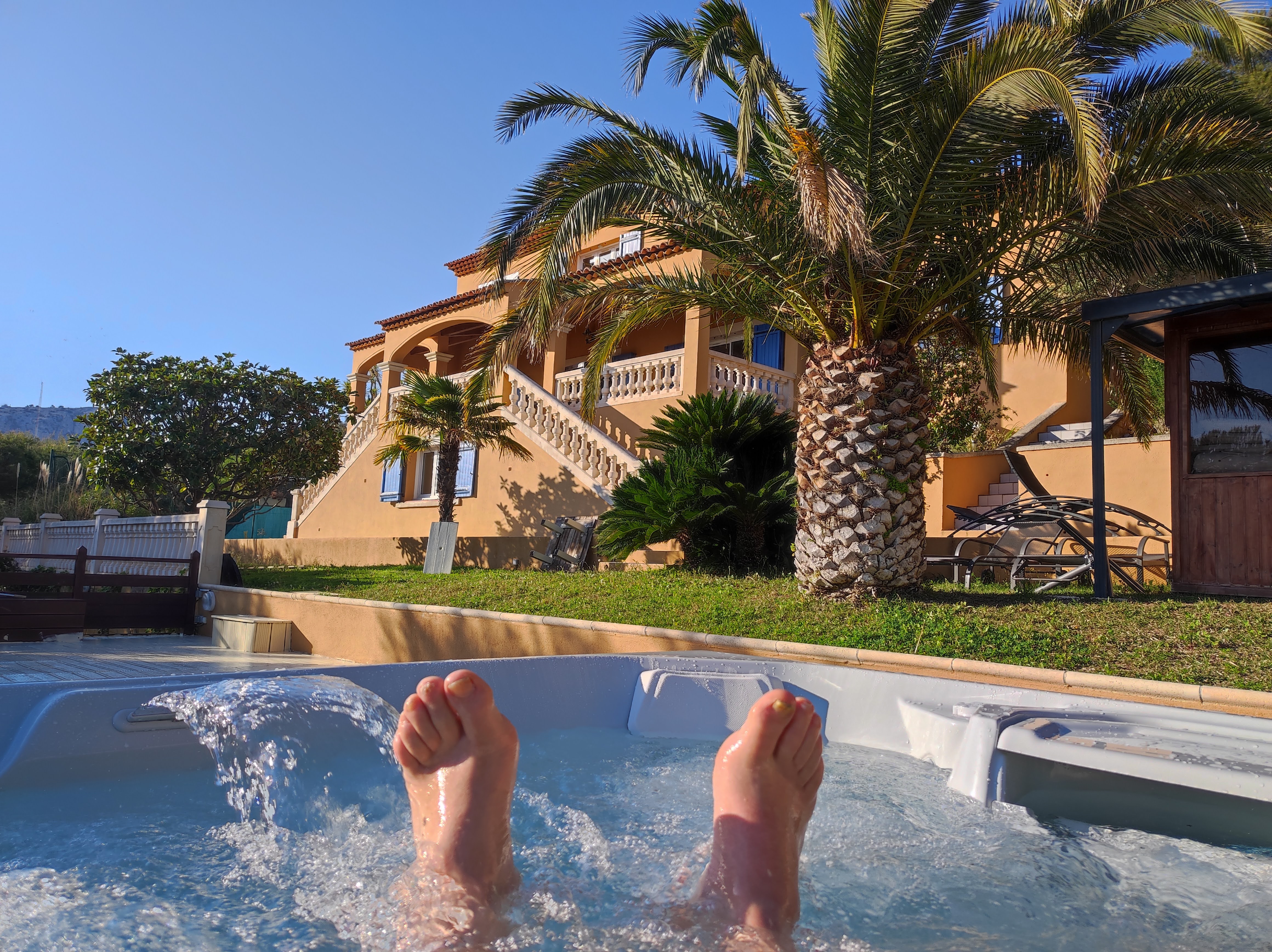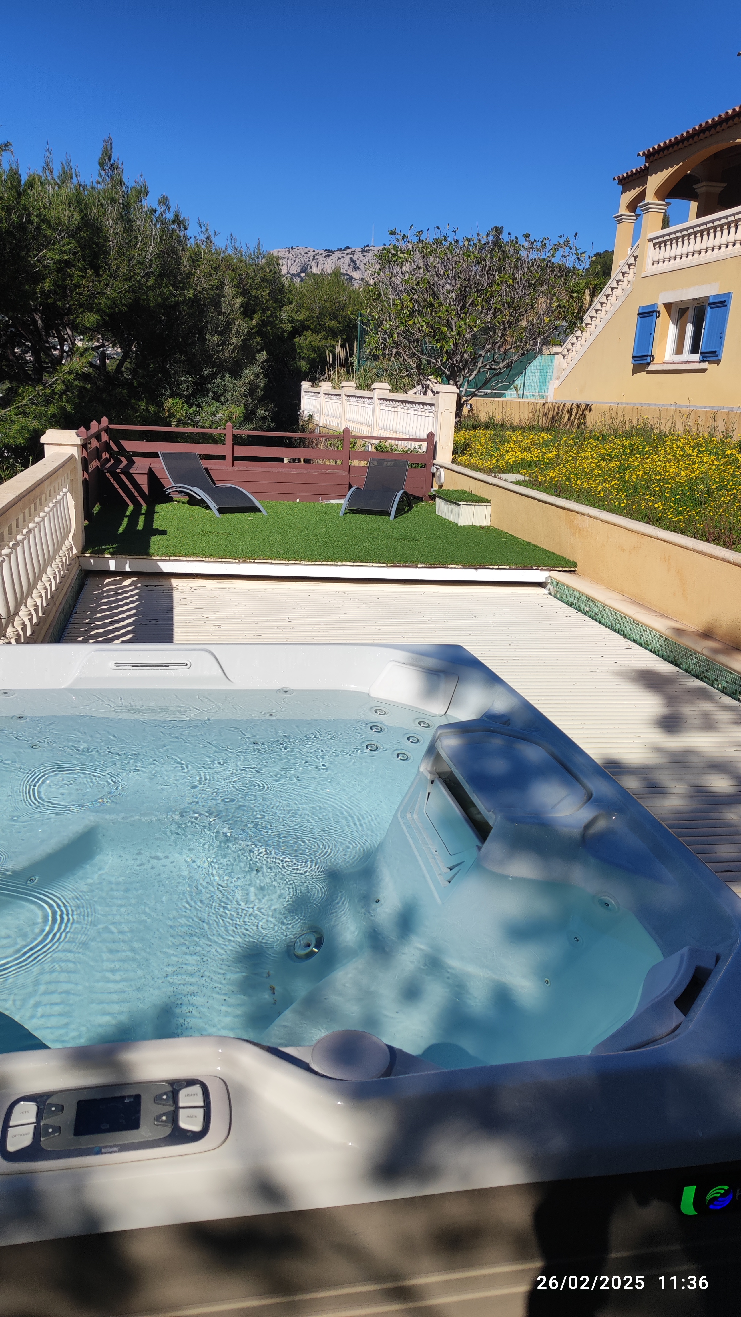 La maison bleue welcomes you to a relaxing setting overlooking Toulon, featuring a swimming pool, spa, tennis court, and pétanque court. The three air-conditioned bedrooms are separate from our house. Secure parking is available. See you soon !