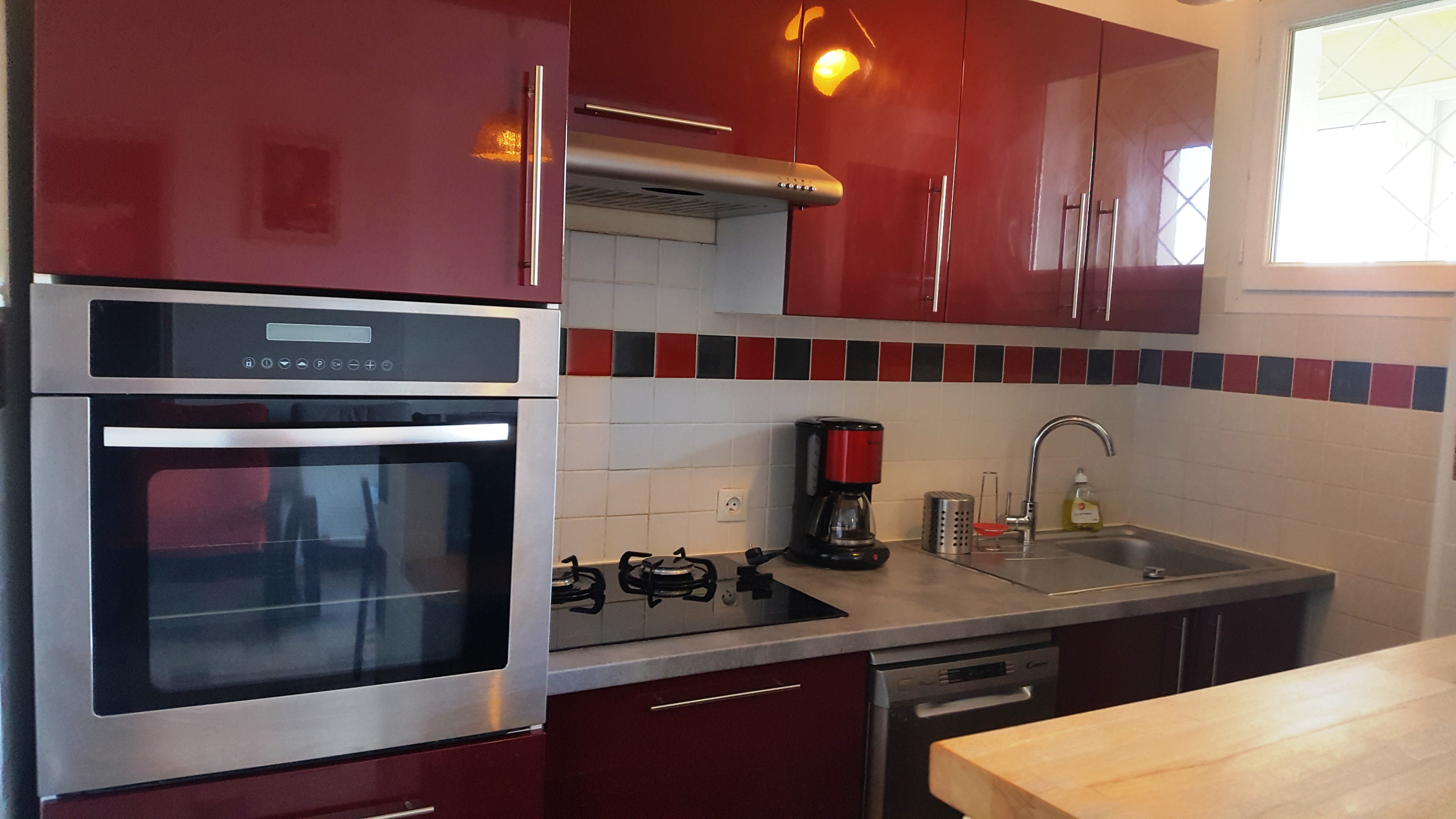 fully-equipped open-plan kitchen: 265-litre fridge-freezer, oven, microwave, dishwasher, toaster, filter coffee maker and all utensils,