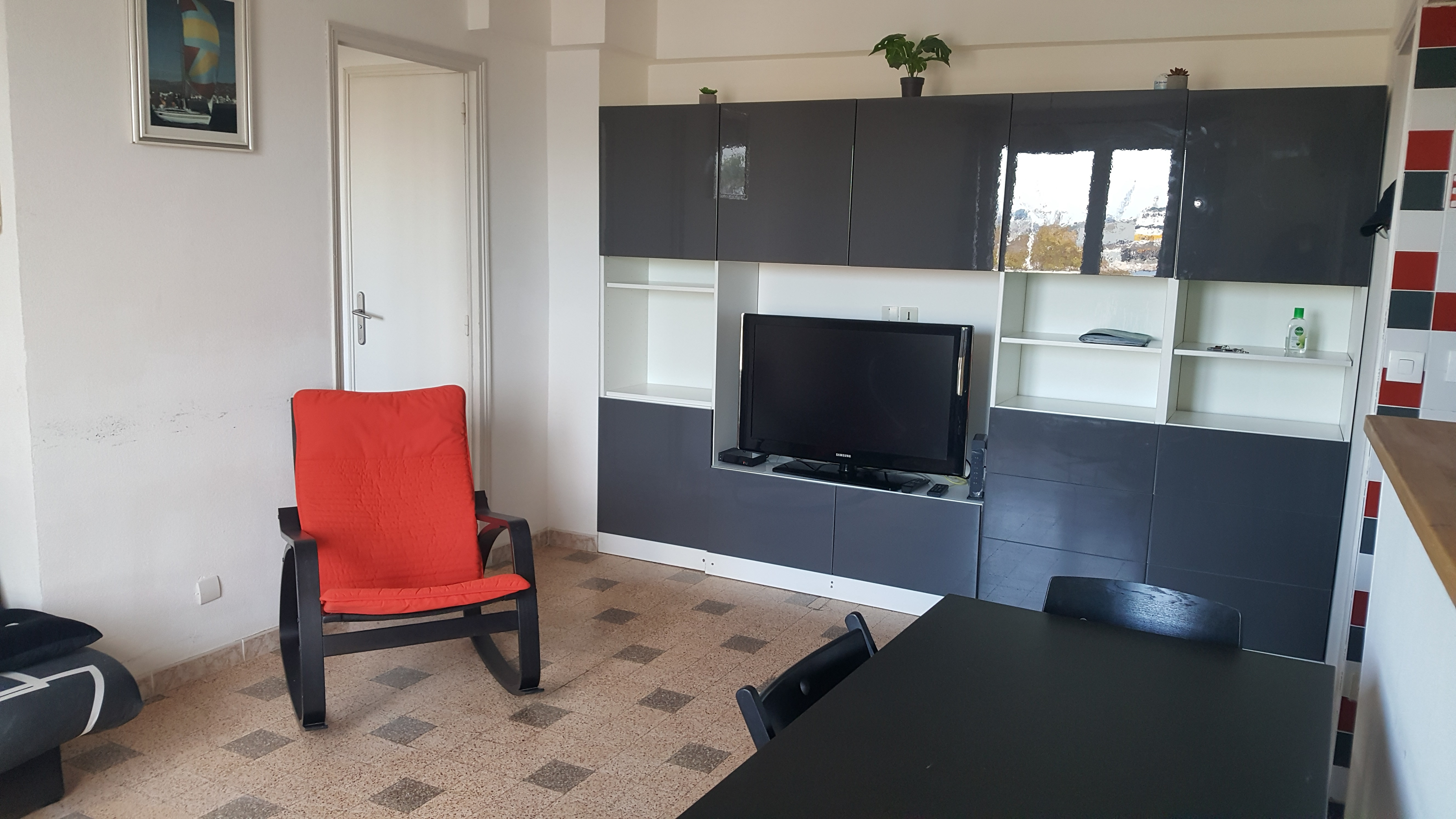 T2 flat with a total surface area of 34 m² located on the 2nd floor of a building, close to the town centre, port and amenities.