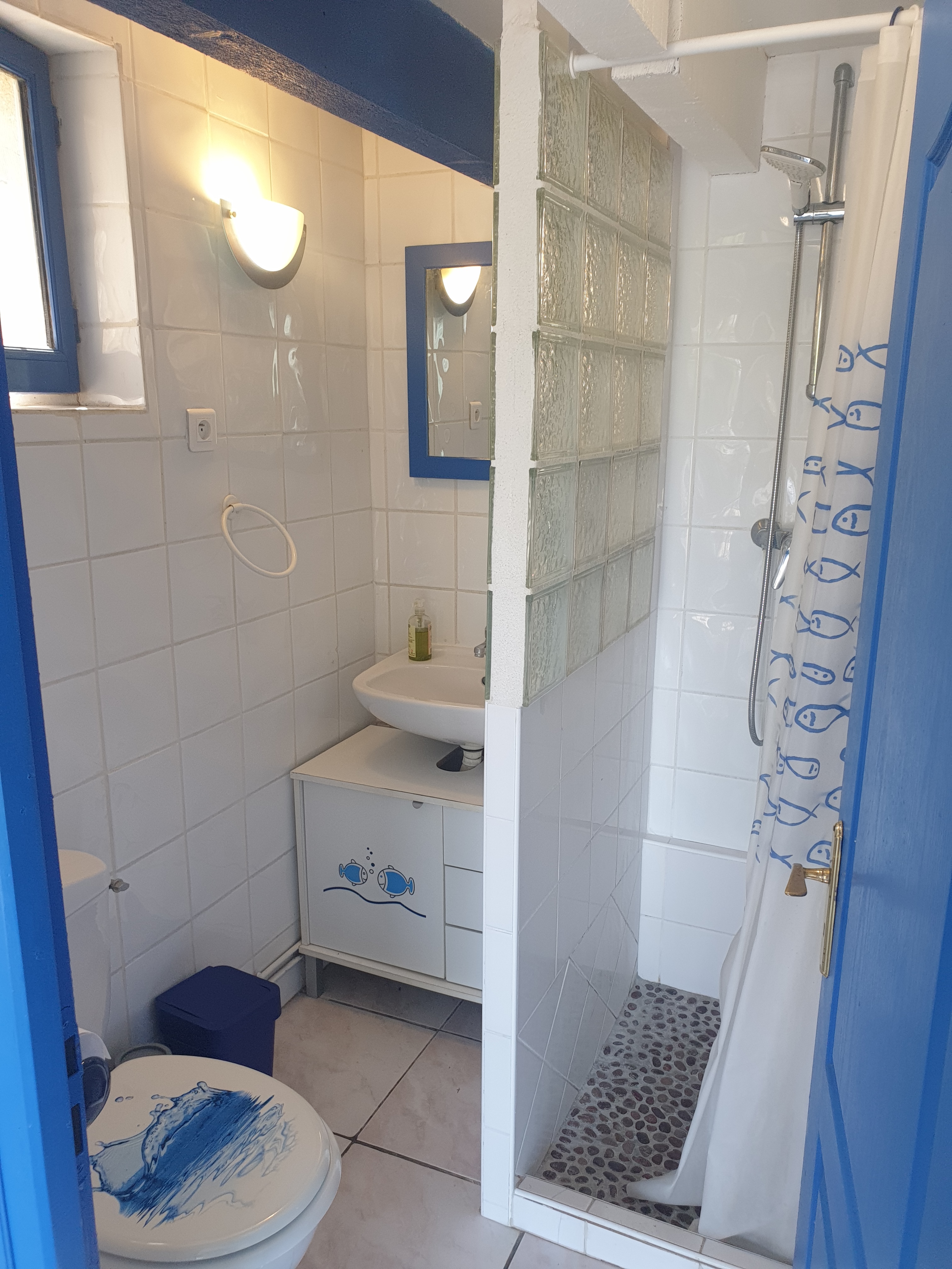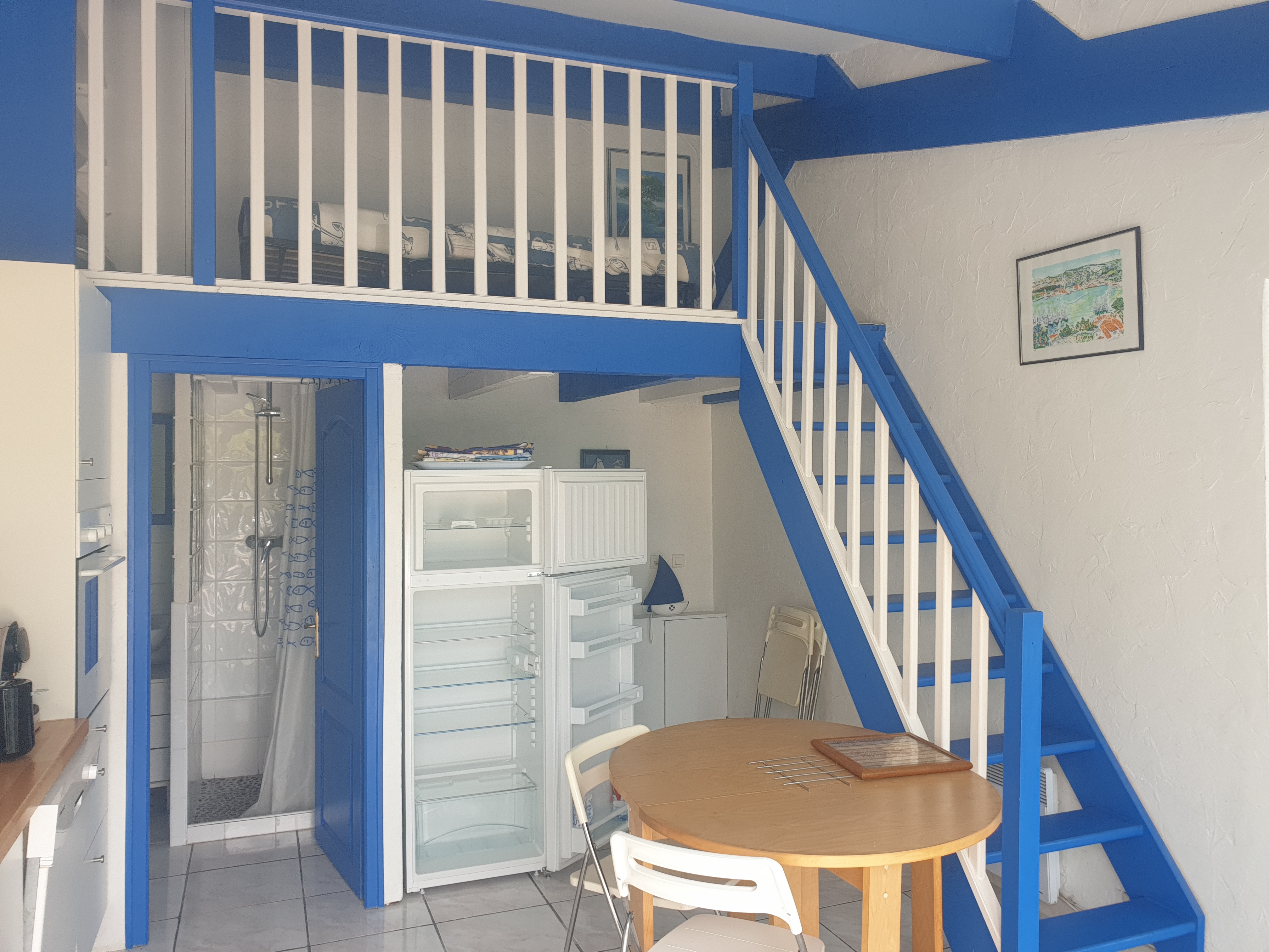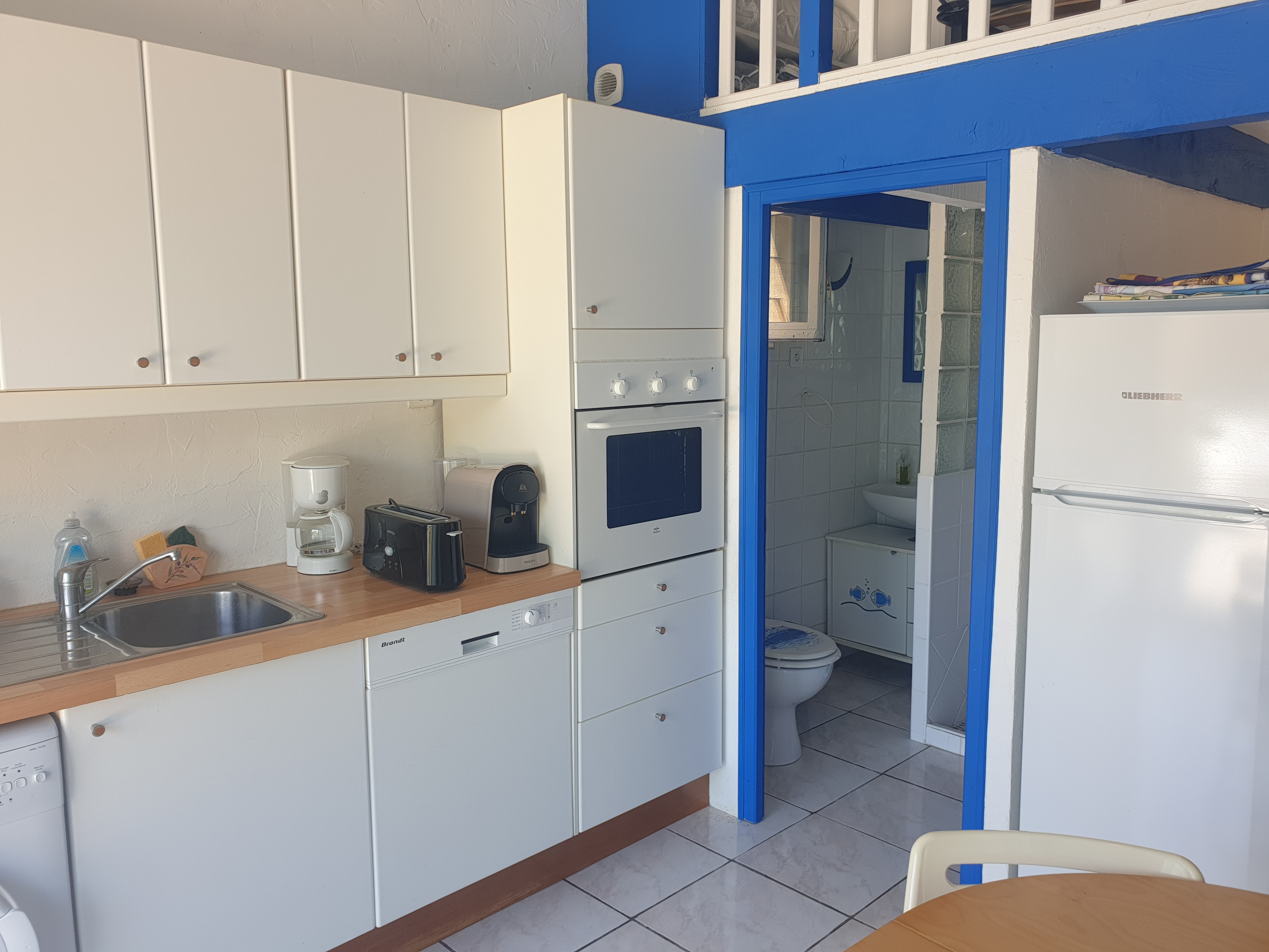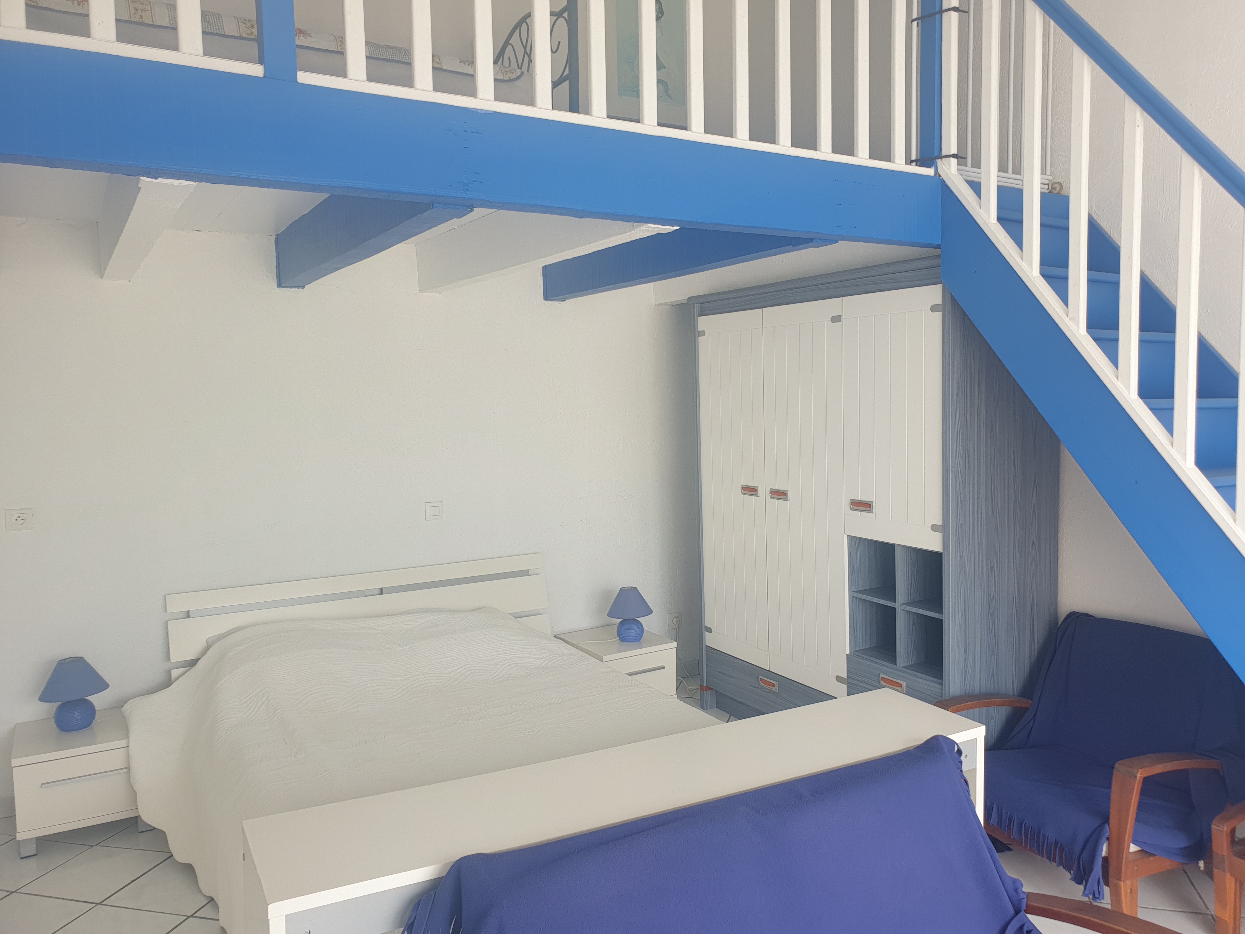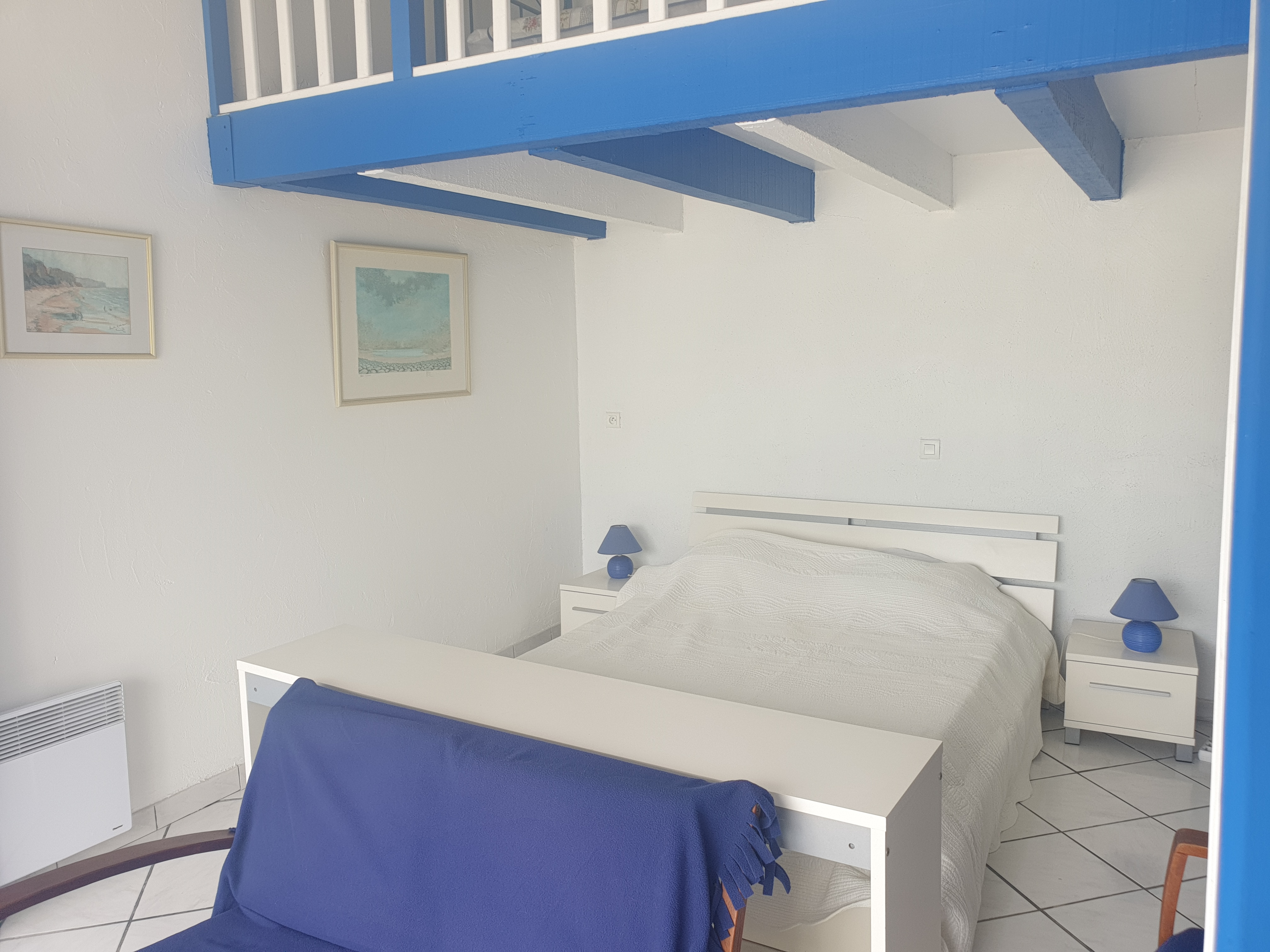 Villa T2 of 38 m2 ground floor for 4 persons fully equipped. Almost on one level (2 steps), it is nestled in a wooded area with great views of sea. 1 km from shops and 500 m from the sea.