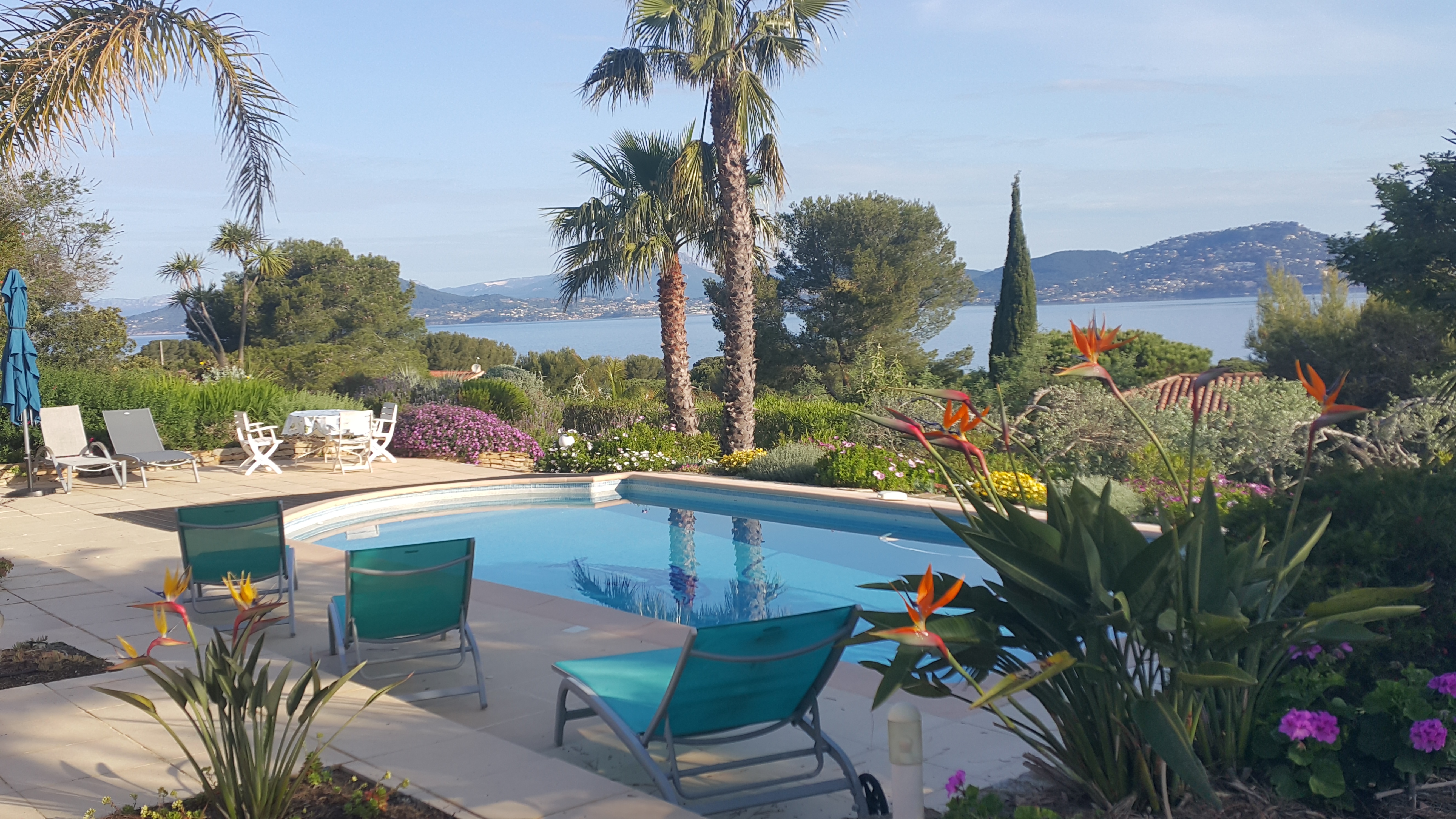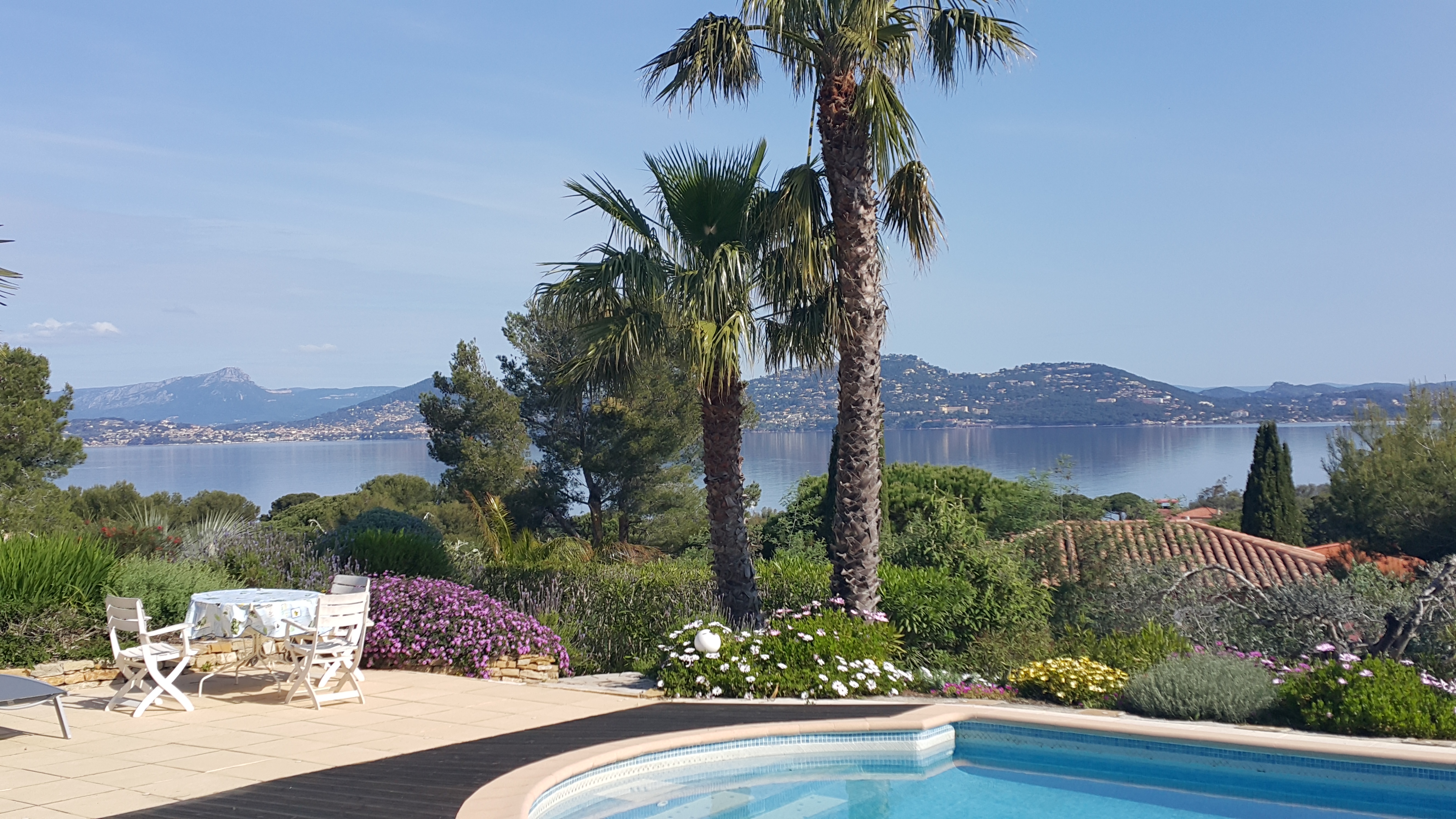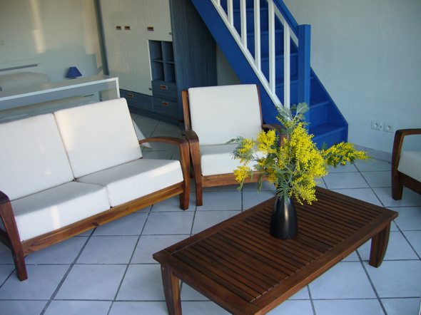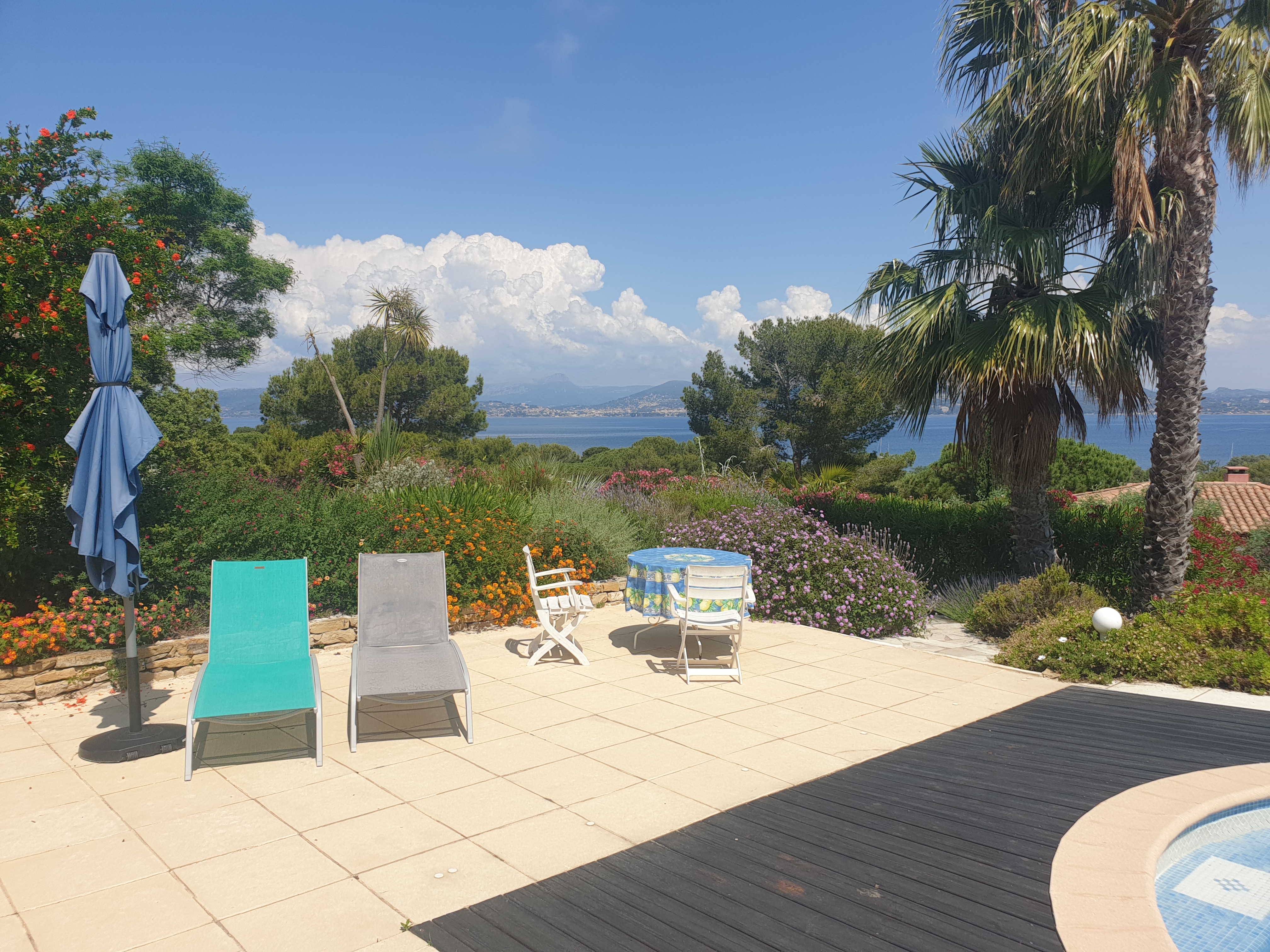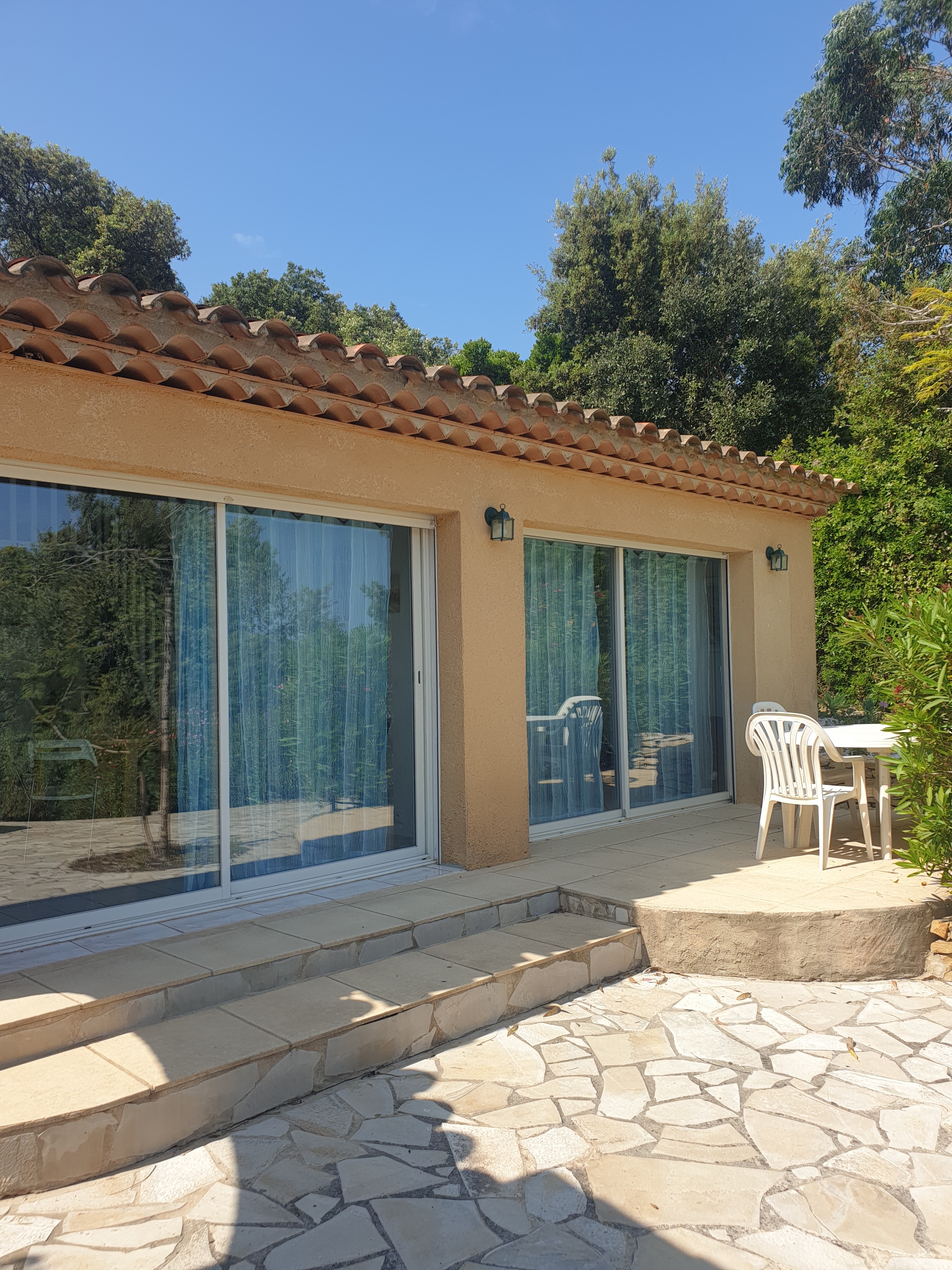 Villa T2 of 38 m2 ground floor for 4 persons fully equipped. Almost on one level (2 steps), it is nestled in a wooded area with great views of sea. Large pool 10 m x 5 m.