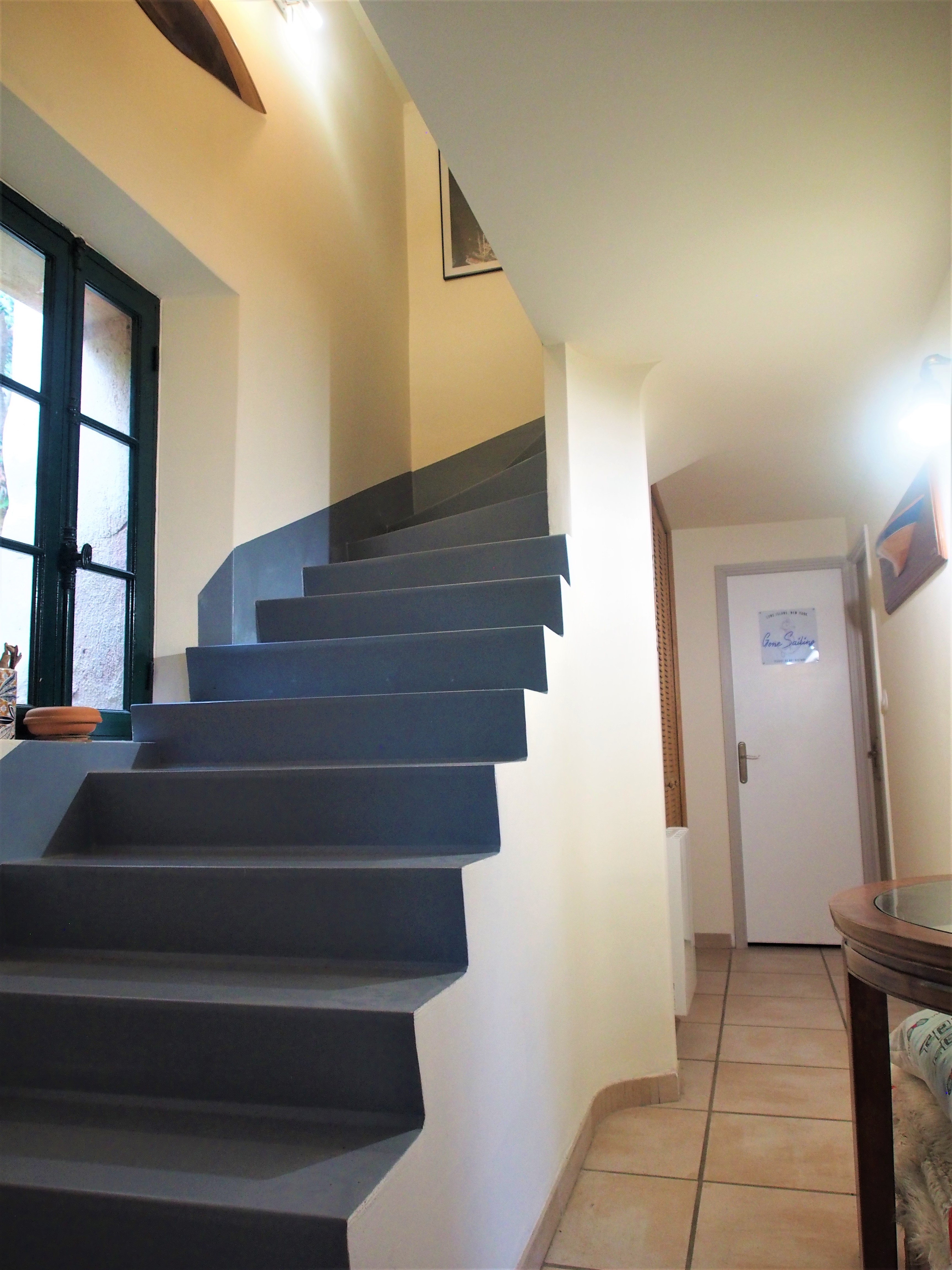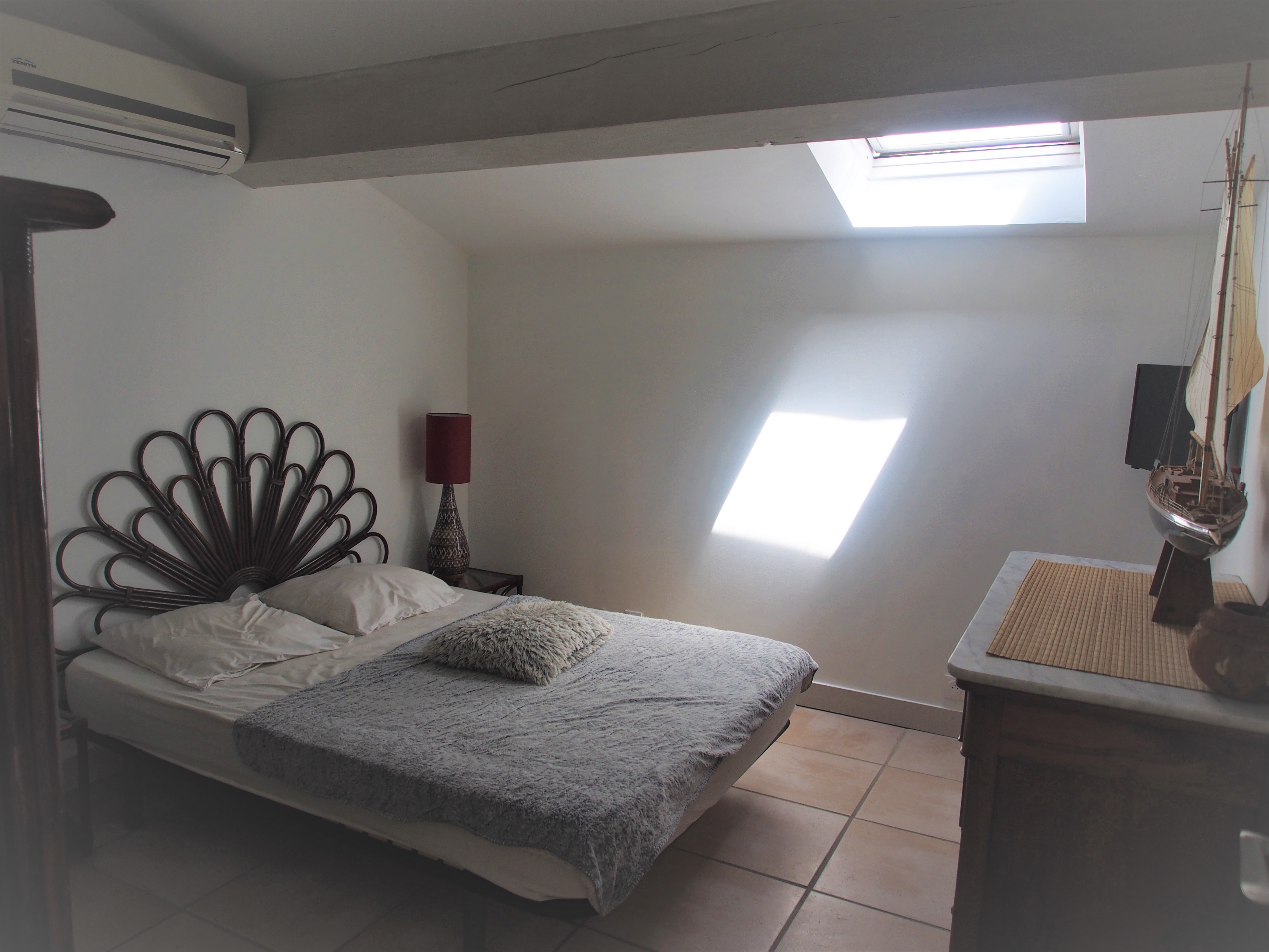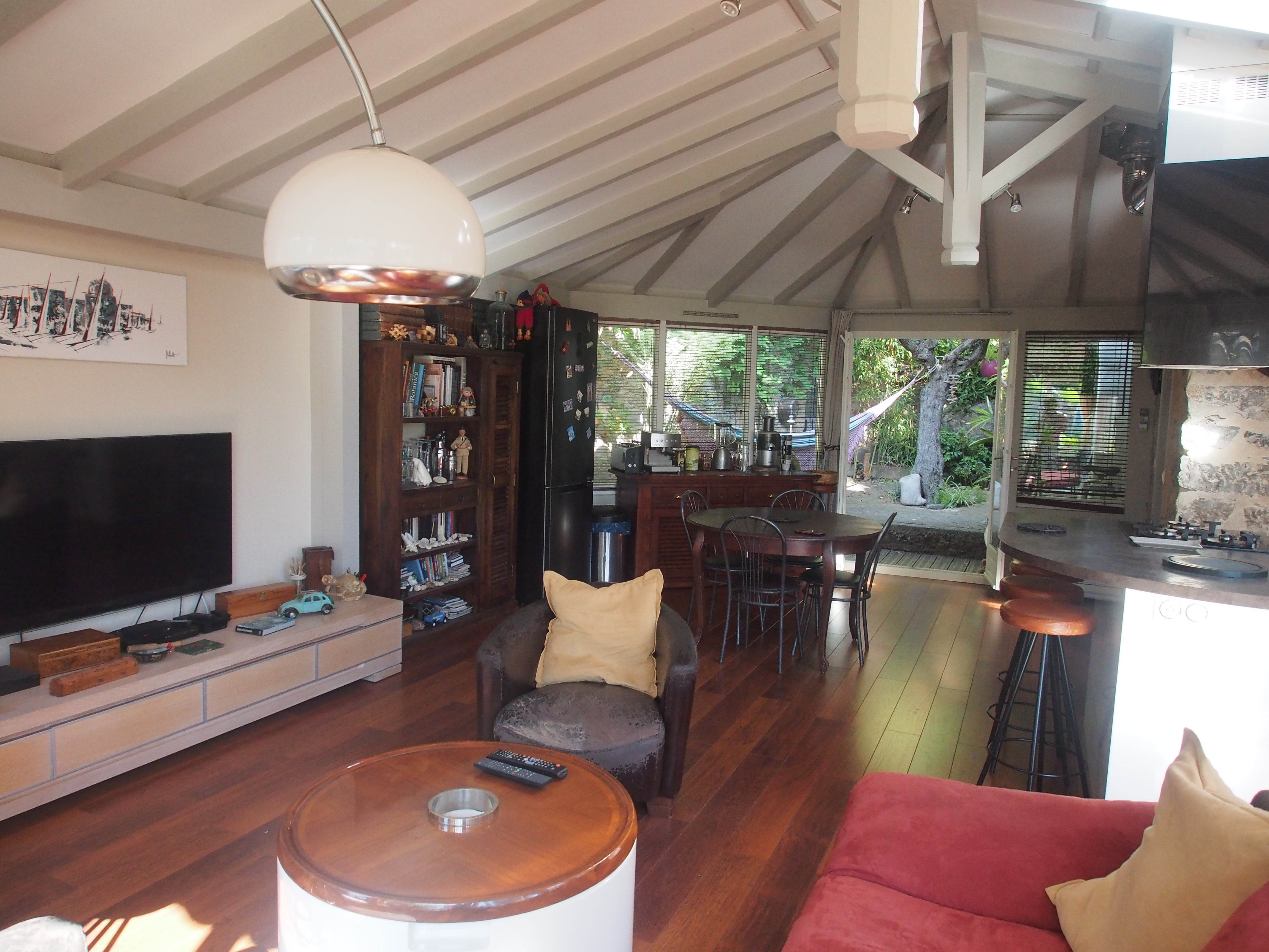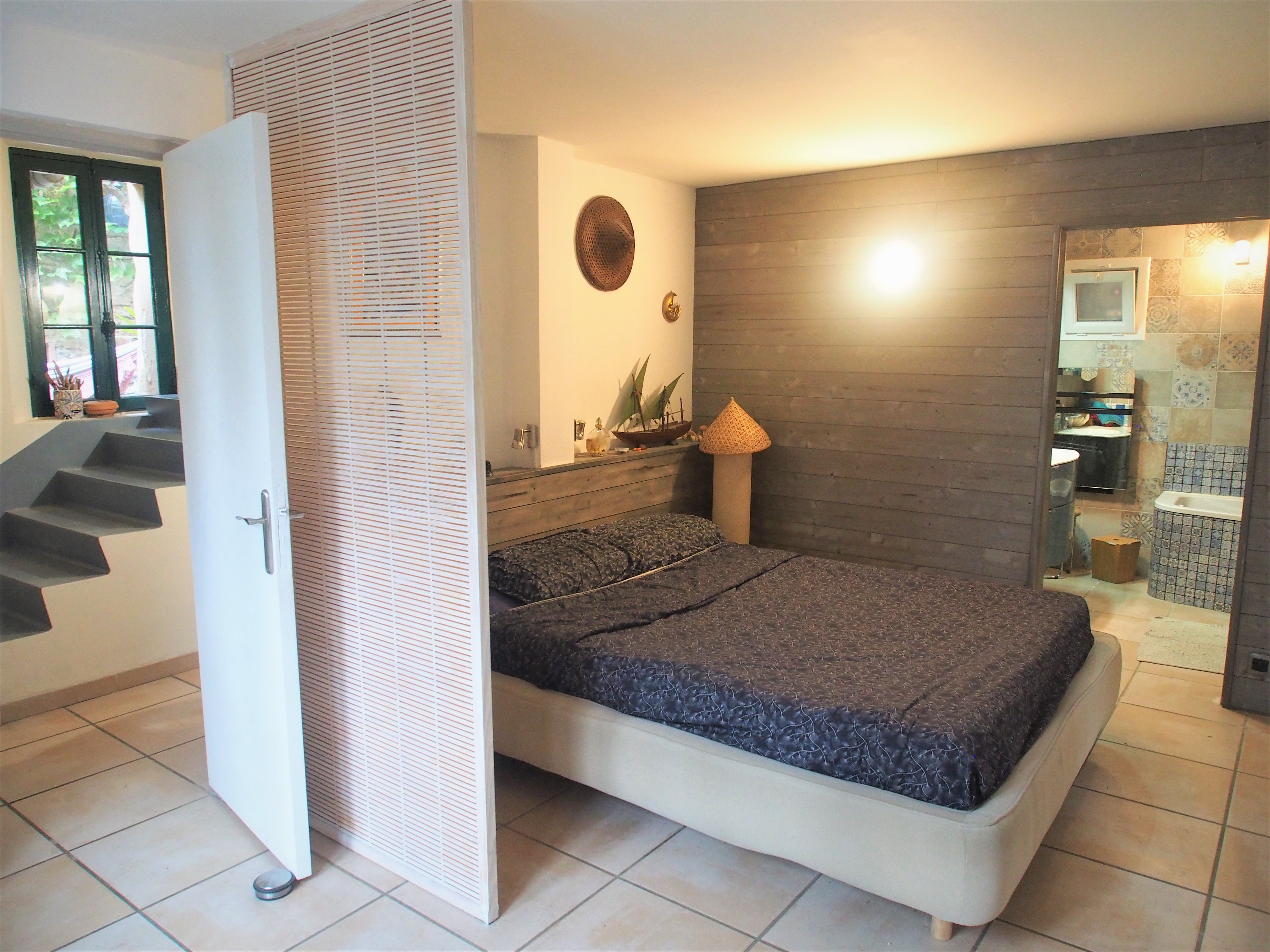 --- Ground floor: A beautiful bright living room in colonial style with a very well equipped kitchen with all comforts (TV, Internet, Bluetooth HiFi...) + a large bedroom (bed 160 cm) with access to the terrace and private bathroom (bath + shower) + laundry room (washing machine, dryer) + separate WC.