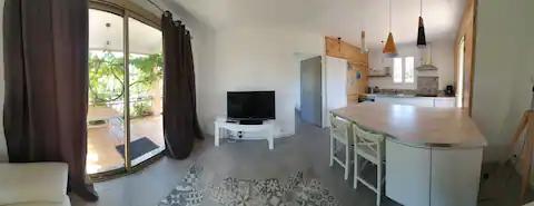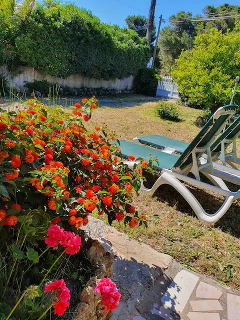 Semi-detached house on garden level, ideally located on the peninsula of Giens, at 500m walking distance from the beaches of Badine and Almanarre, on a wooded plot. Independent entrance and parking in the garden.