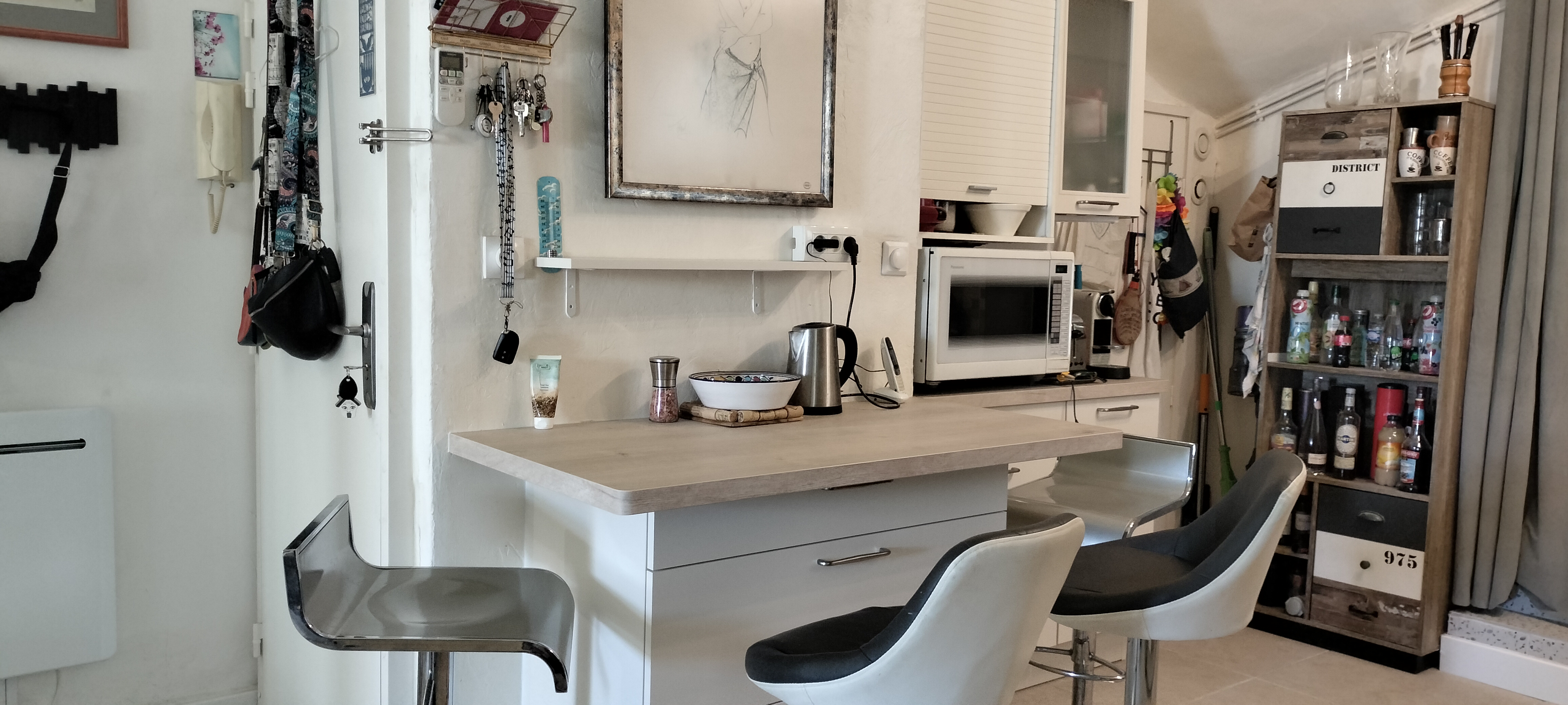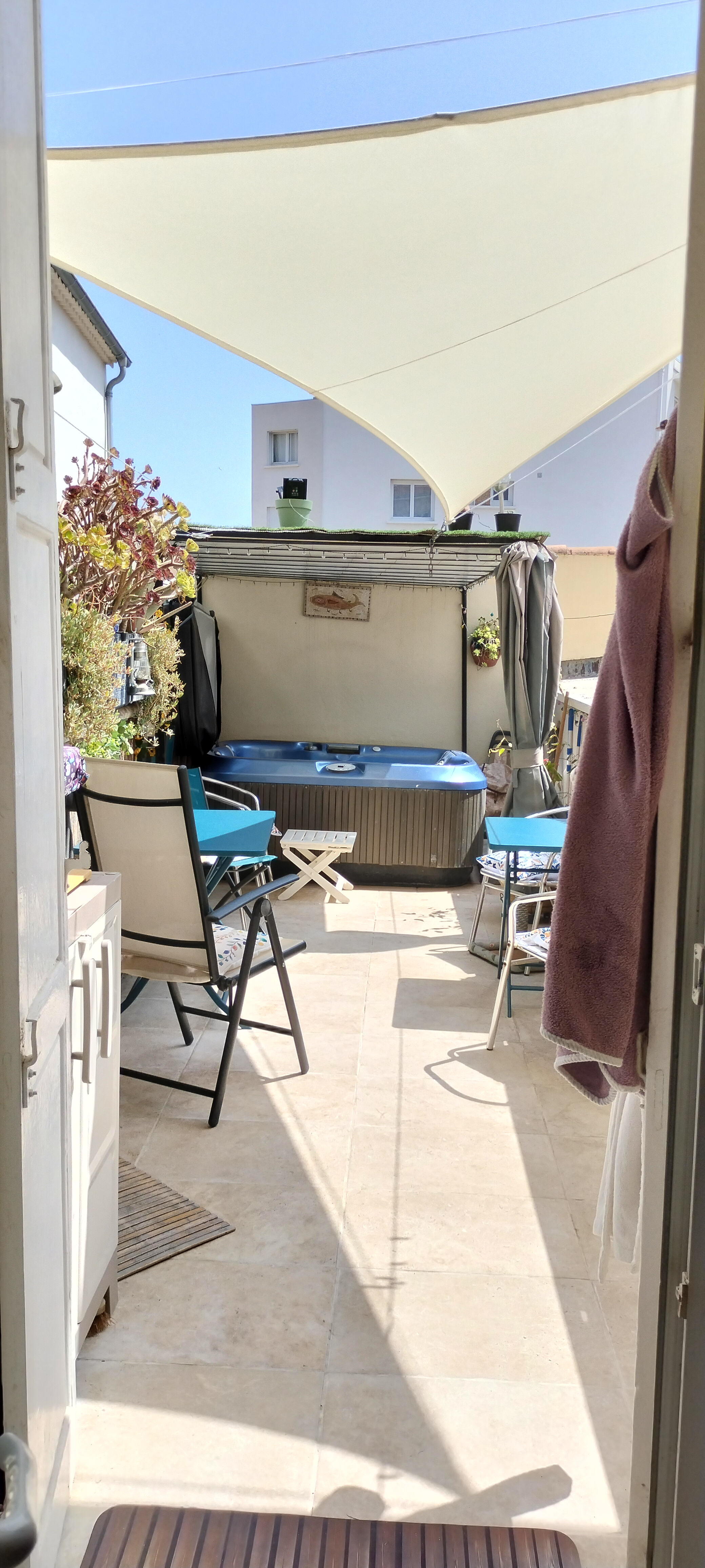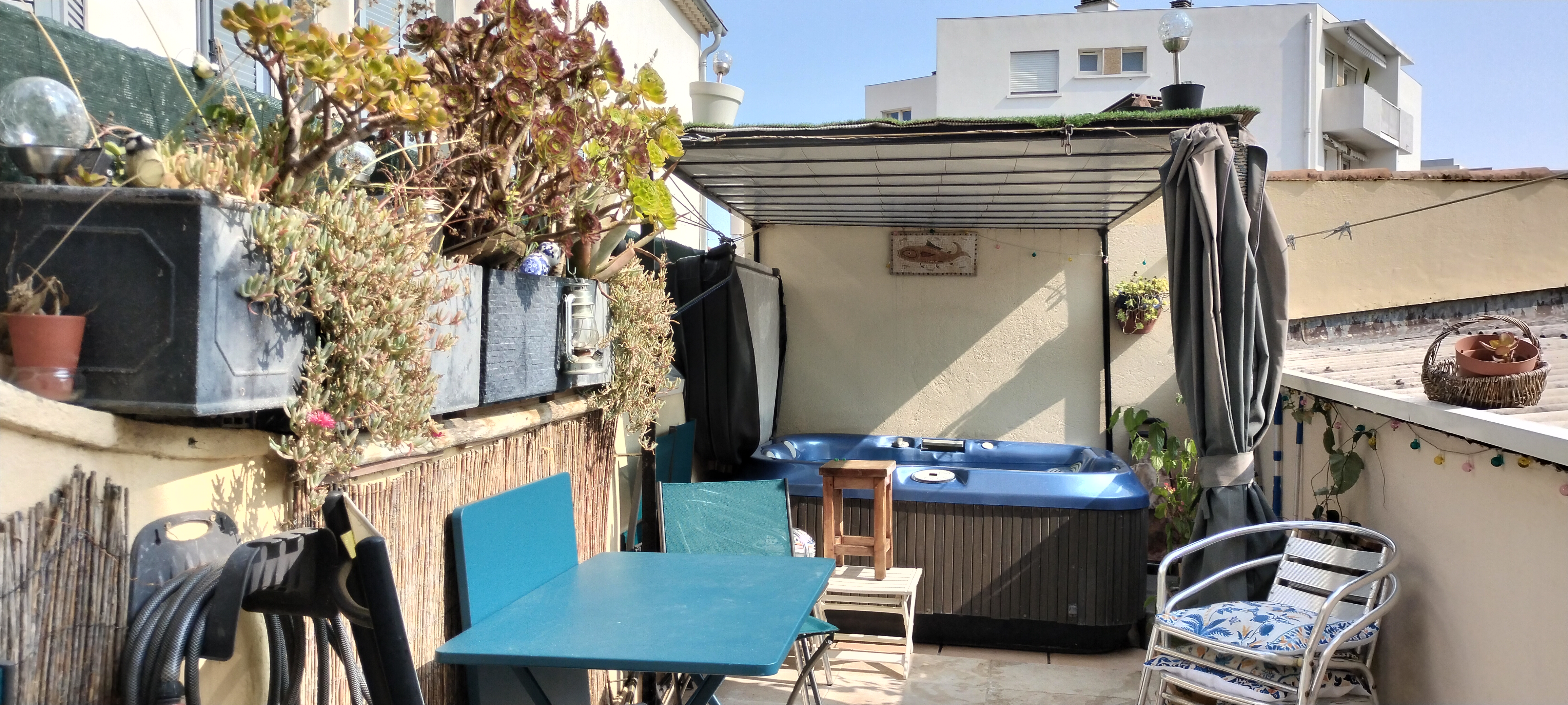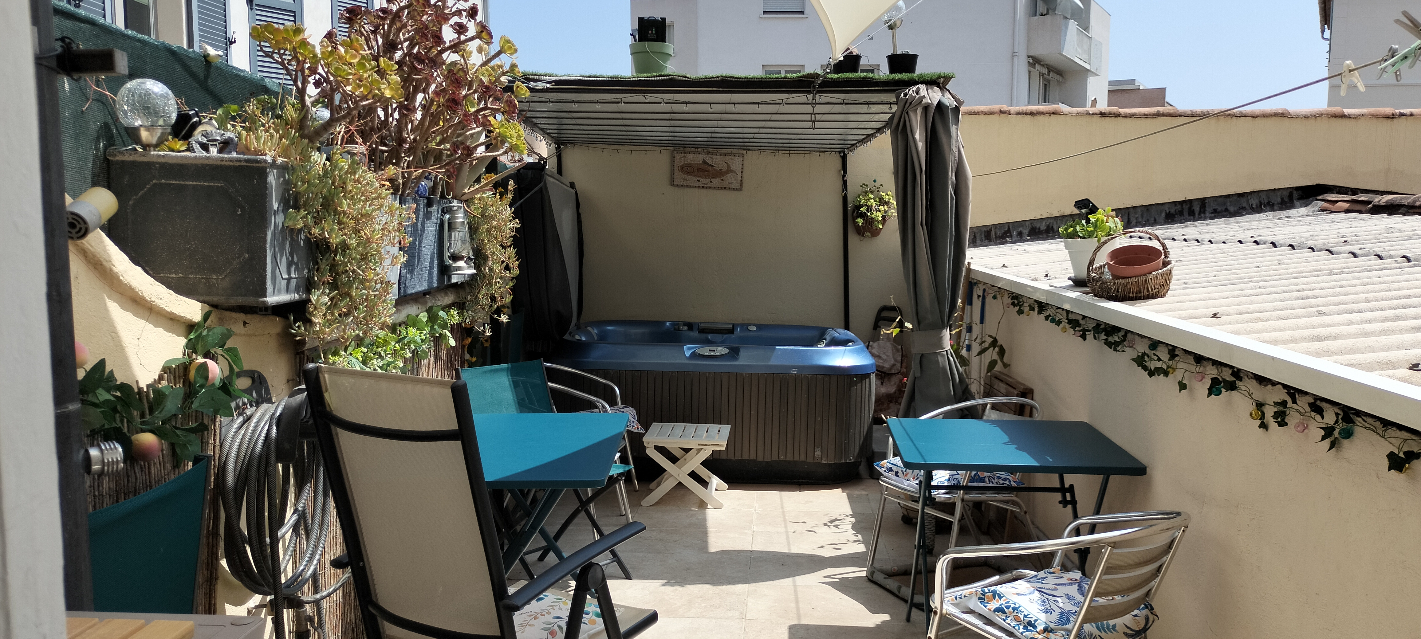 Loft-style apartment with air conditioning in the living room, fully equipped kitchen, terrace with jacuzzi, two bedrooms and a piano. Direct buses from Toulon train station. Le Mourillon, a legendary neighborhood with the famous Rue Lamalgue and the Provençal market. Bars and restaurants.