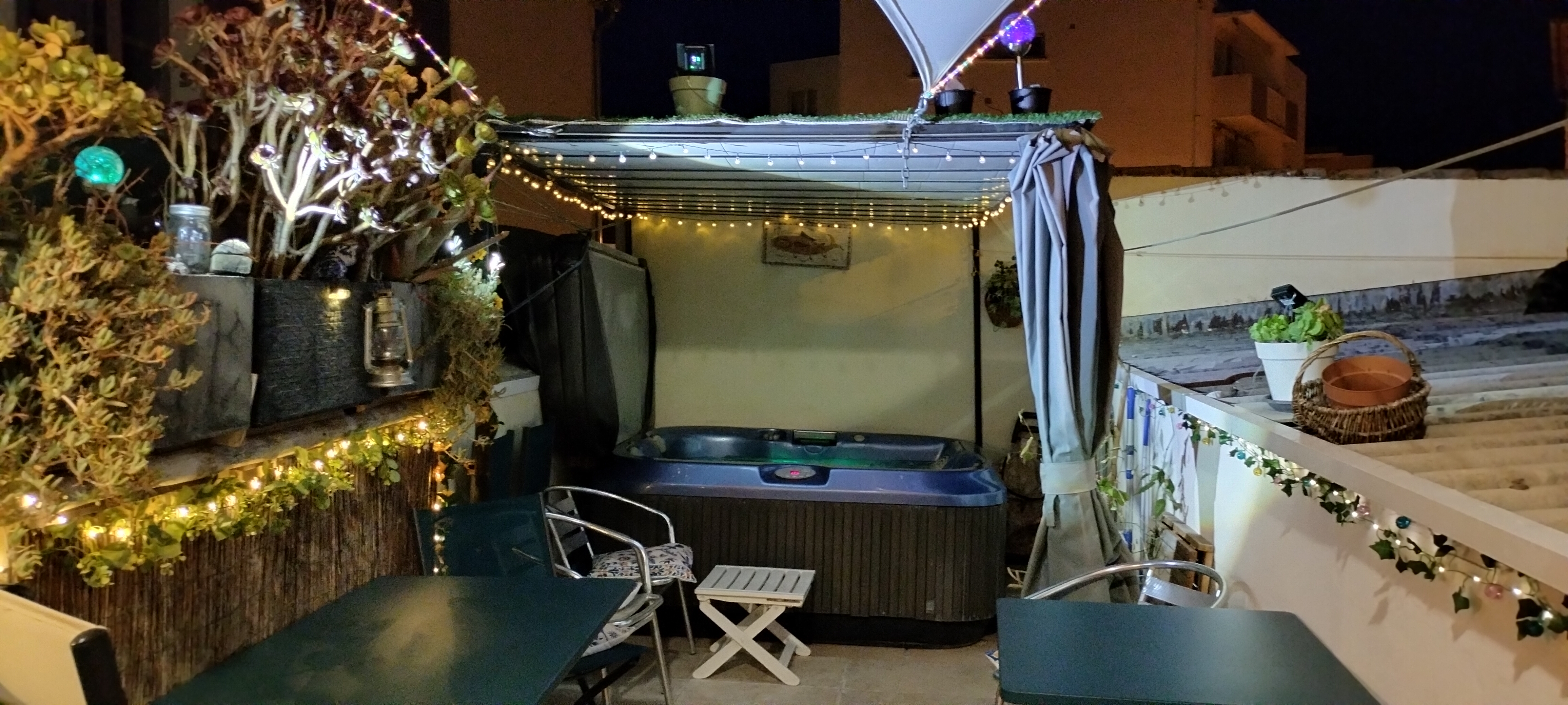 The apartment is located on the raised ground floor with a terrace where you can enjoy your meals and then relax in the jacuzzi and enjoy the solar shower.