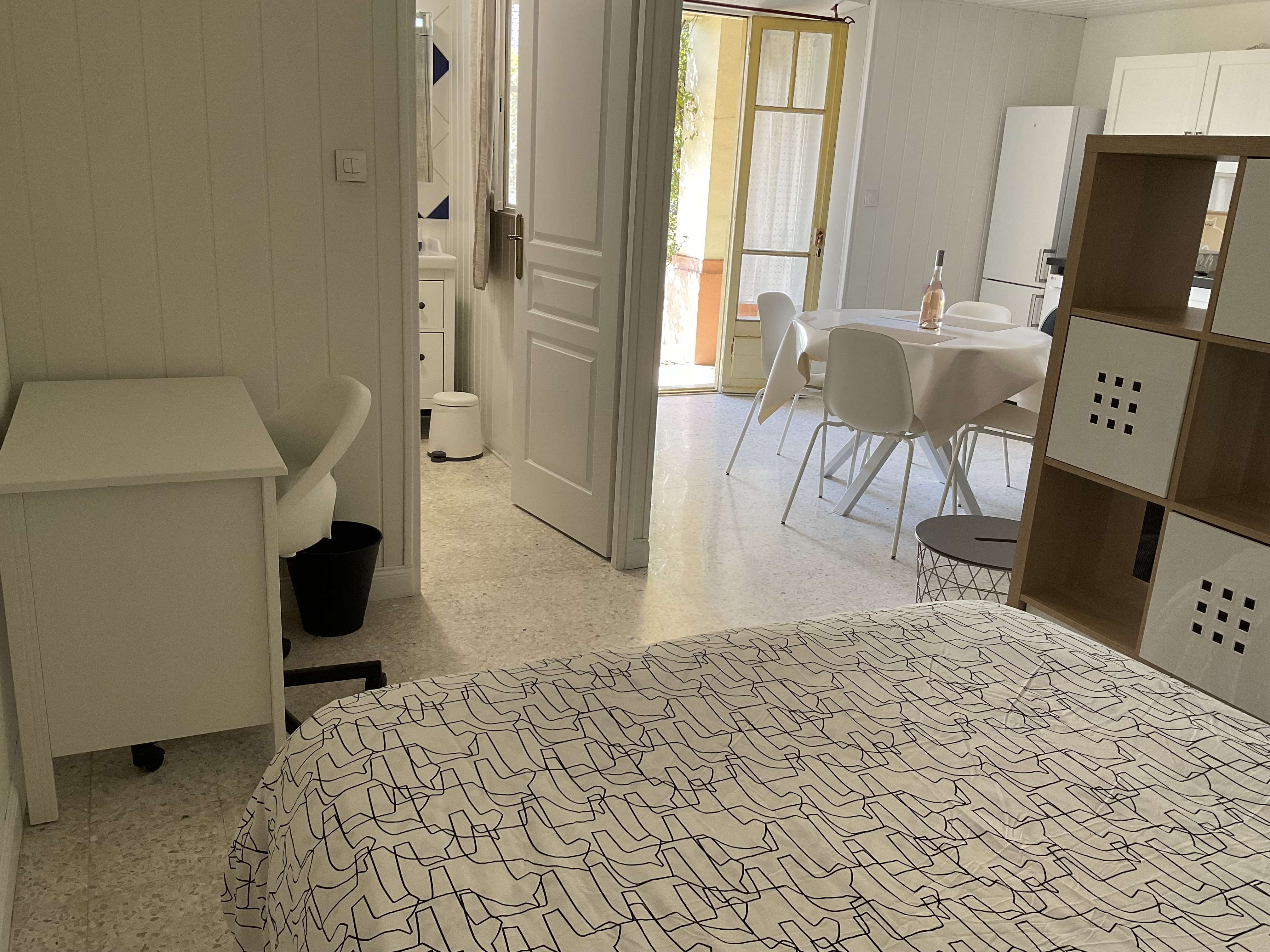 In one of the most beautiful avenues of the city centre of Hyères, flat named "L'ORANGER" of 34 m2, entirely renovated, all comfort, located on the garden level of a house of the 30s classified "remarkable building" and occupied by the owners.