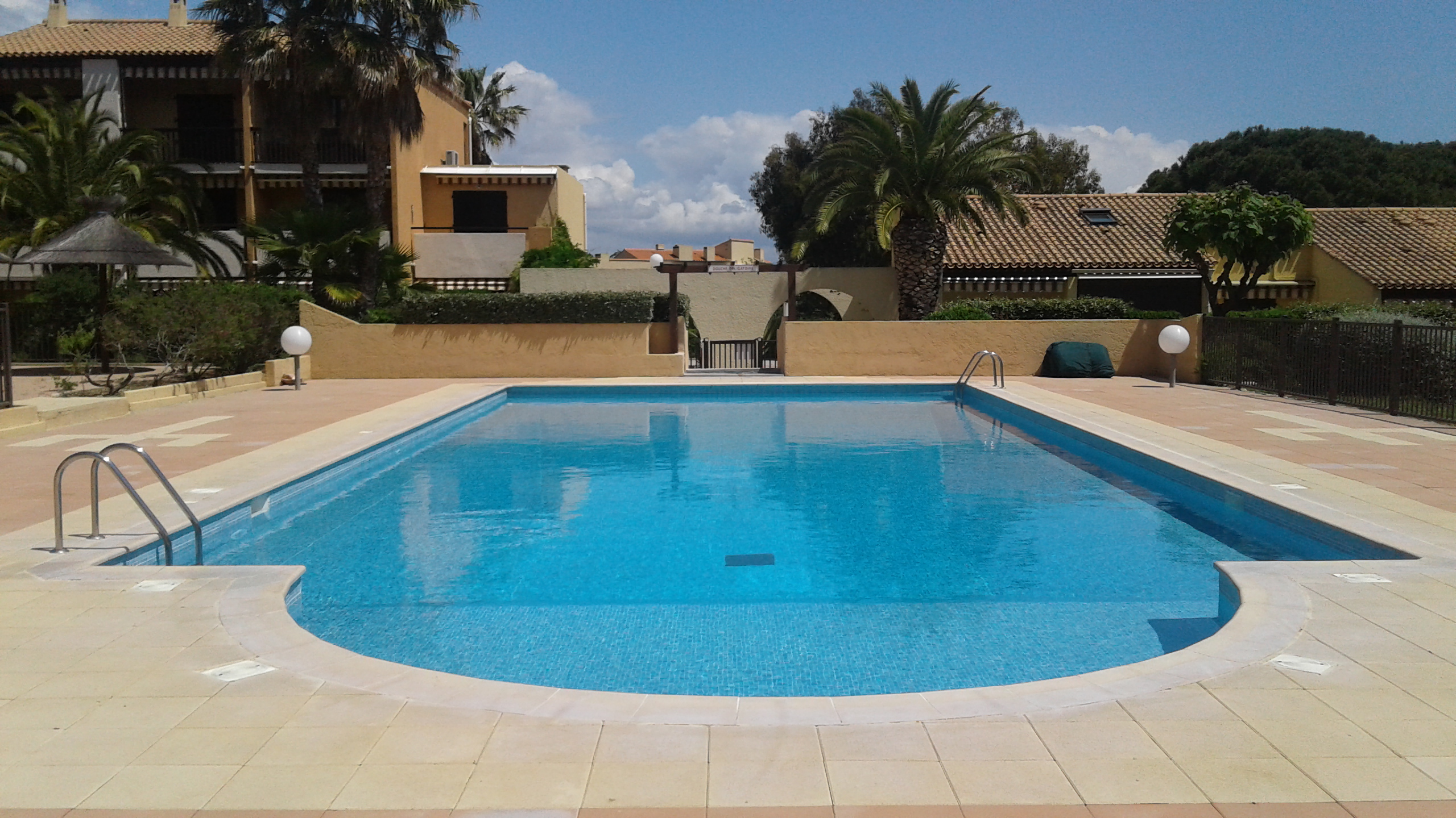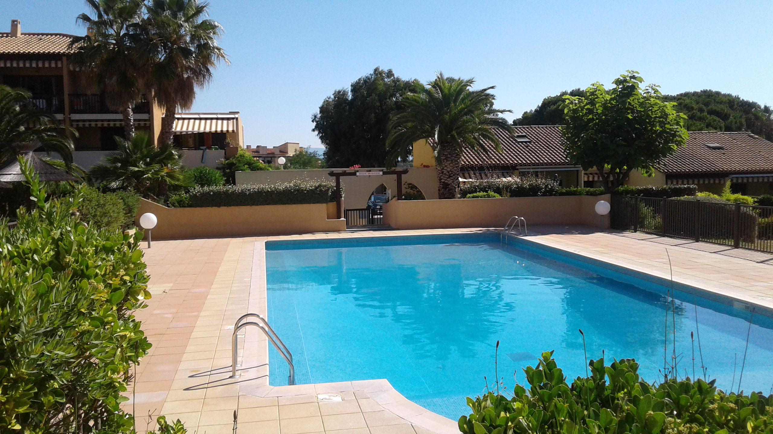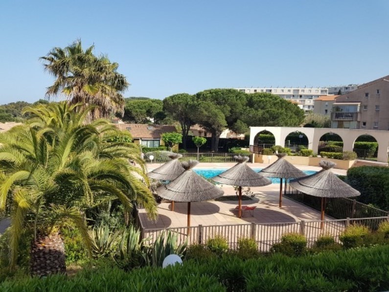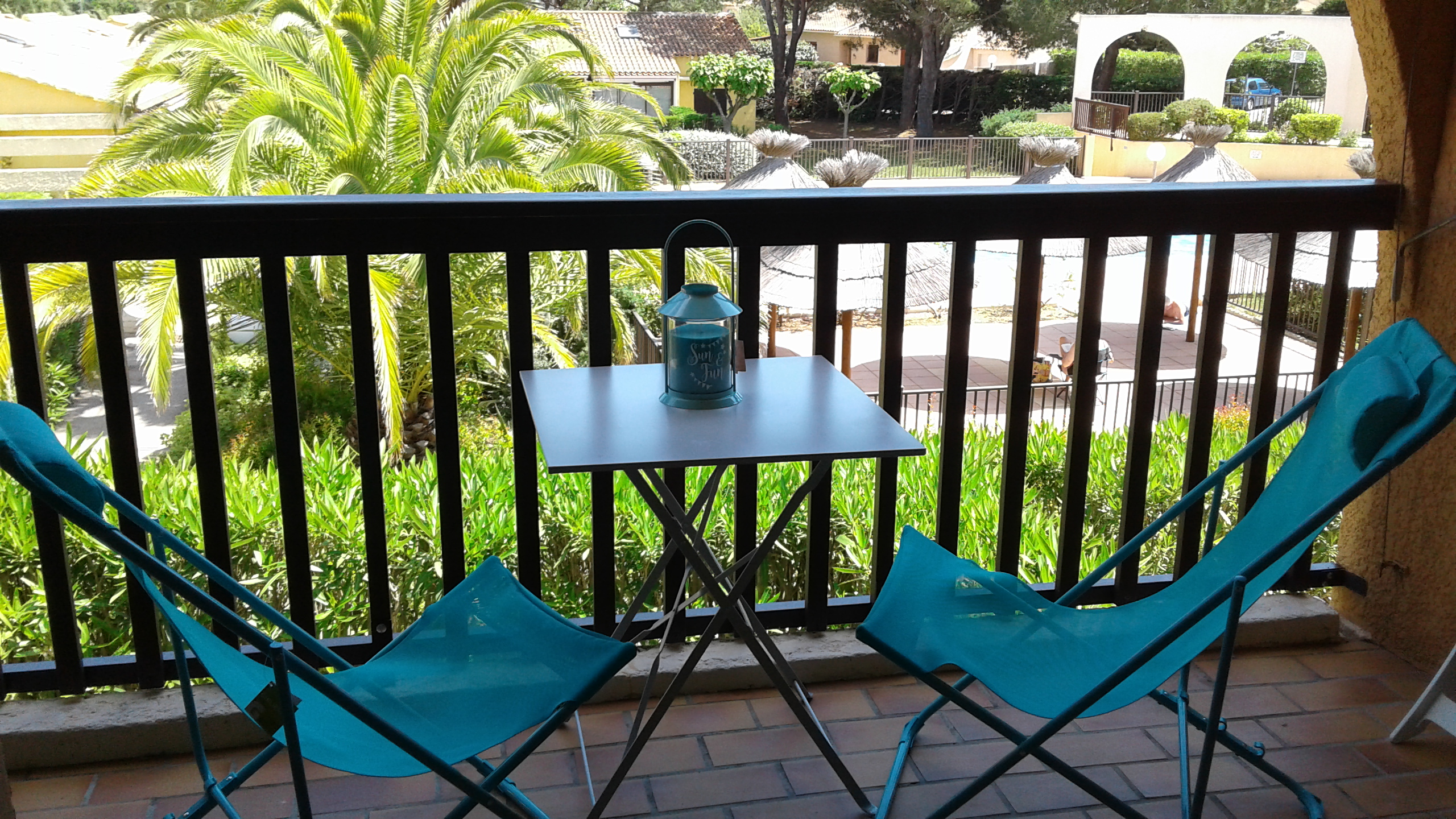 Studio cabin of 20m2 for 2 persons on the 1st floor (without elevator) of a residence with swimming pool at the end of the Presqu'île de Giens with balcony and swimming pool (open from June to September)