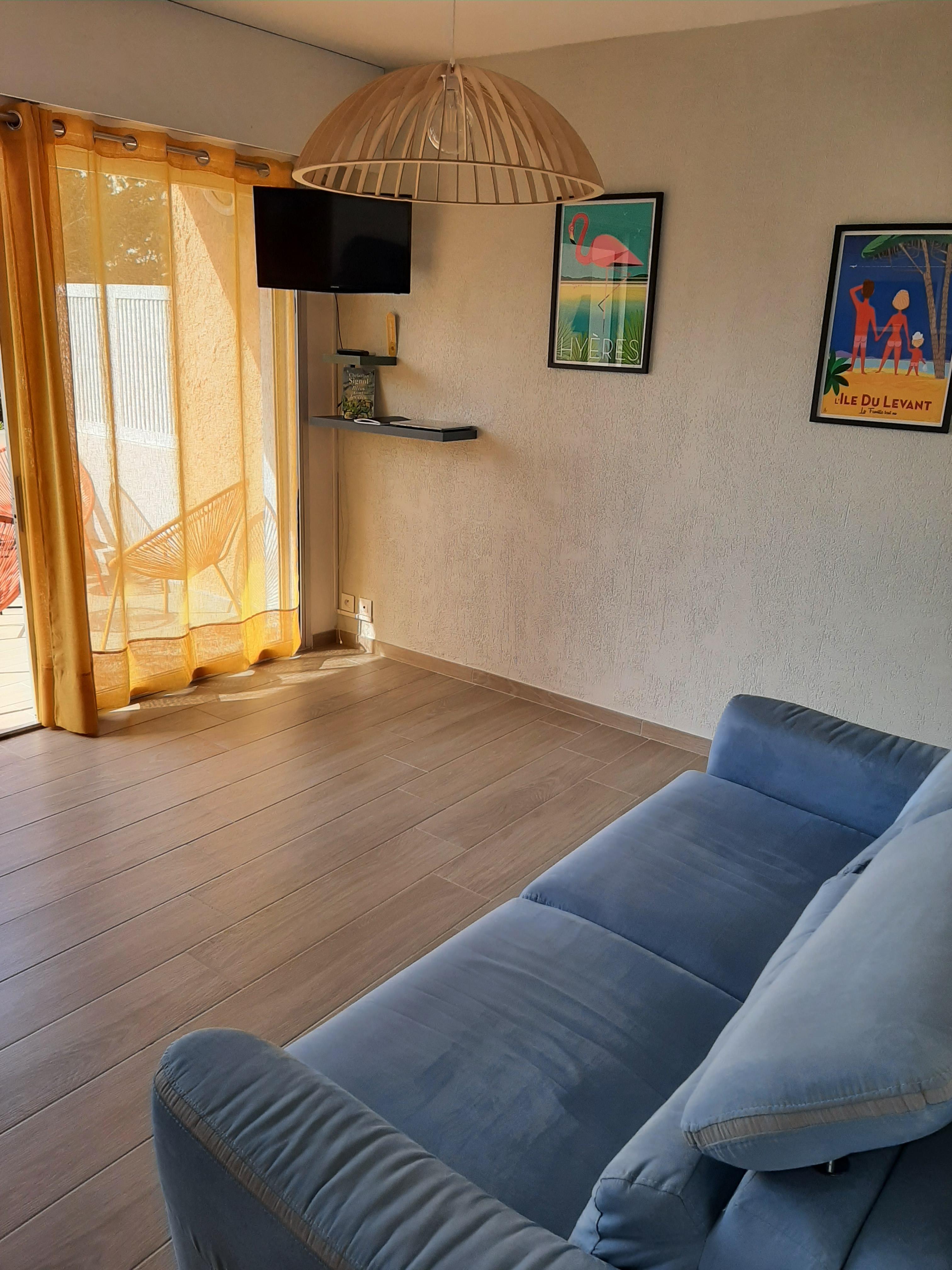 Come discover and enjoy the warm sand of the Hyères salt marshes in a pleasant, comfortable and sunny apartment, sea view with beach in the residence.