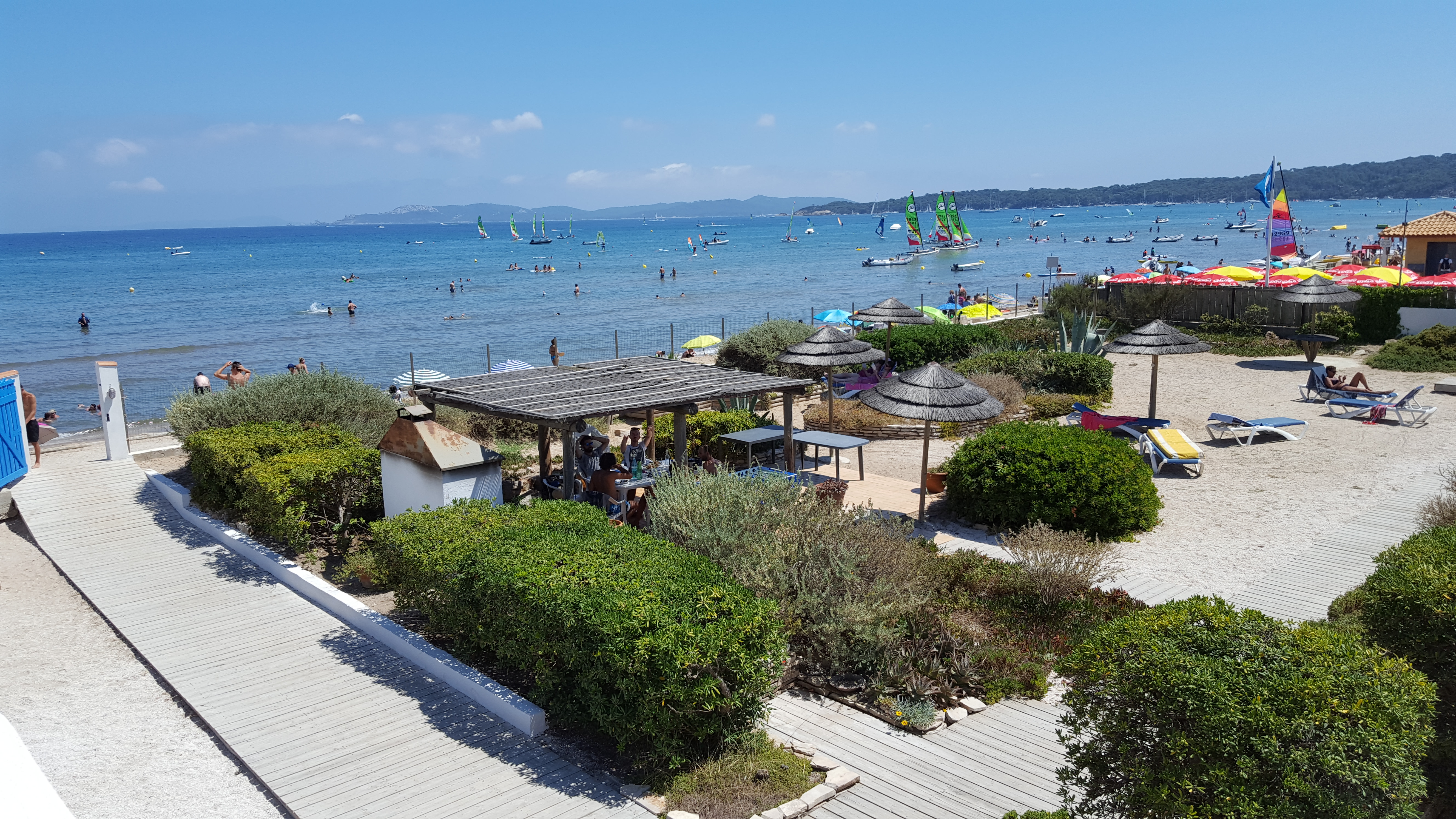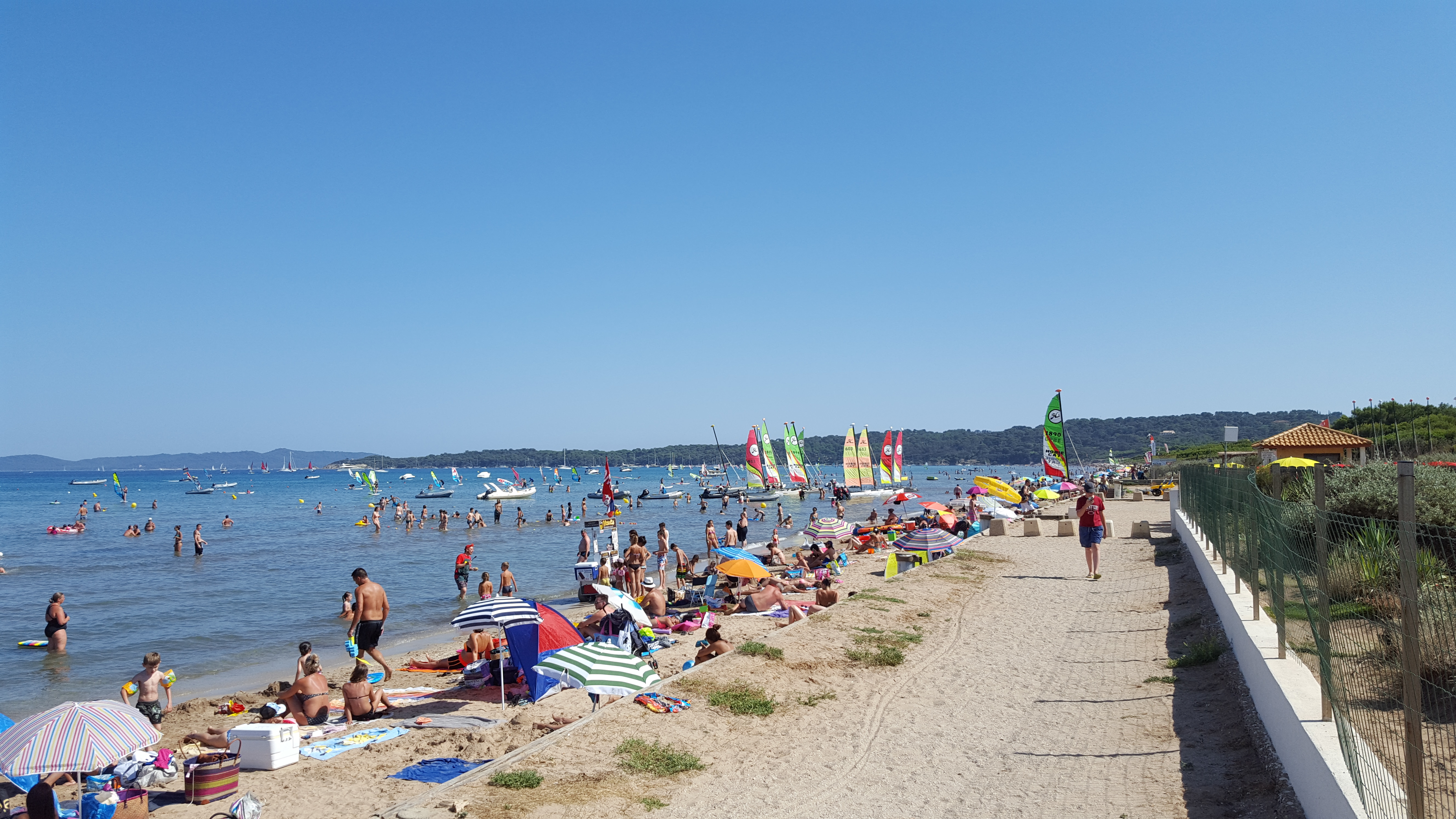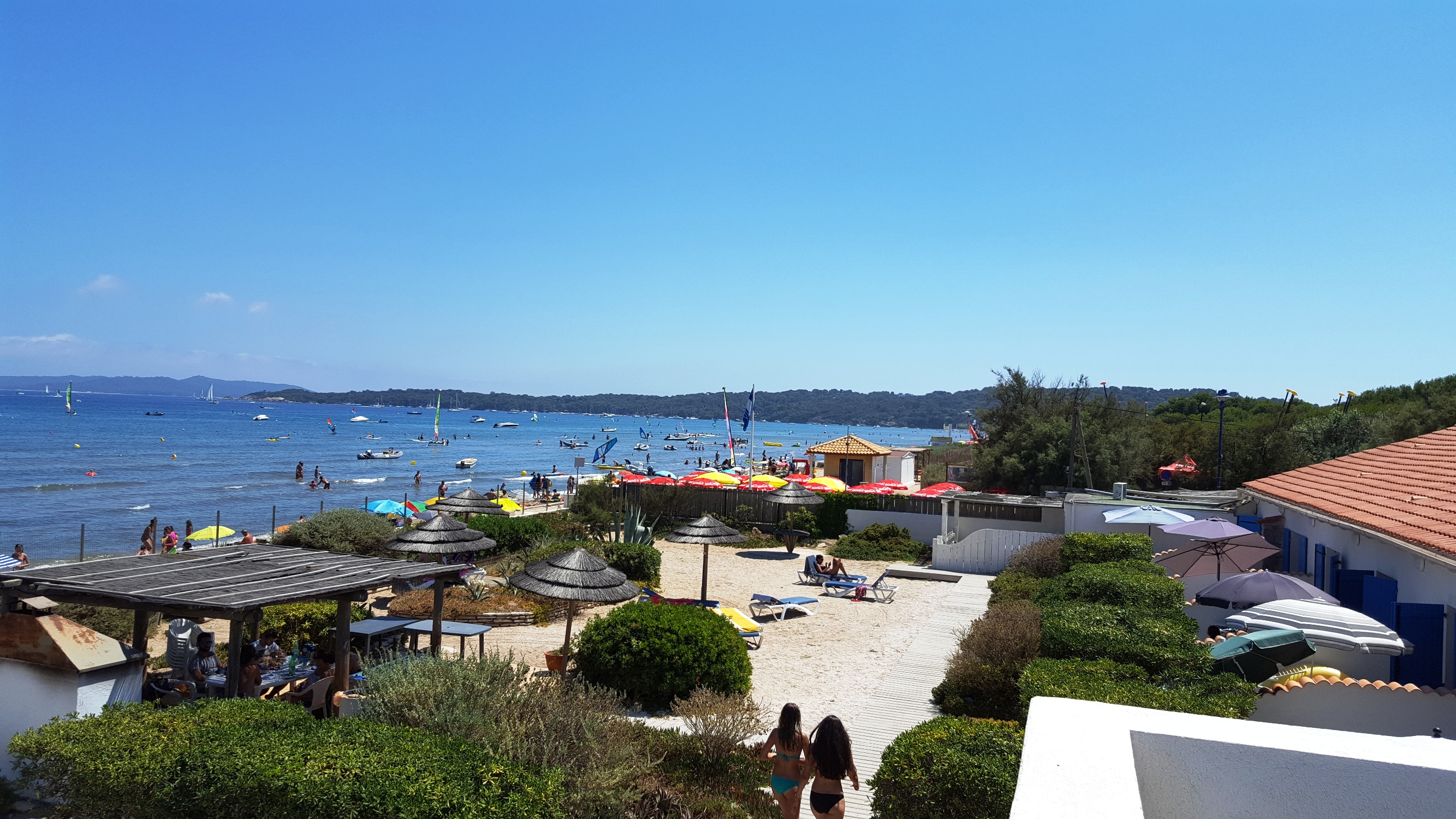Apartment of 22 m2 on the ground floor, feet in the water, facing the beach with direct access to the sea. Holiday residence facing the Golden Islands, Porquerolles & Port Cros.