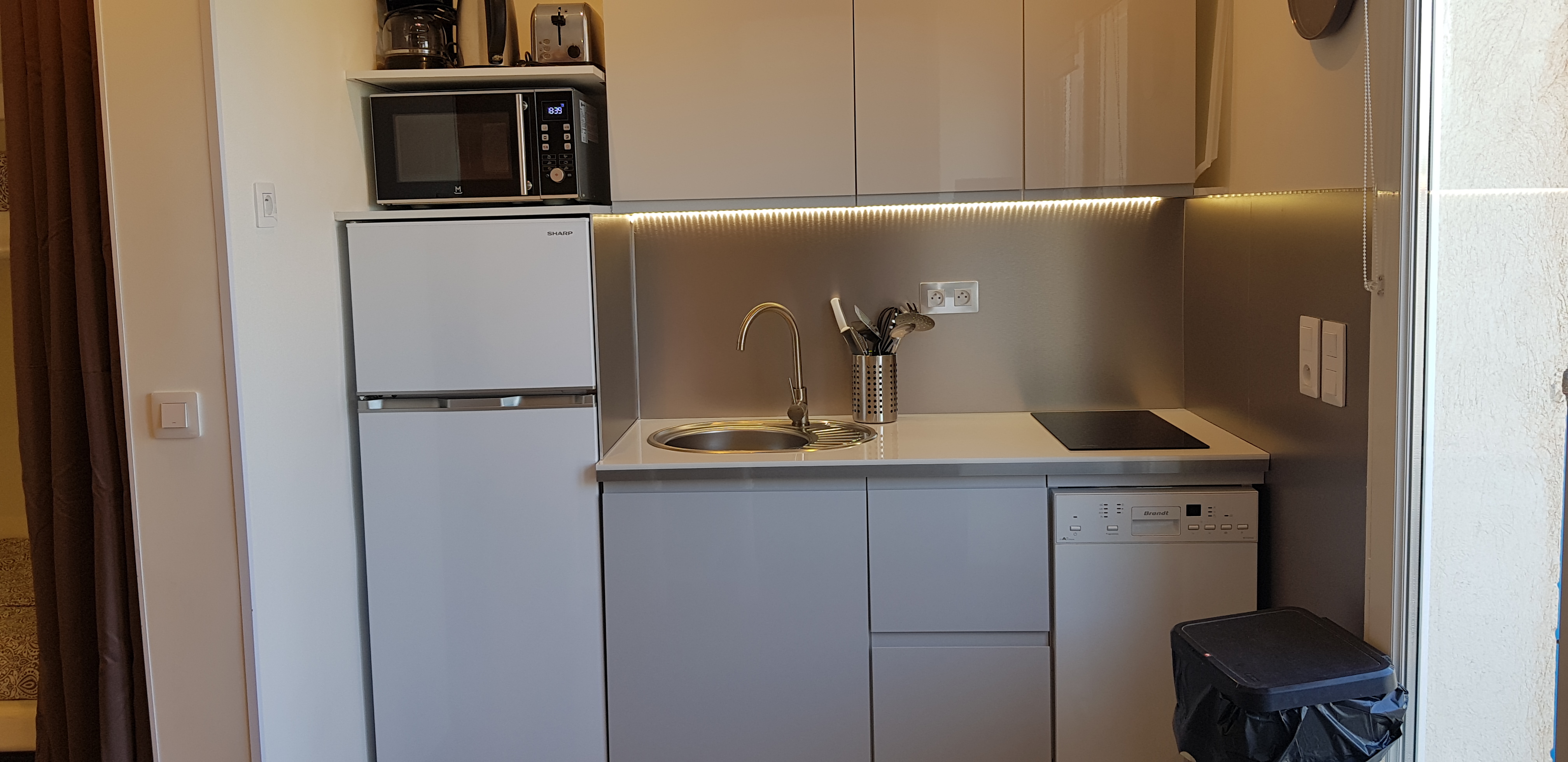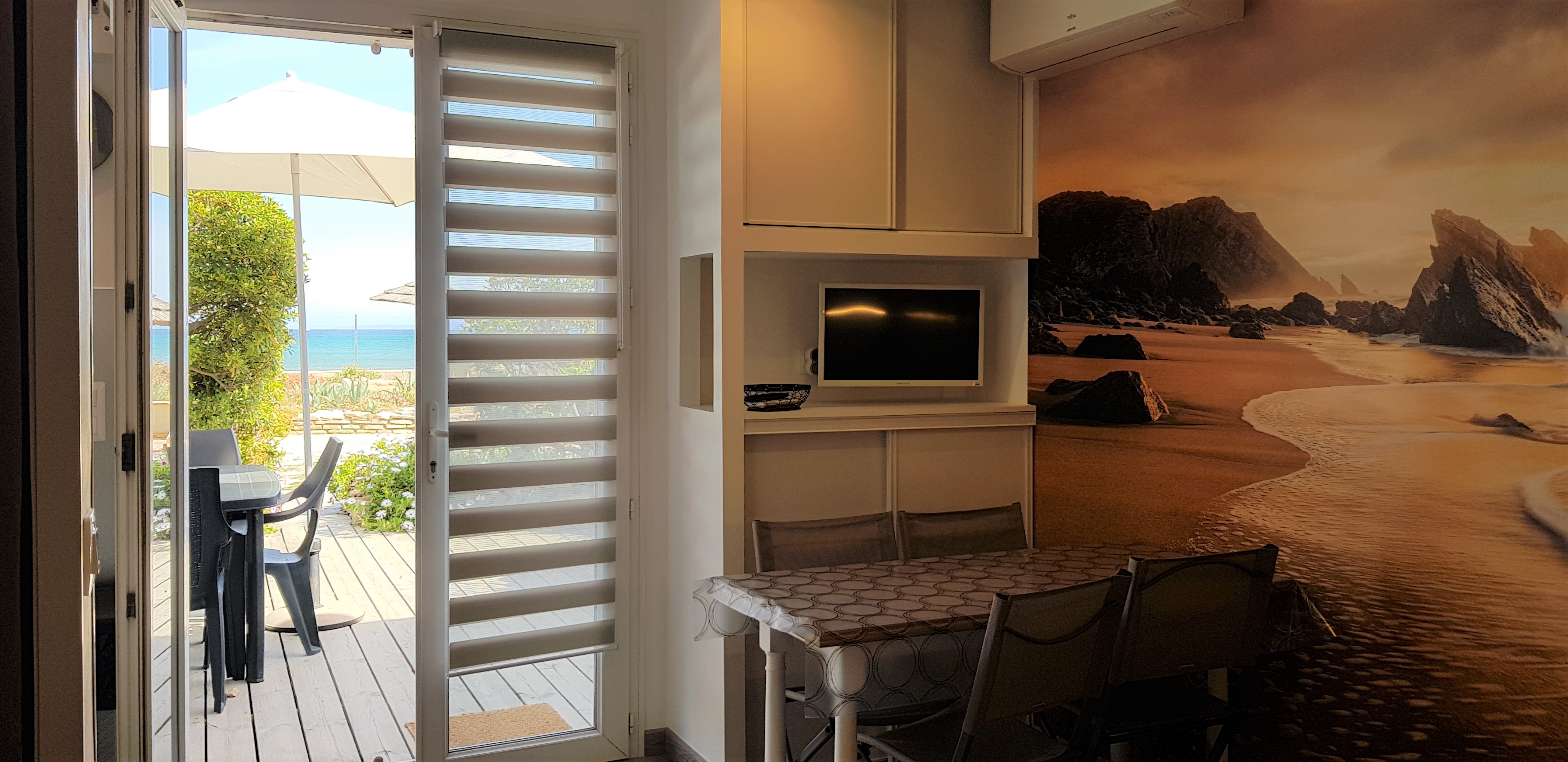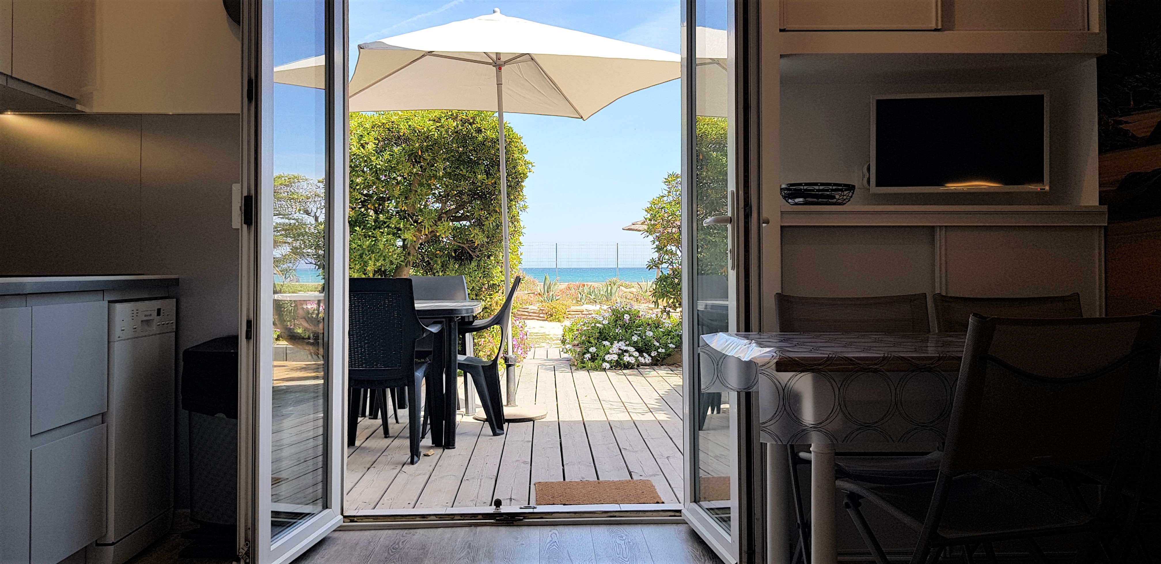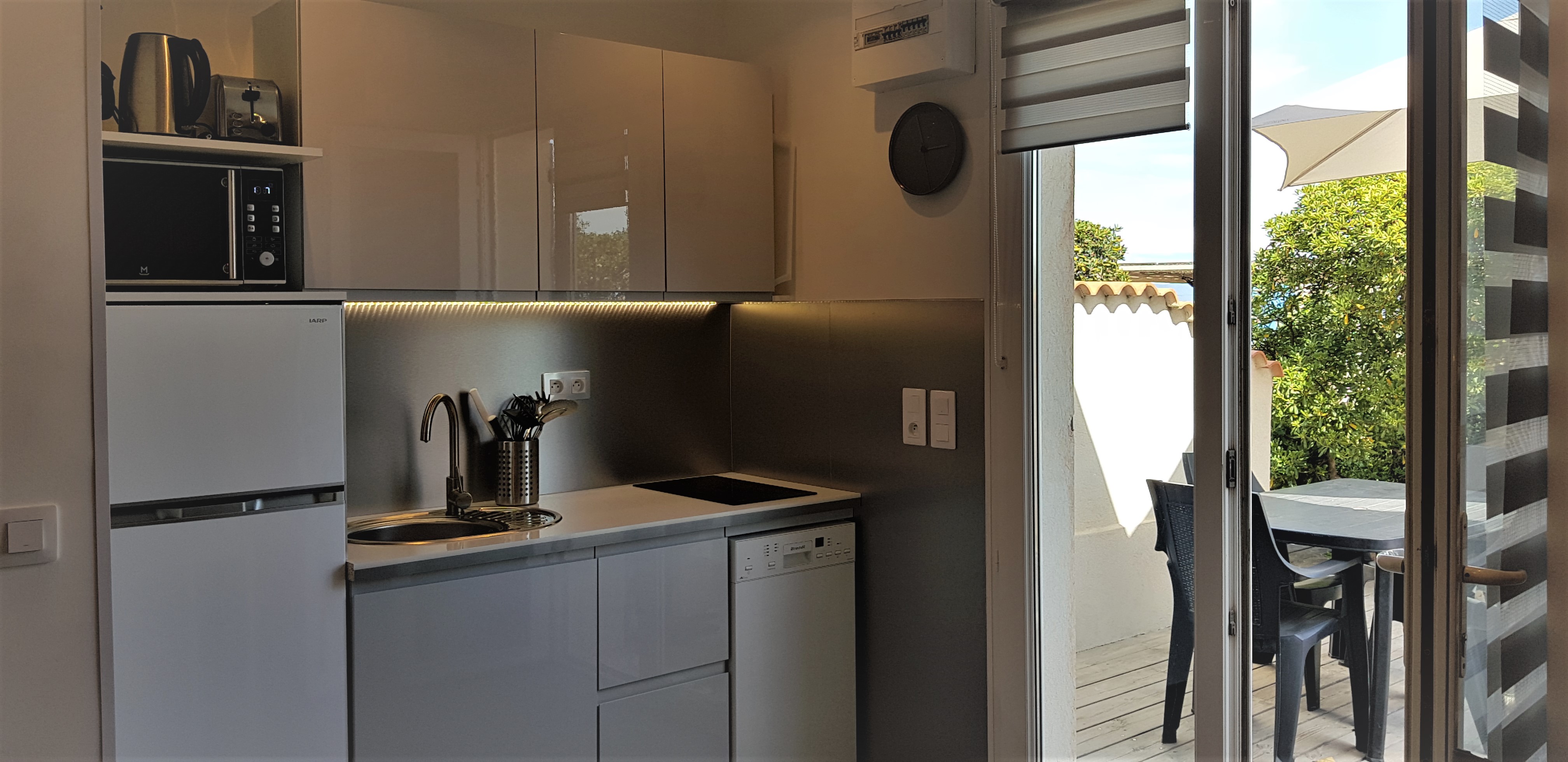 Apartment of 22 m2 on the ground floor, feet in the water, facing the beach with direct access to the sea. Holiday residence facing the Golden Islands, Porquerolles & Port Cros.