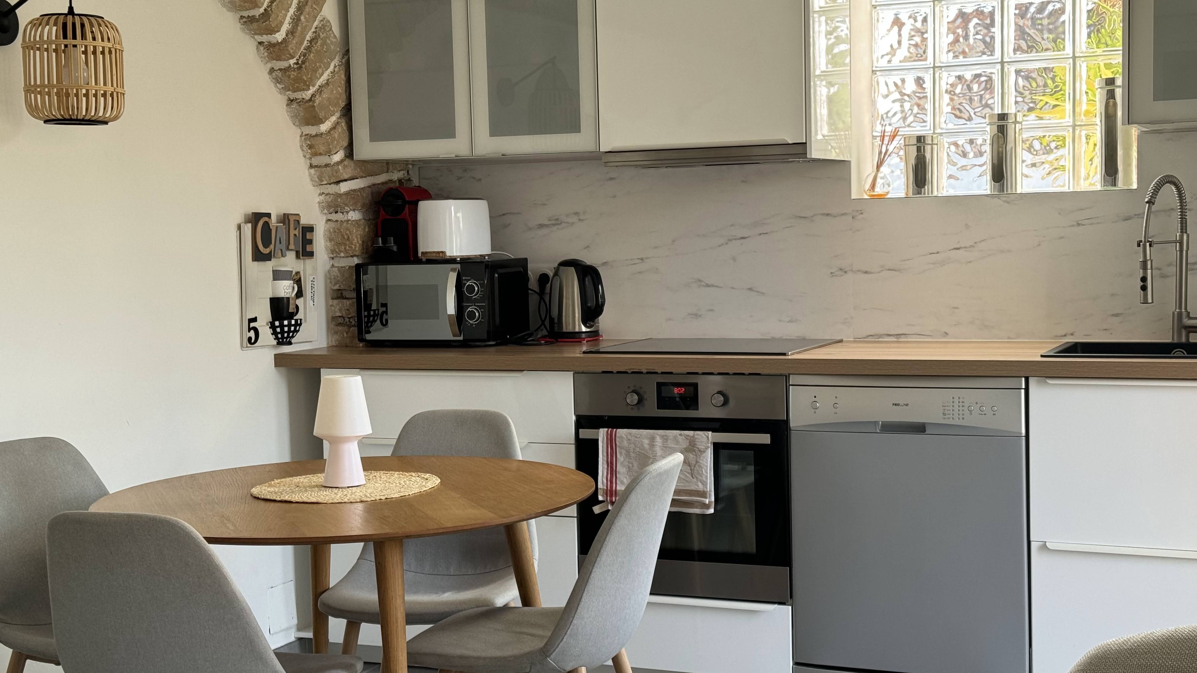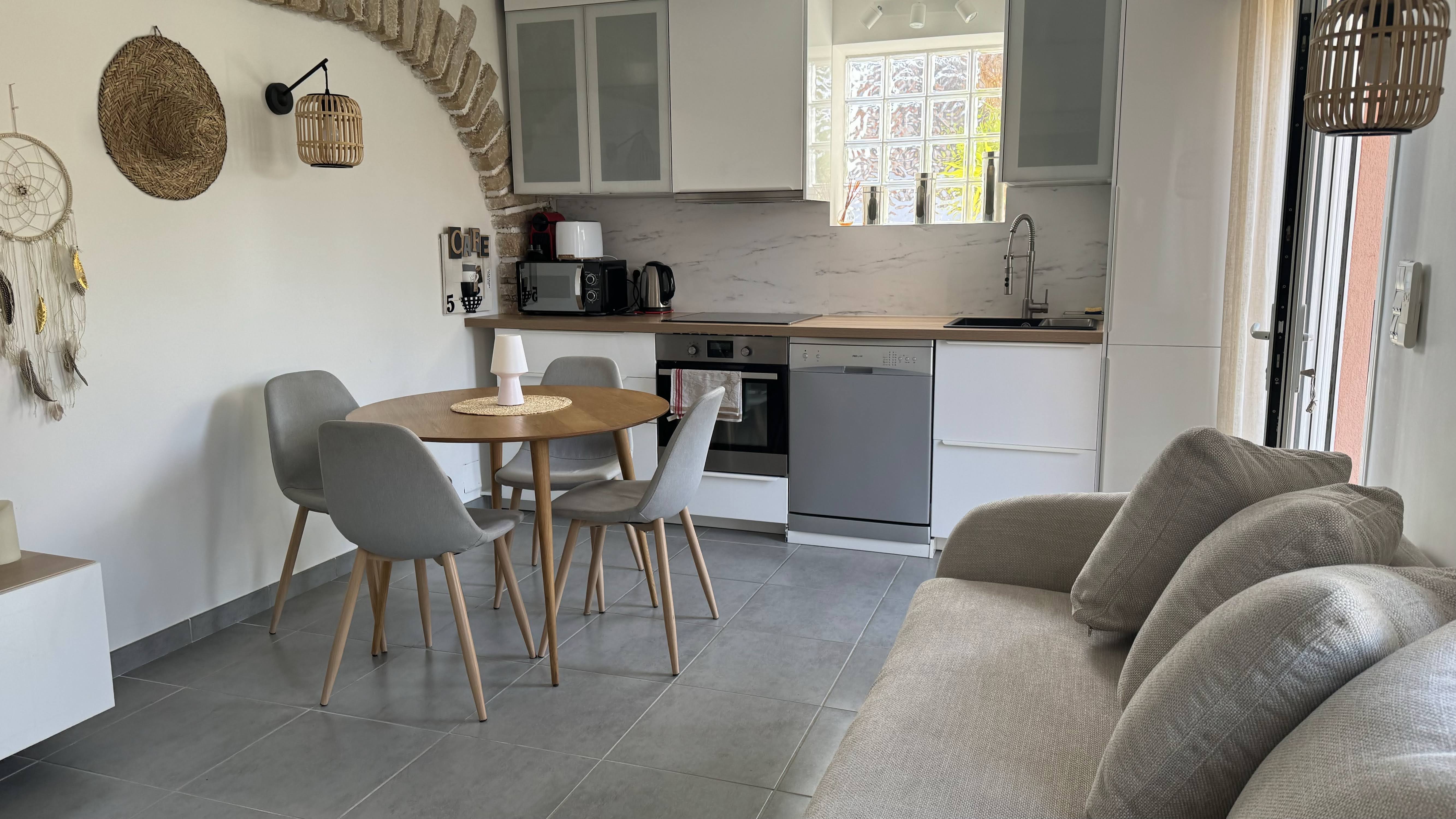 A fitted and equipped kitchen ?