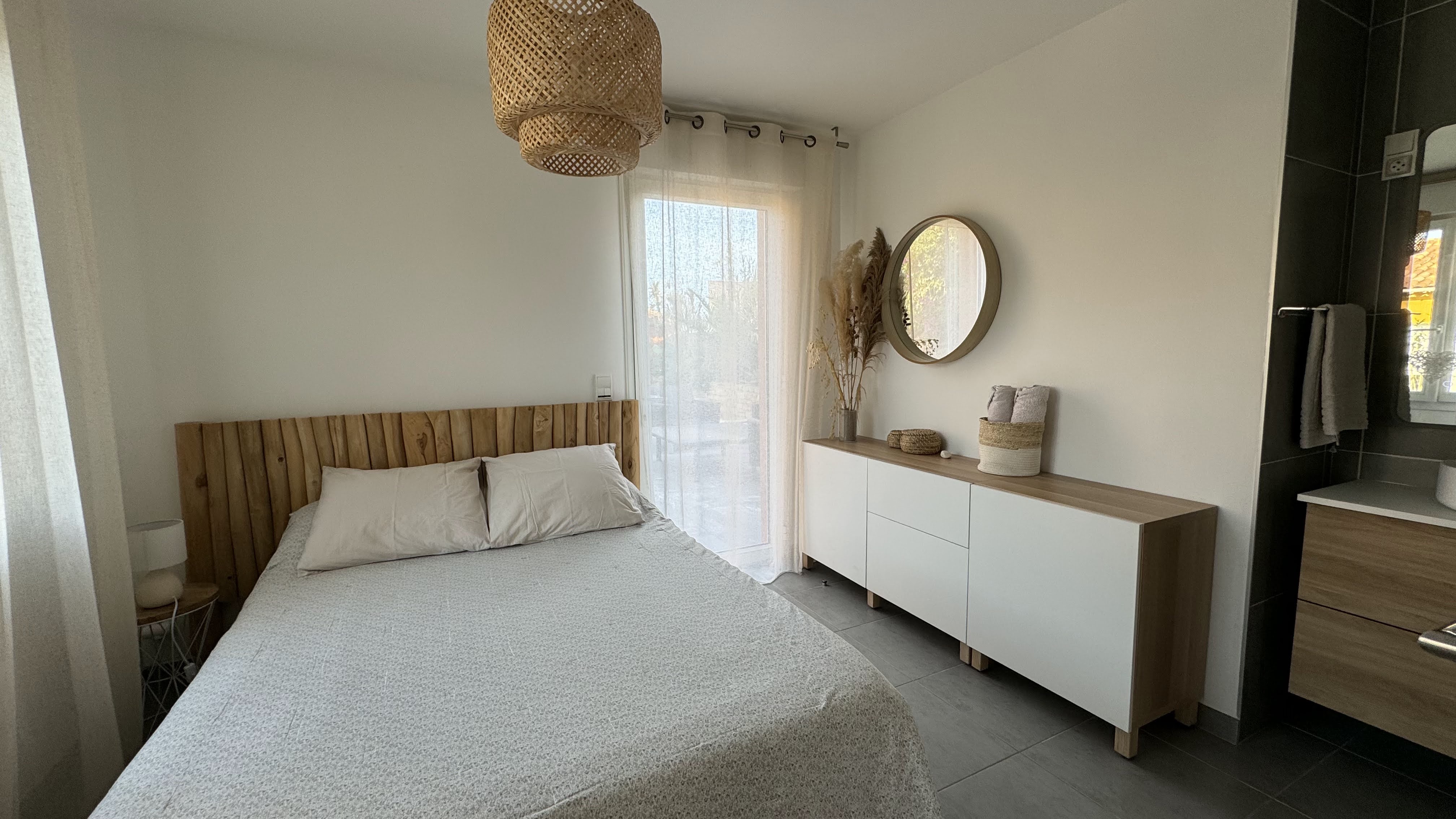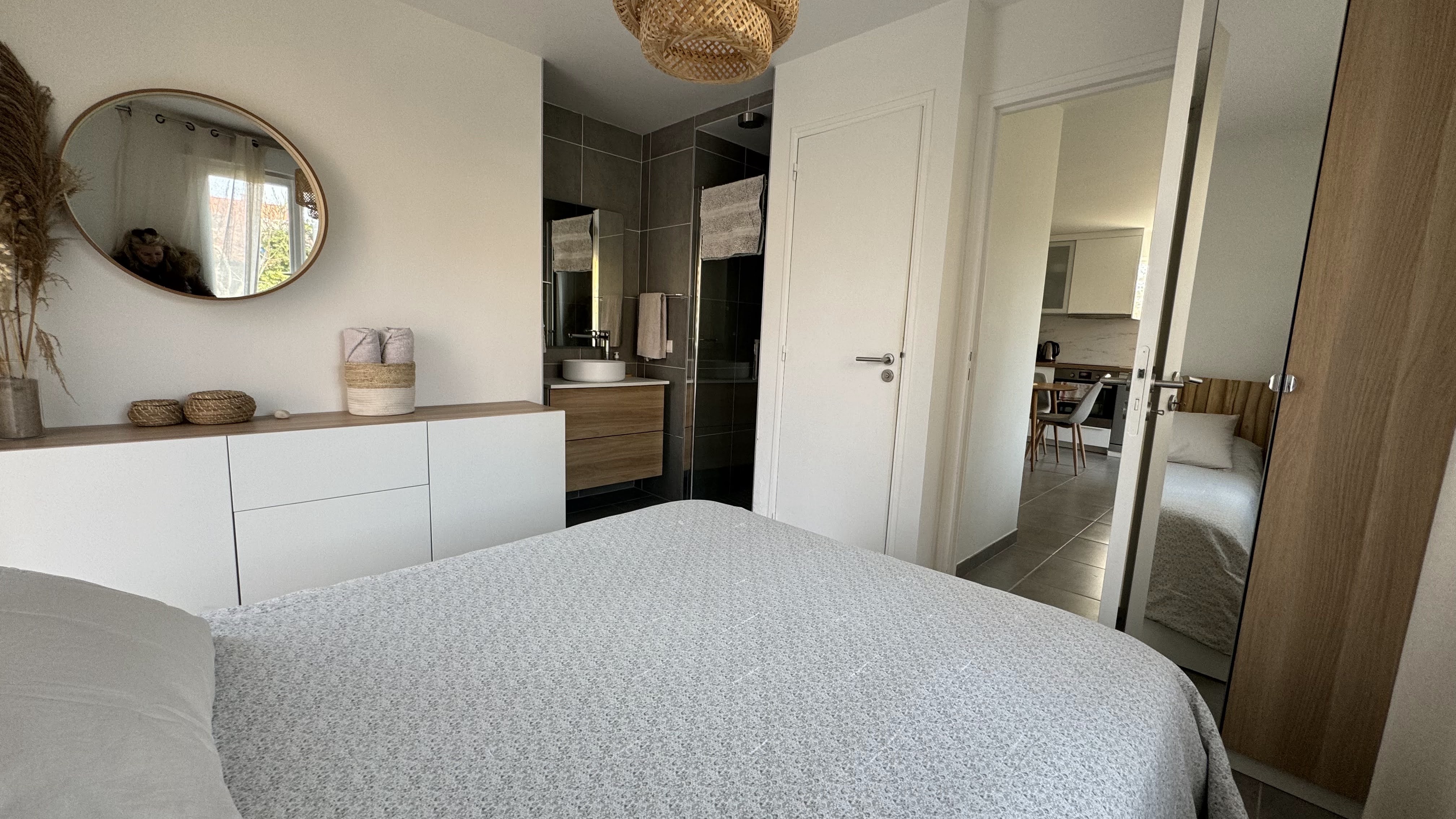 A separate bedroom with integrated bathroom (walk-in shower and sink) ?