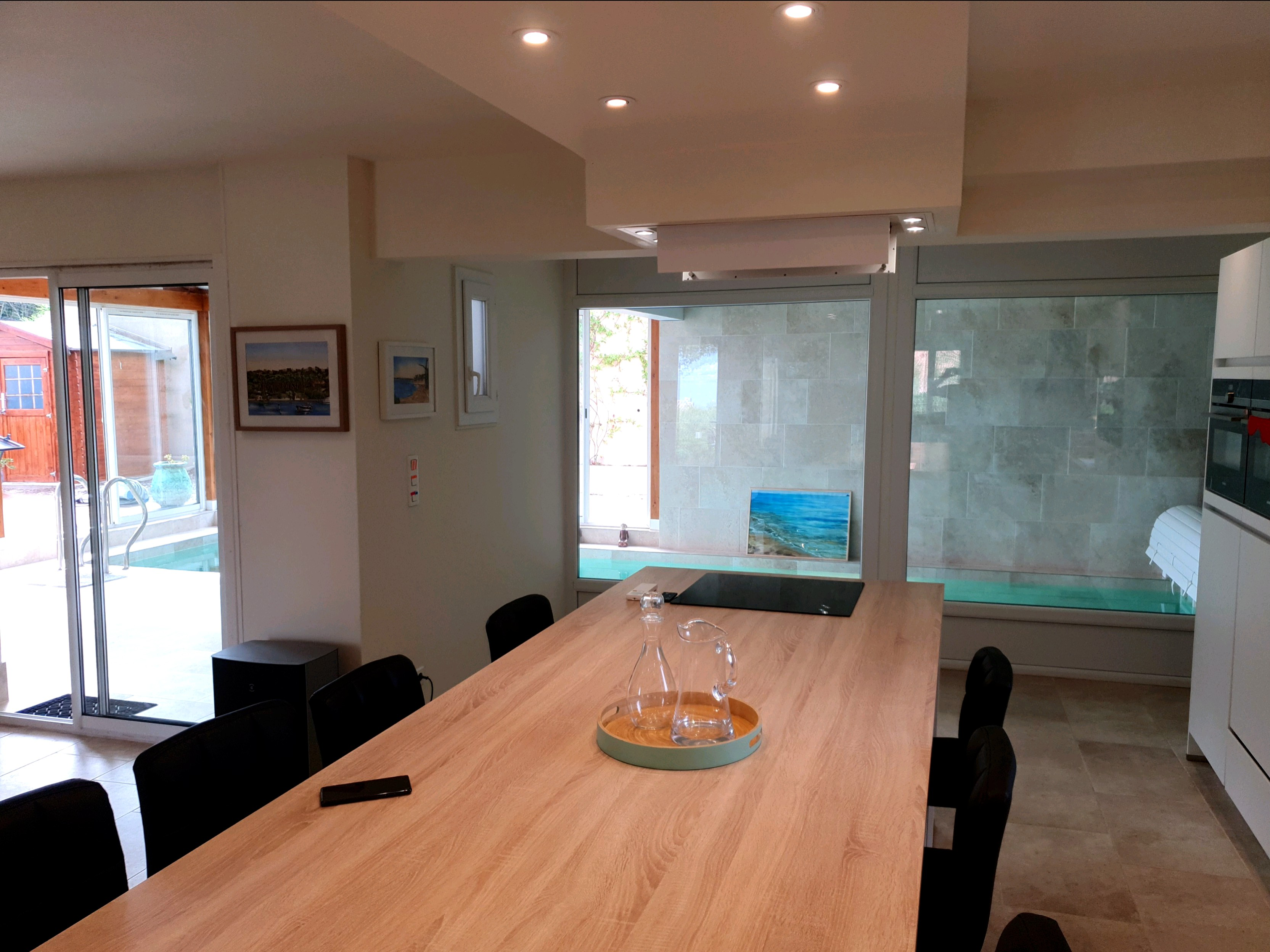 LIVING ROOM MERGED WITH VERANDA containing an interior swimming lane