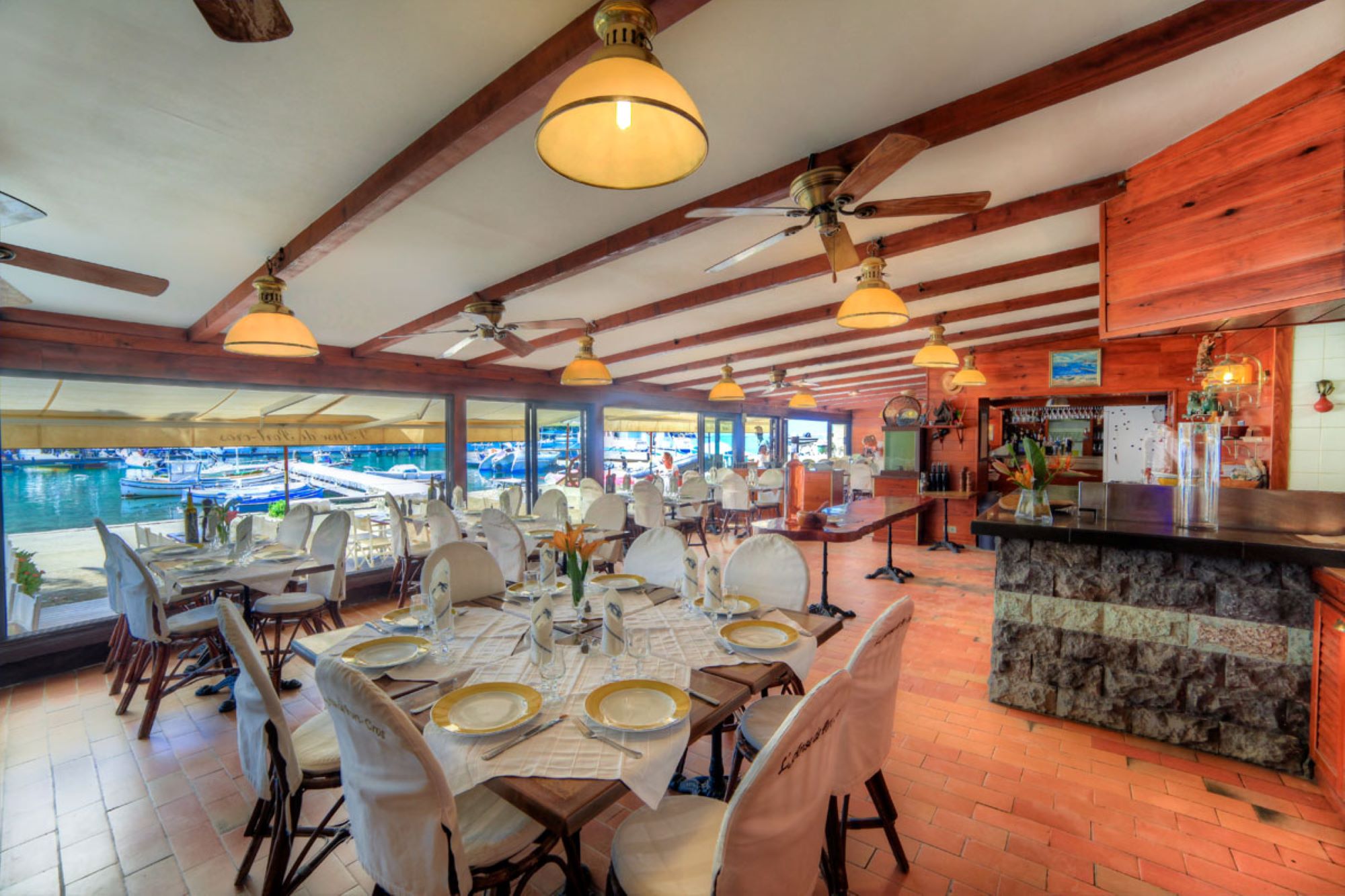 Bouillabaisse, lobster, grilled fish. Located on the harbour, on the waterfront, in Port-Cros national park. Indoor dining room for groups.