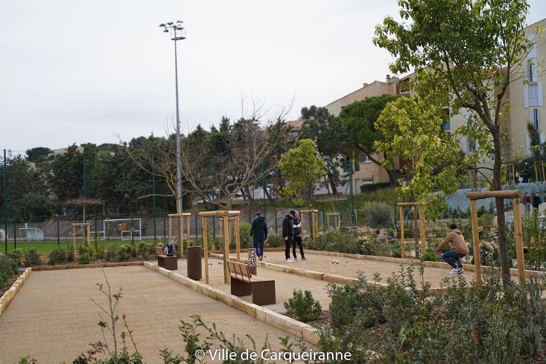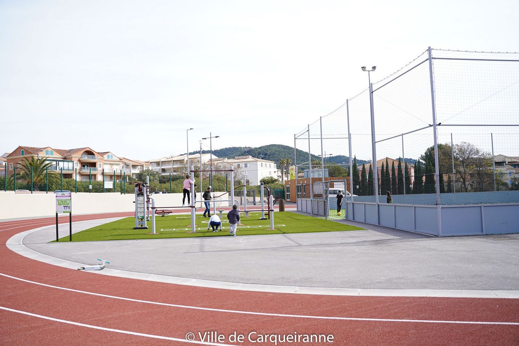 Un'area giochi per bambini da 1 a 14 anni e uno skate park per ragazzi dagli 8 anni in su, 12 campi da gioco provenzali, una fontana a secco e un'area di fitness urbano... completano il complesso sportivo adiacente.