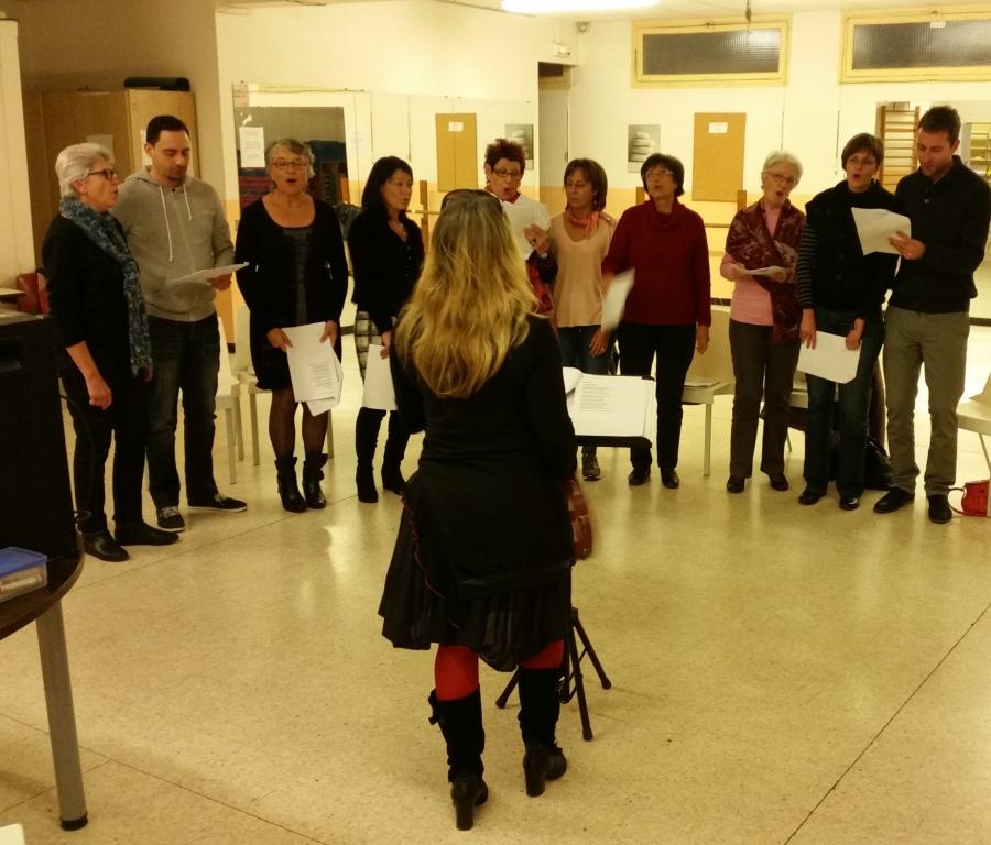 Per il piacere di cantare in gruppo, condividendo un repertorio di canzoni francesi del passato e del presente, su nastri strumentali. Con Dominique Duchambon, insegnante di canto, terapista vocale e formatrice professionale.