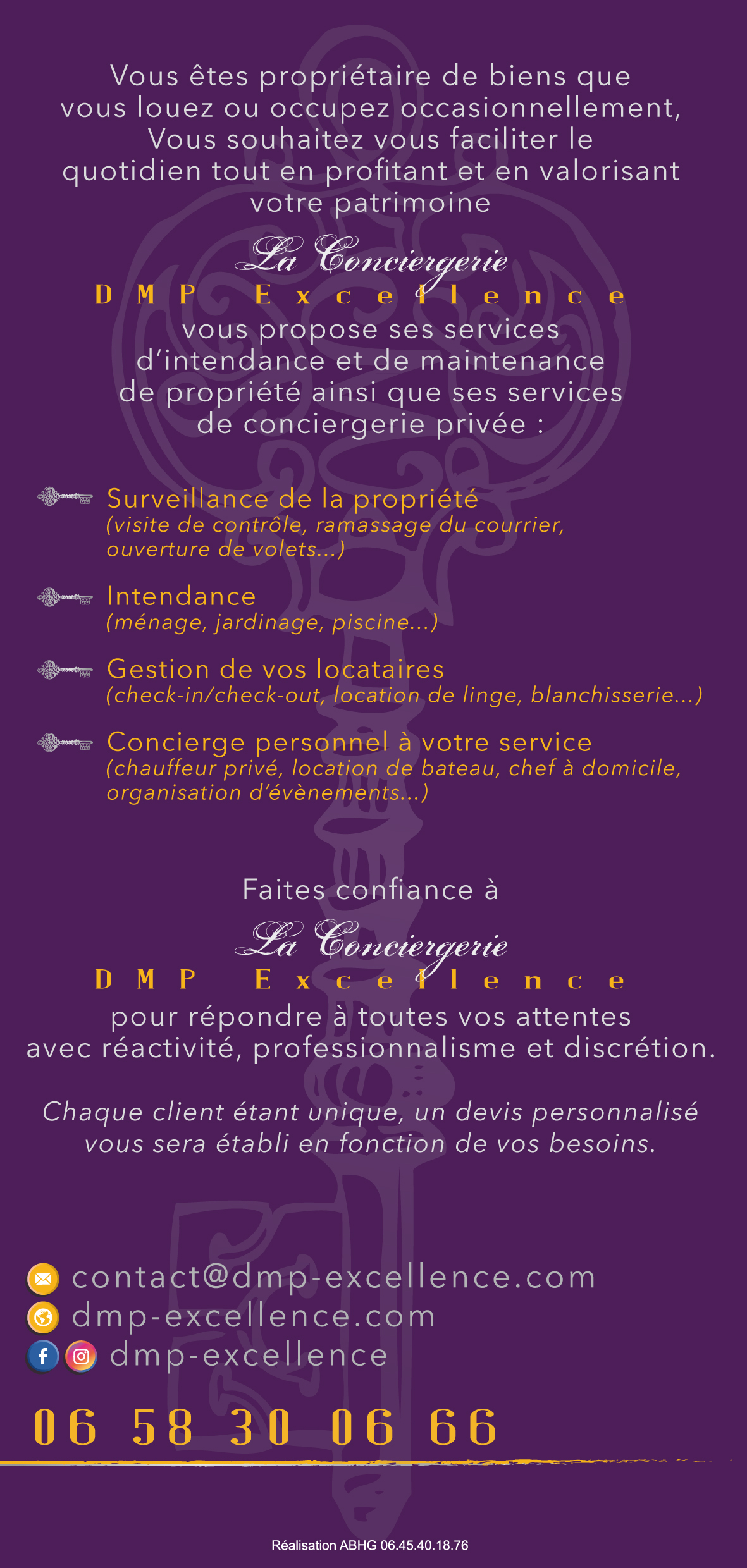 La Conciergerie DMP Excellence offre servizi di gestione e manutenzione degli immobili e servizi di portineria privata:
