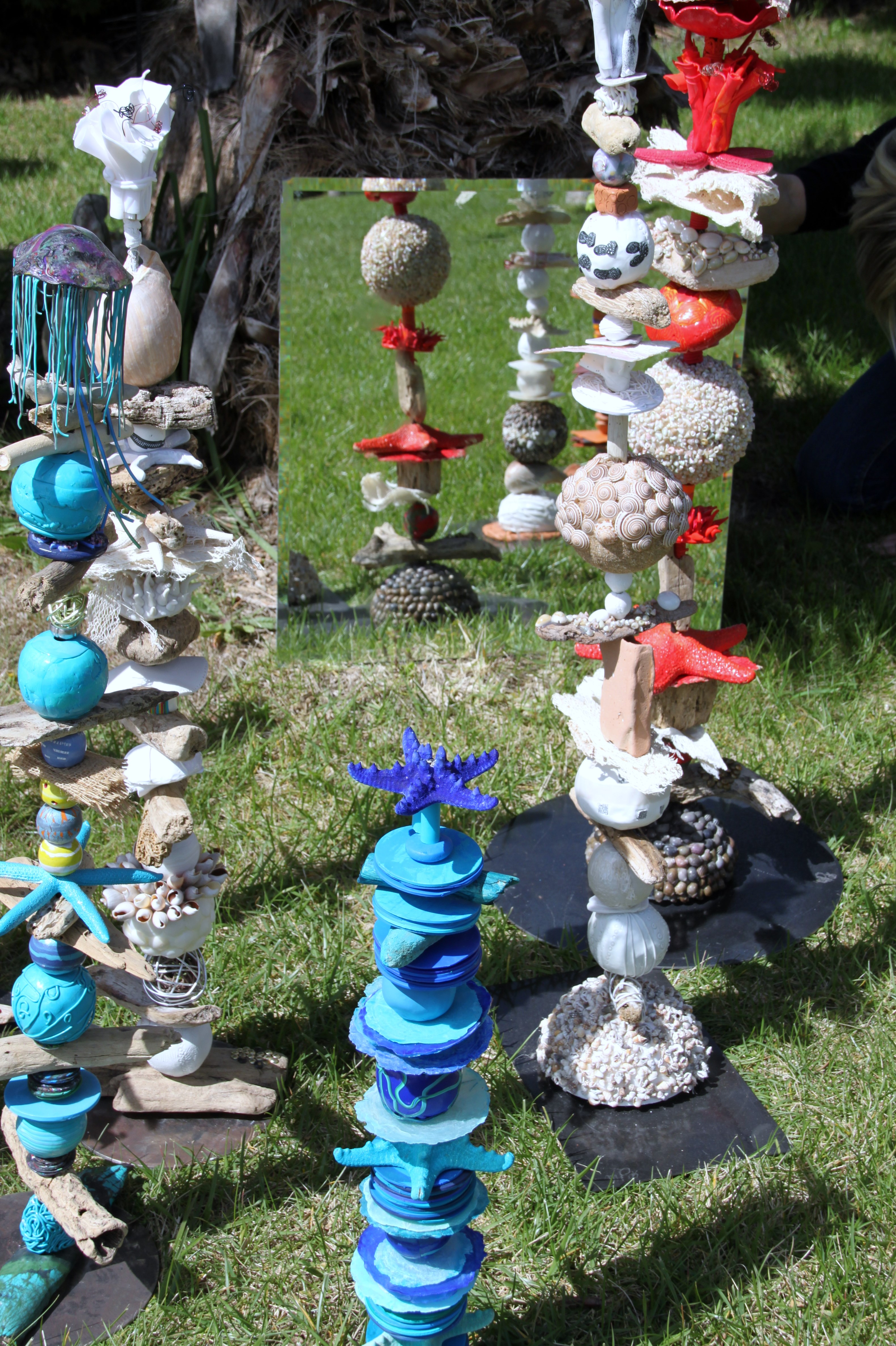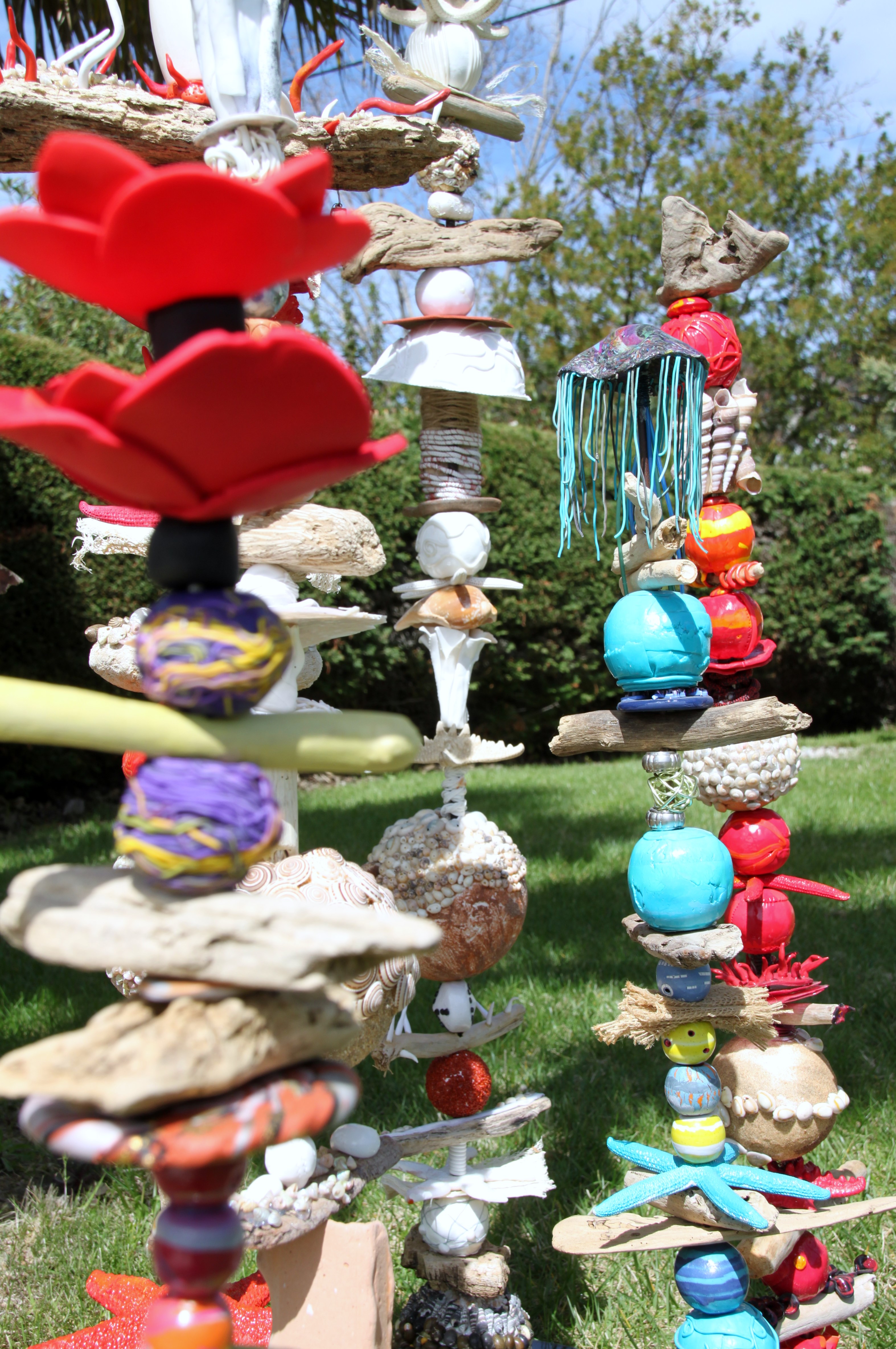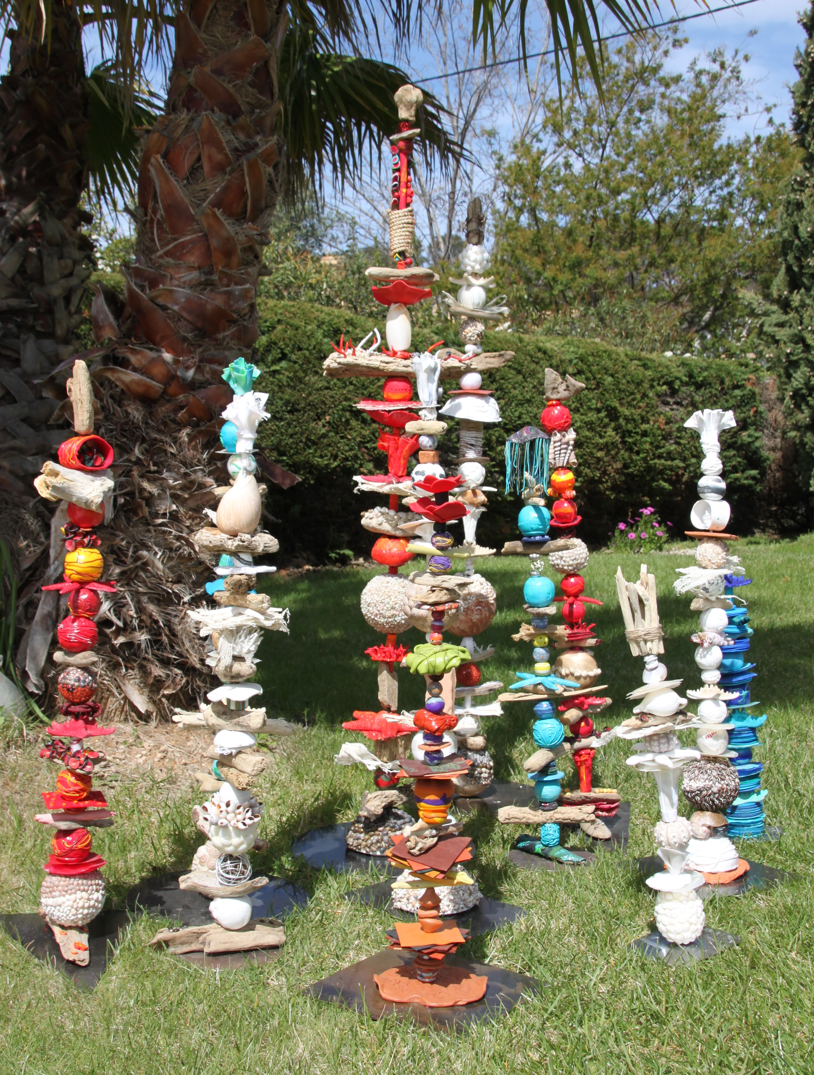 I totem hanno dimensioni che vanno da 30 cm a 2 m20, sono disponibili in una varietà di colori e sono sempre pezzi unici.