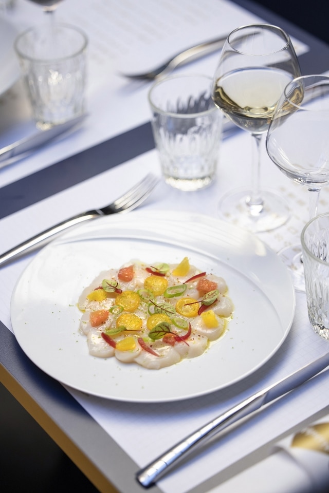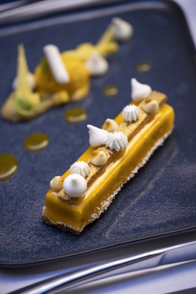 Filetto di orata, tabbouleh di cavolfiore, zucchine e melone, chimichurri