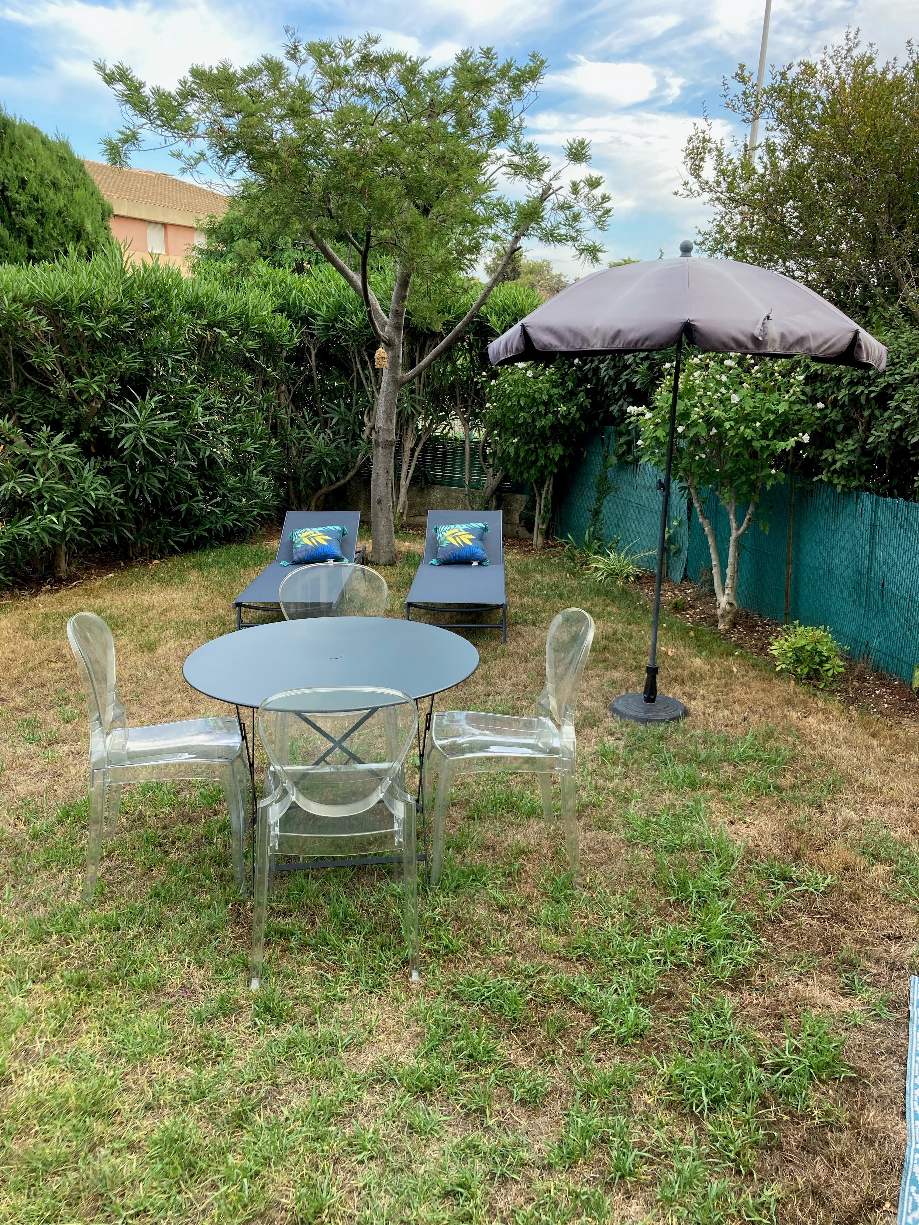 Appartamento bilocale con giardino e piscina comune in un residence sicuro vicino al quartiere di Lônes. Spiaggia di Bonnegrâce a meno di 15 minuti a piedi.