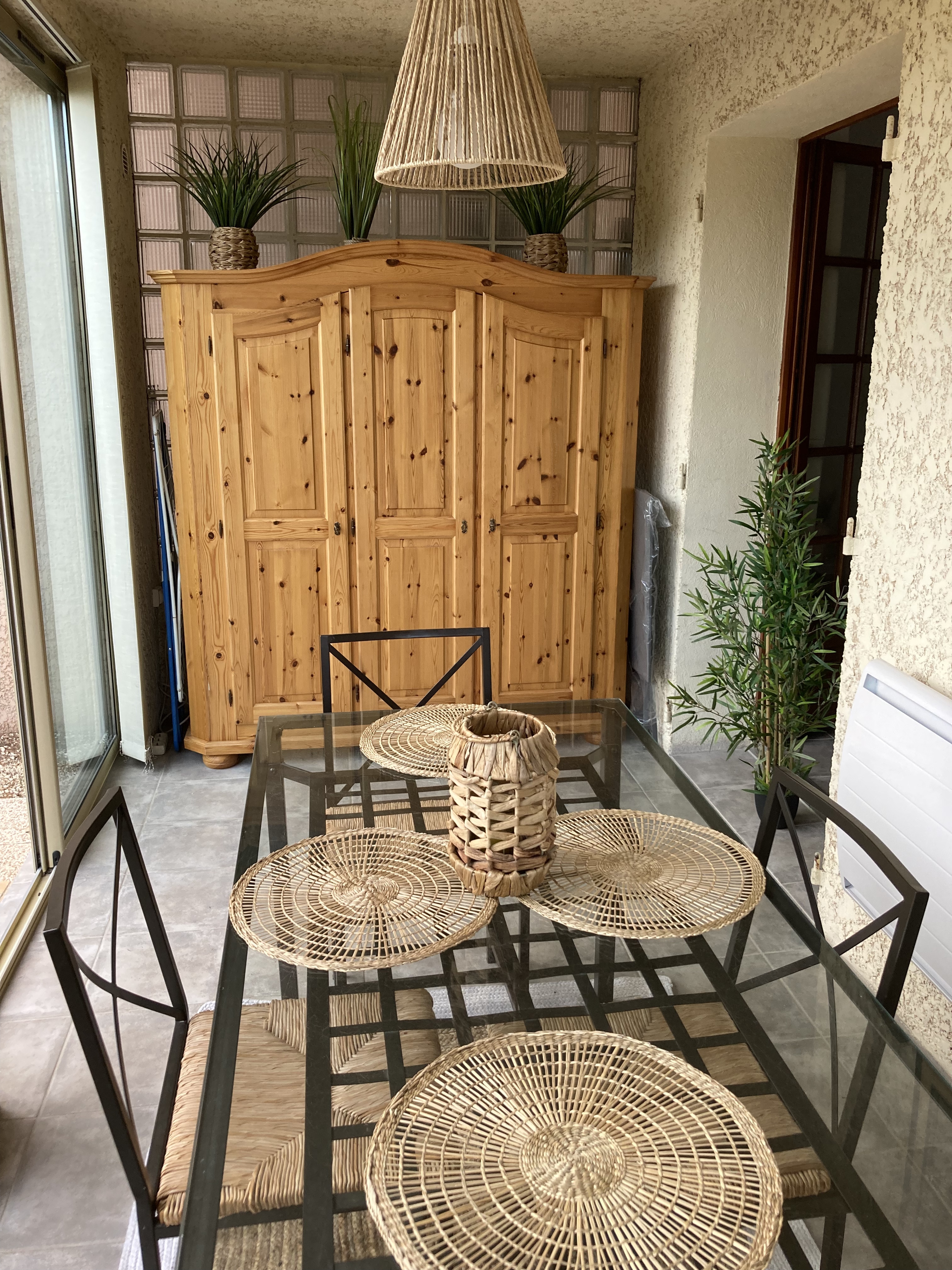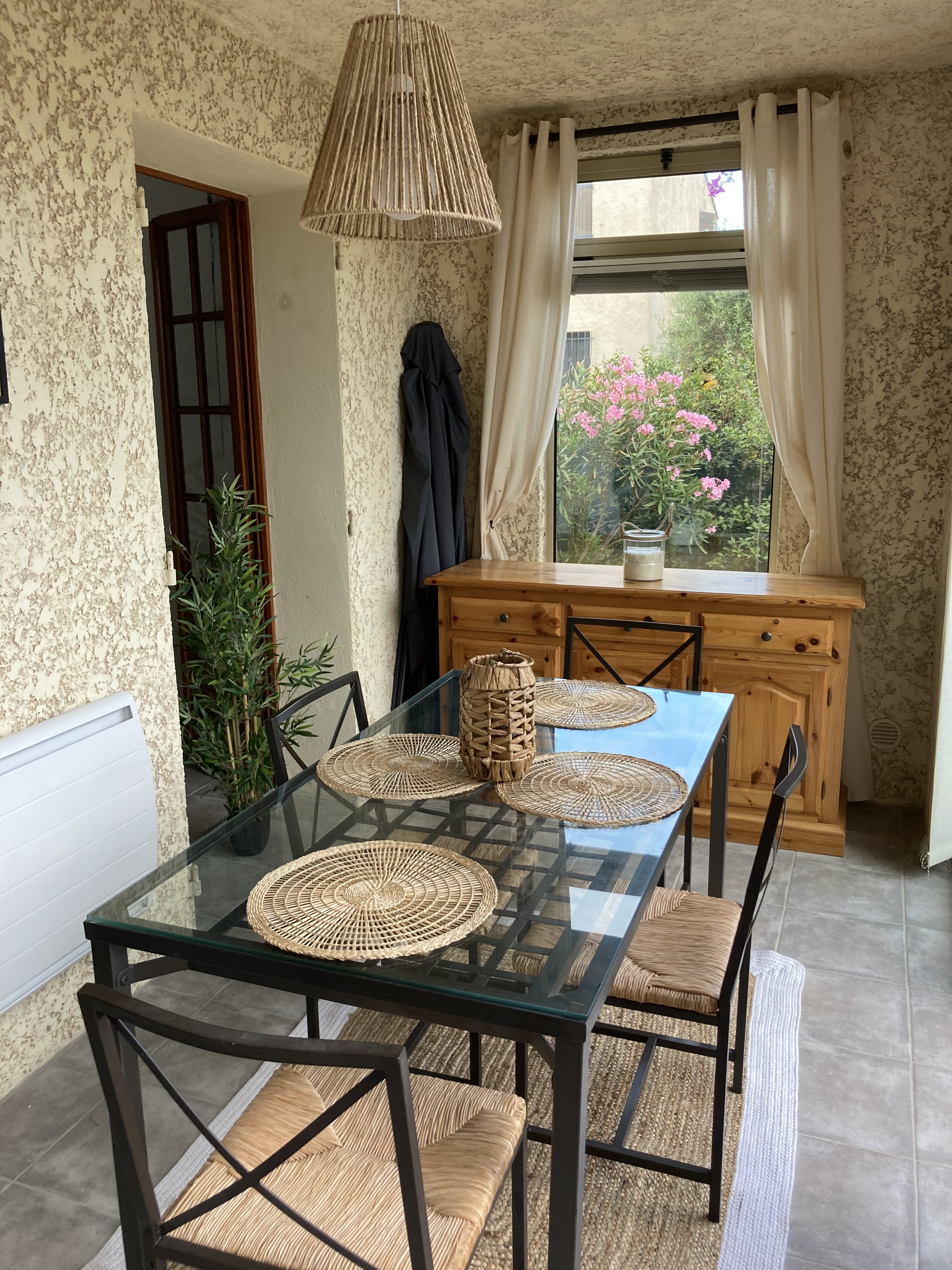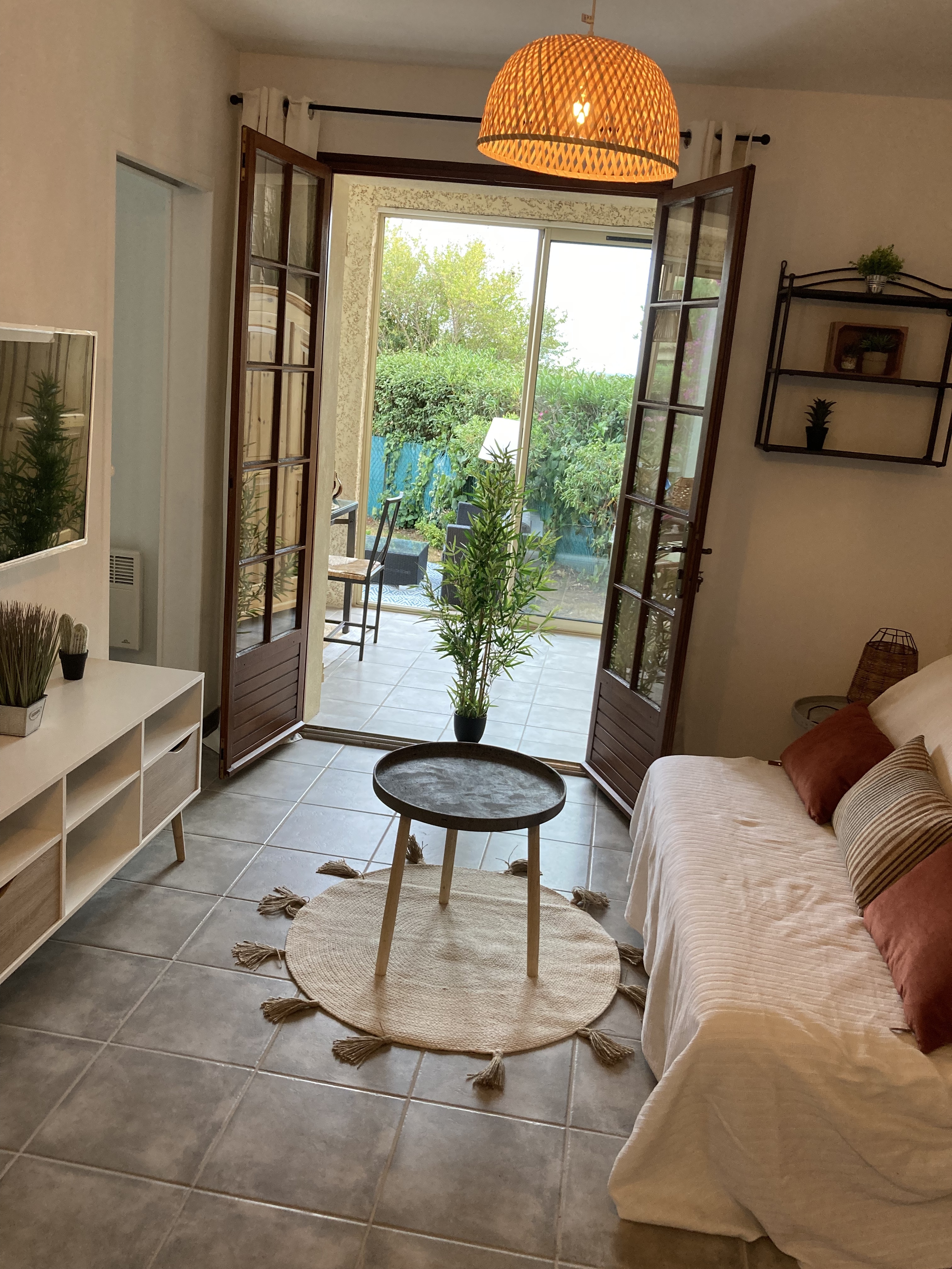 Grazioso appartamento T2 esposto a sud con loggia chiusa che si apre su un giardino privato di 100 m2 e accesso alla piscina comunale.