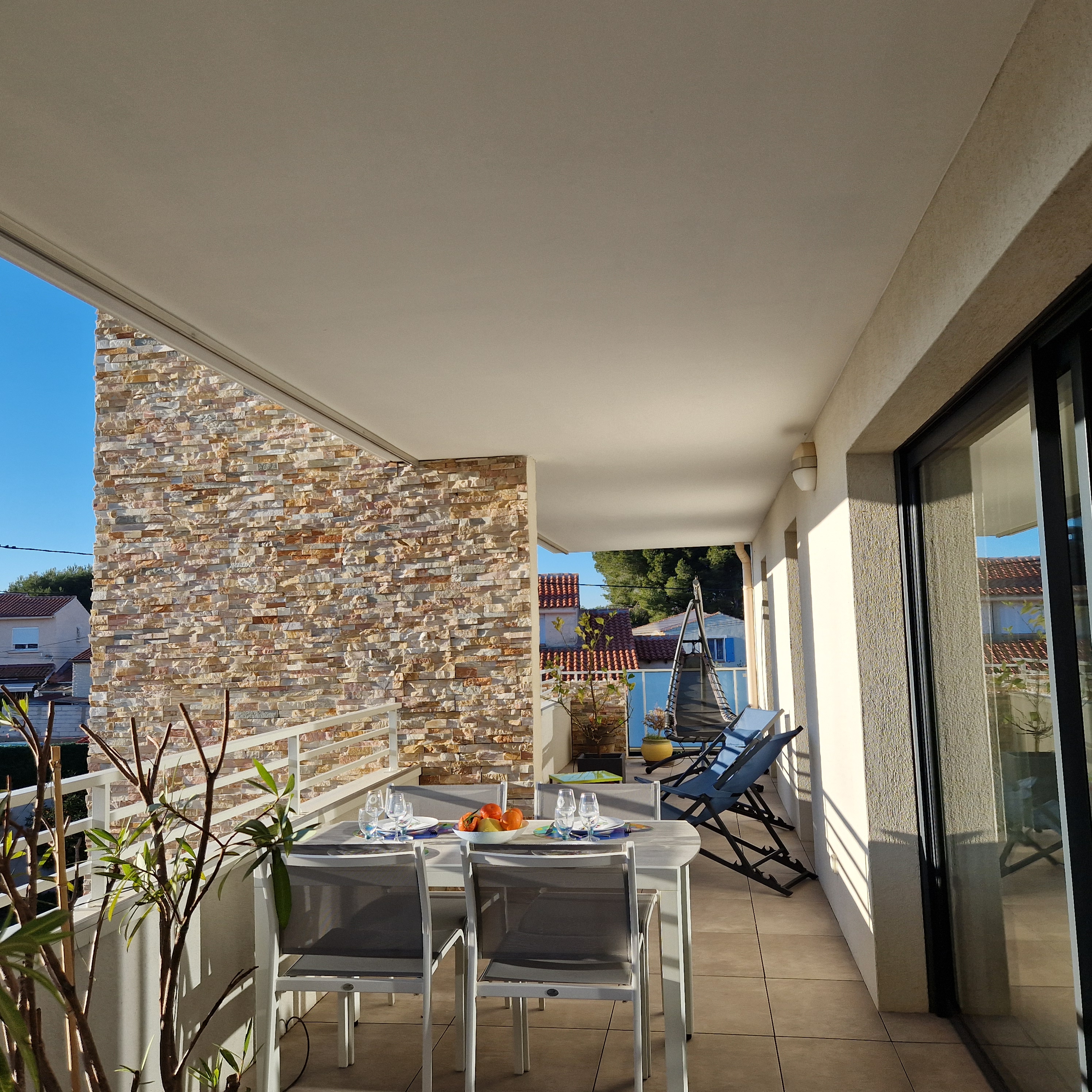 Eccezionale appartamento con 2 camere da letto a Six-Fours-Les-Plages, ampia terrazza, piscina, aria condizionata, wifi, parcheggio privato.