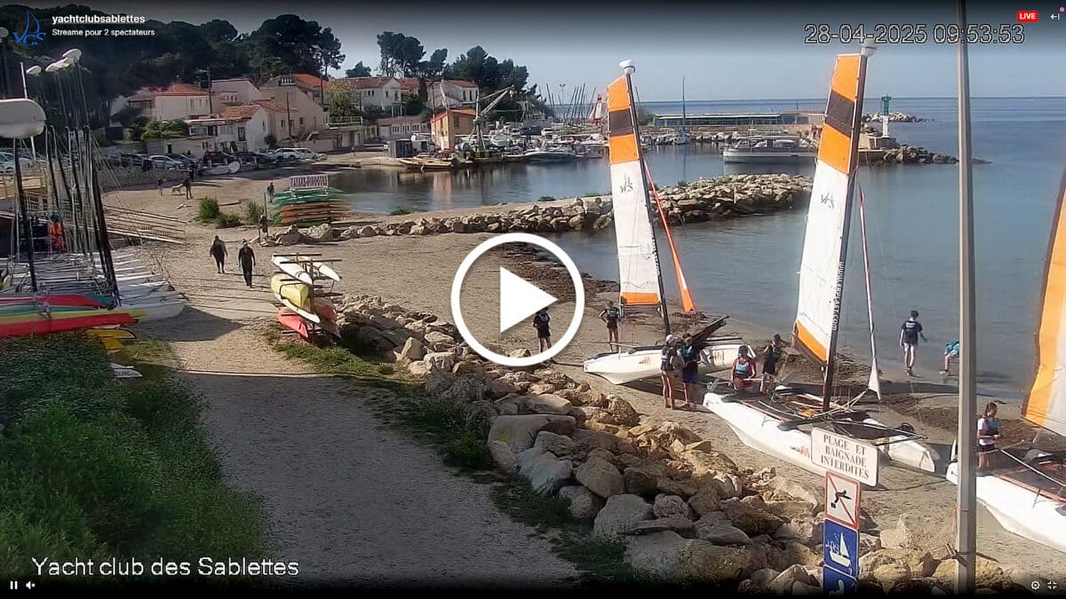 Riparata dal Mistral dal massiccio di Cap Sicié, la Baie des Sablettes è un parco giochi per una serie di attività, tra cui kayak, canottaggio, windsurf, stand-up paddling e wind foiling. Per pianificare la tua giornata o semplicemente per ammirare il panorama delle rocce Deux Frères, collegati alla webcam in diretta dalla Plage des Sablettes a La Seyne-sur-Mer e controlla le condizioni meteo e del vento in diretta dallo Yacht Club des Sablettes.