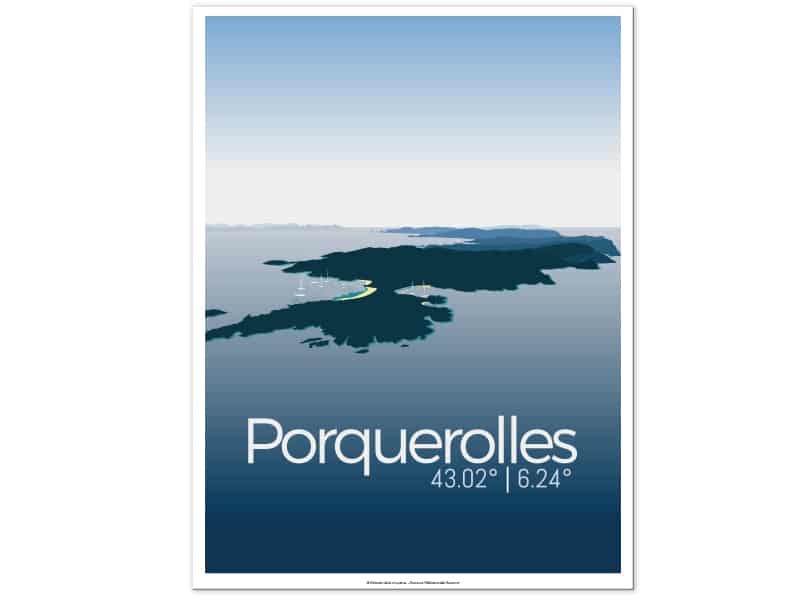 Cette affiche rend hommage à la beauté unique de l’île et de ses paysages entre terre et mer, typiques de la Provence Méditerranée.