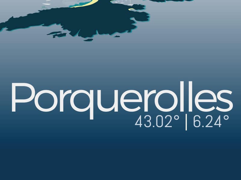 Un panorama aérien de Porquerolles sous un angle inédit du Langoustier. À travers un jeu subtil de couleurs naturelles, cette affiche met en lumière les contrastes qui font la richesse de ce joyau méditerranéen : le bleu intense de la mer du Langoustier, les tons clairs des fonds sableux, et les nuances vert émeraude des zones couvertes de posidonie, si précieuses pour l’écosystème marin.
