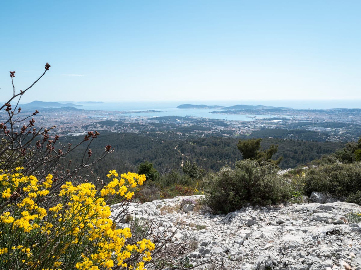 Cette randonnée de 14 km entre massif, domaines viticoles et sentier du littoral vous promet des points de vue remarquables sur la presqu’île de Giens, les Îles d’Or, la rade de Toulon, la presqu’île de Saint-Mandrier et le cap Sicié. Au fil de la balade, dans cet écrin de verdure préservé et protégé, vous passez à proximité du fort de la Gavaresse, du fort de la Colle Noire et du fort de la Bayarde. Ces édifices d’architecture militaire étaient destinés à défendre la rade de Toulon. De nombreuses espèces végétales méditerranéennes agrémentent la balade, contrastant avec le caractère minéral des lieux.